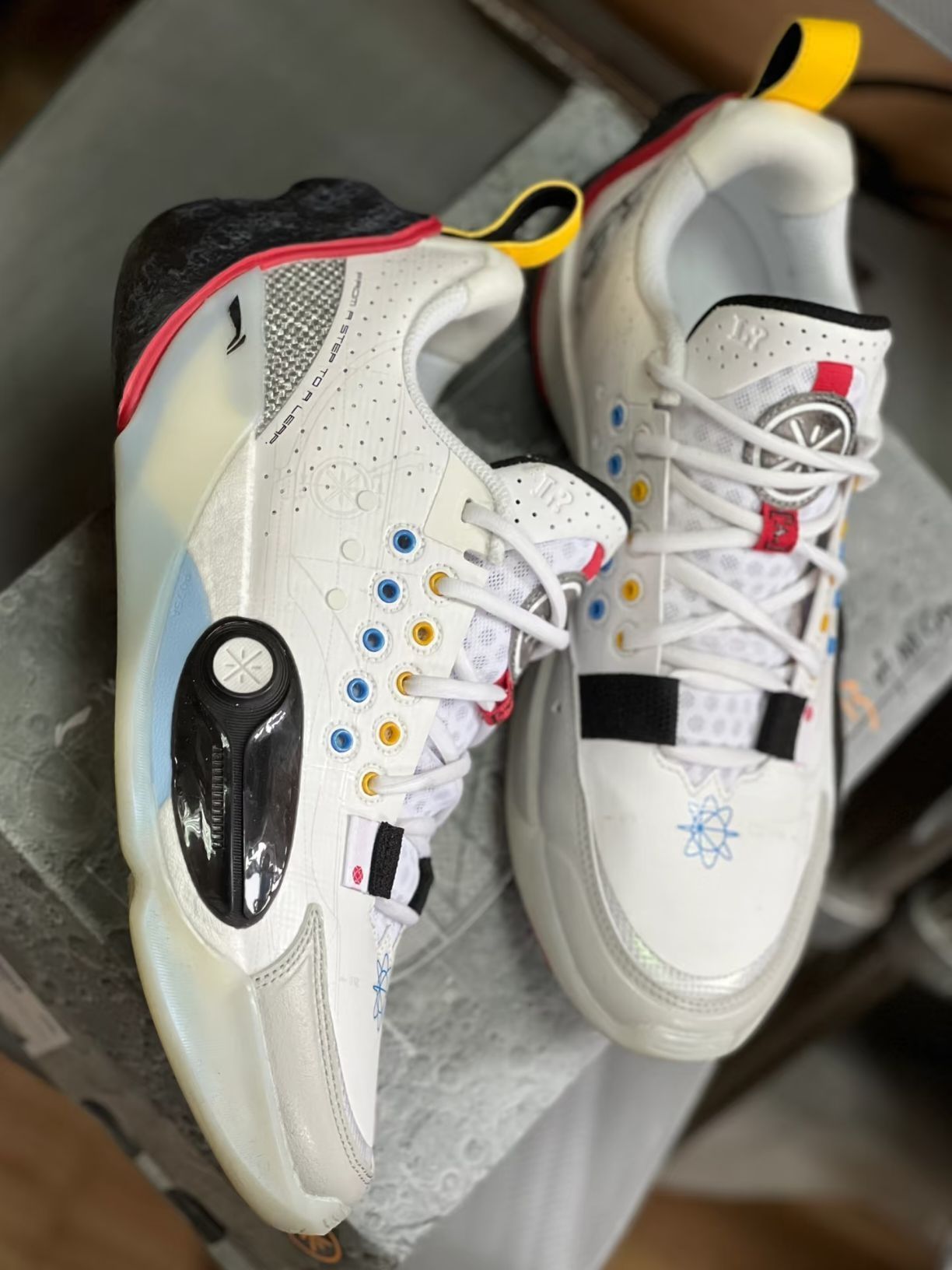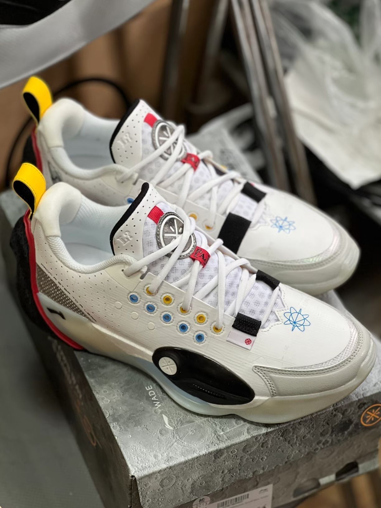 - 中国风彩蛋:鞋舌内侧暗藏韦德父子头像印花,延续系列家族语言,而侧面的半透明TPU在反光下可呈现完整韦德LOGO,细节彩蛋令人惊喜。
