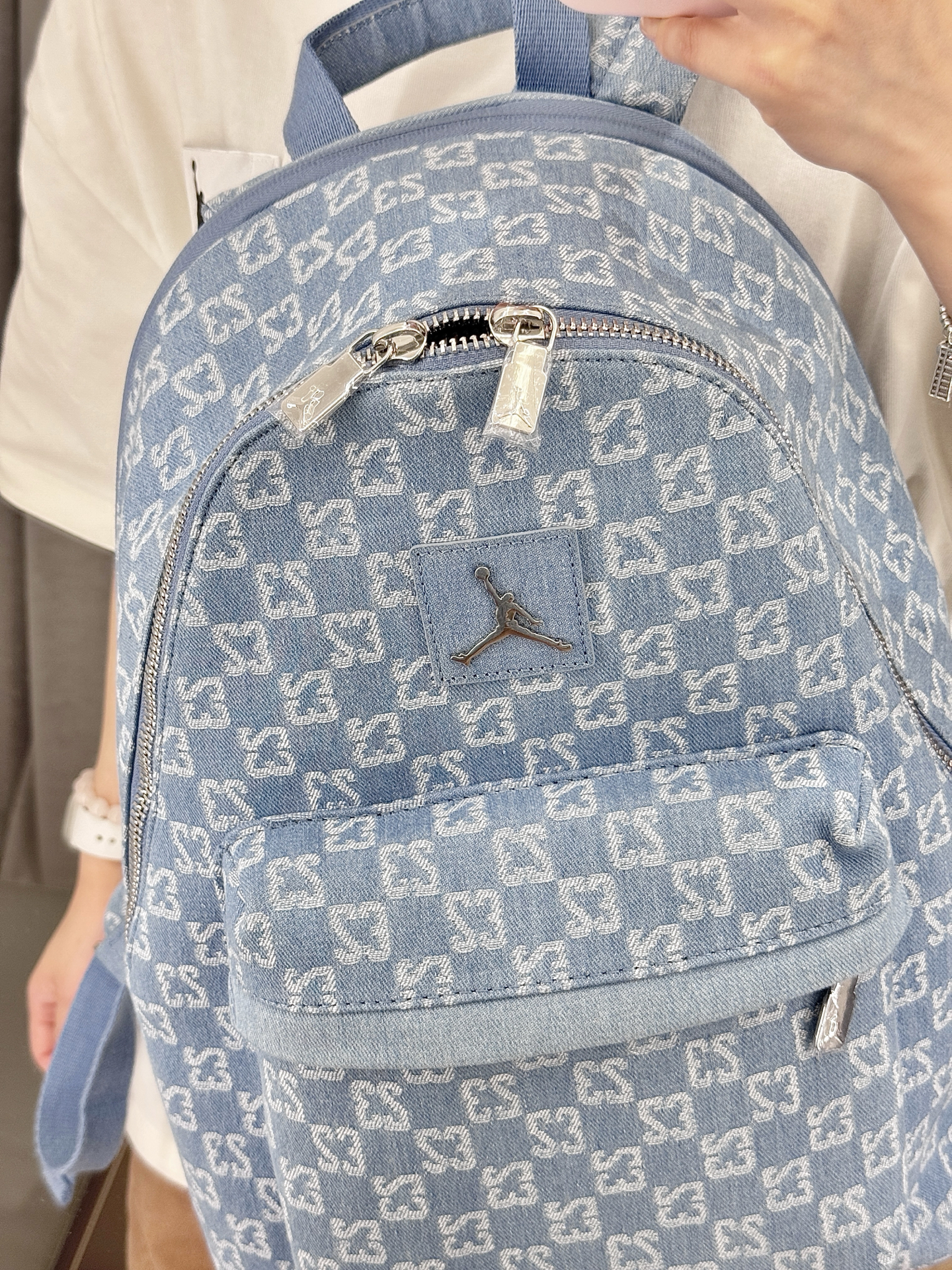 🌈挖到一款宝藏双肩包! 🌈浅蓝牛仔底色搭配标志性AJ印花,时髦又吸睛。双肩背包容量够大,笔记本 平板完全装得下,日常通勤、短途旅行都能hold住💯,很适合春夏,很有活力的感觉