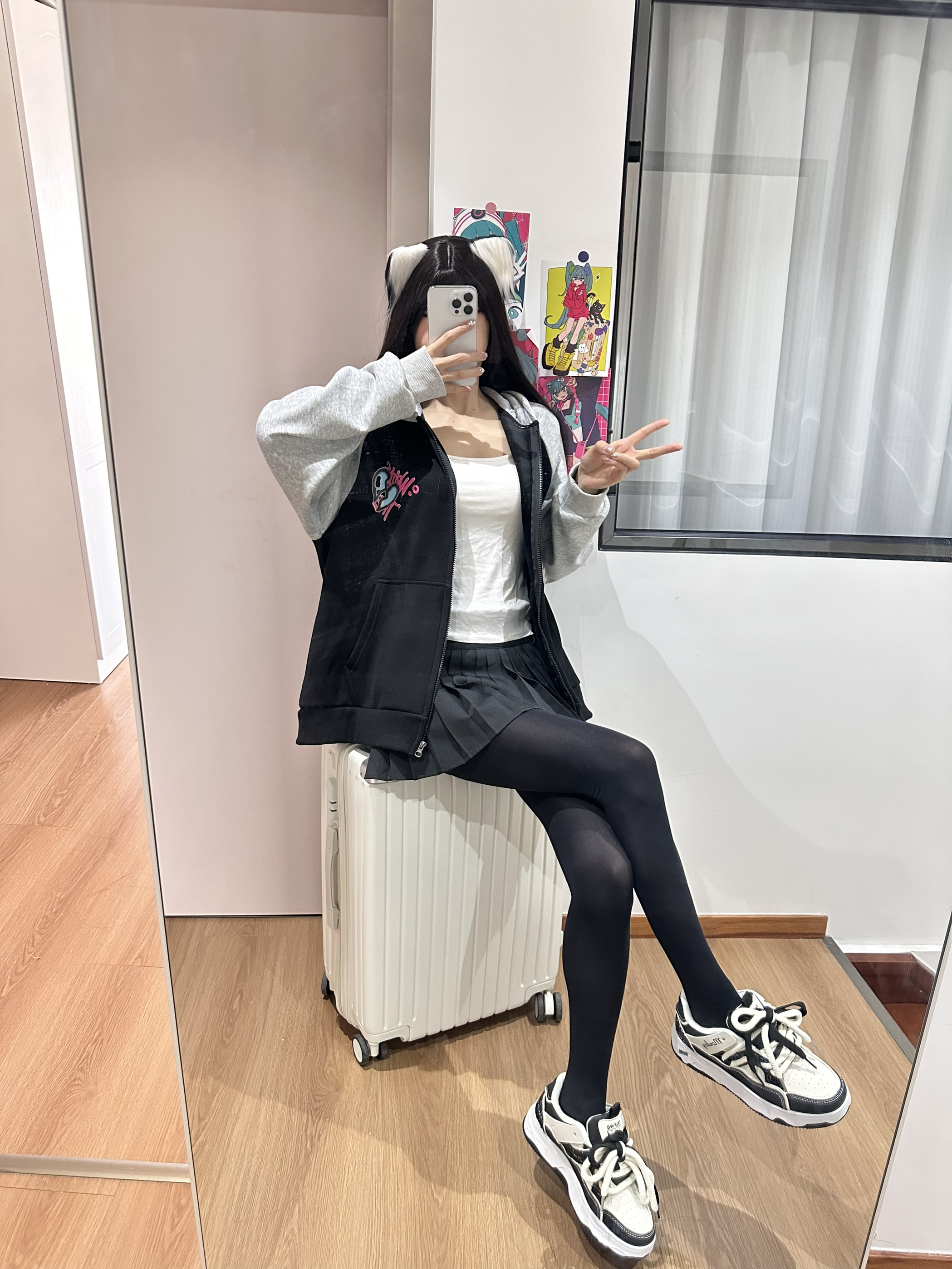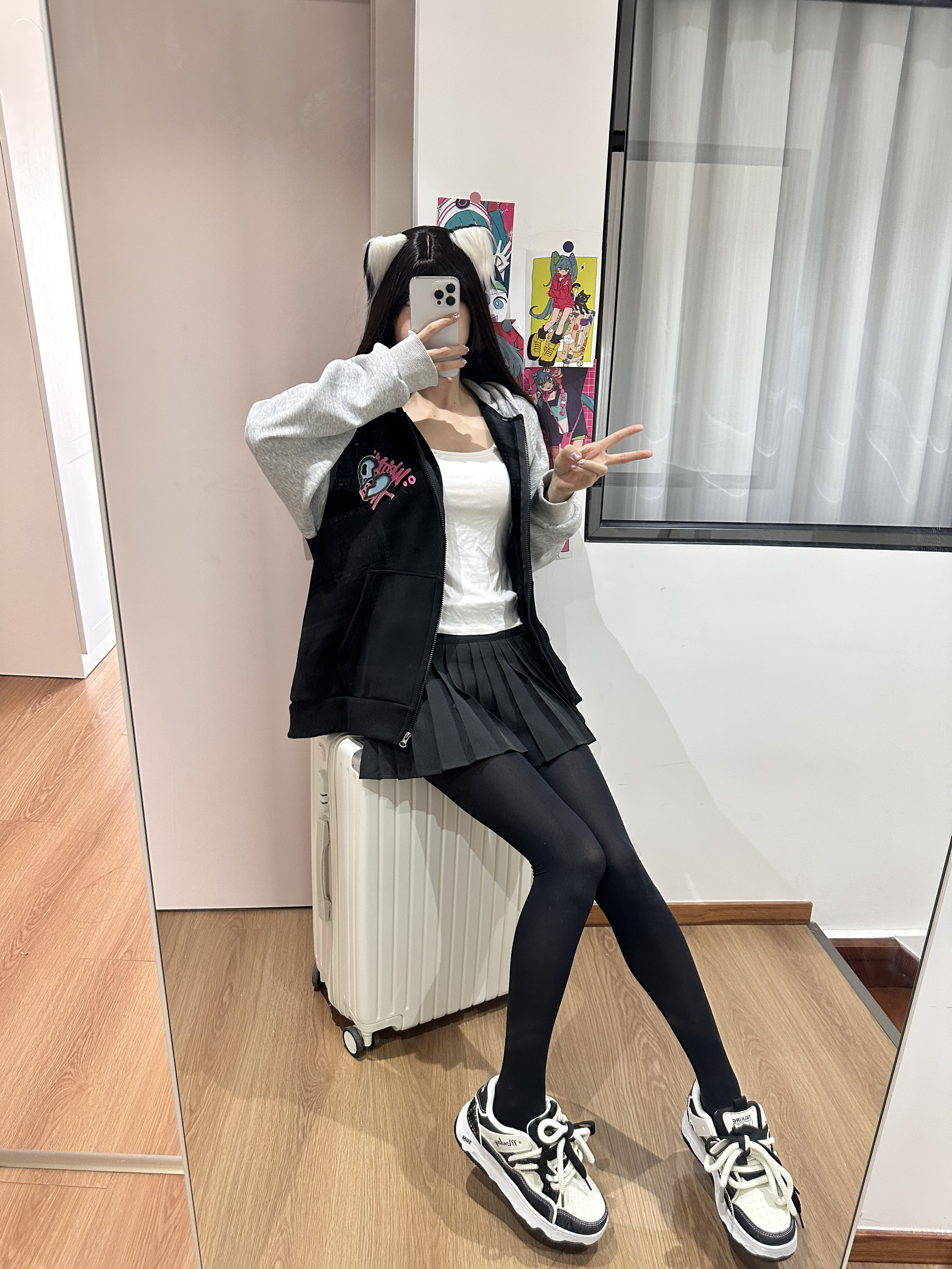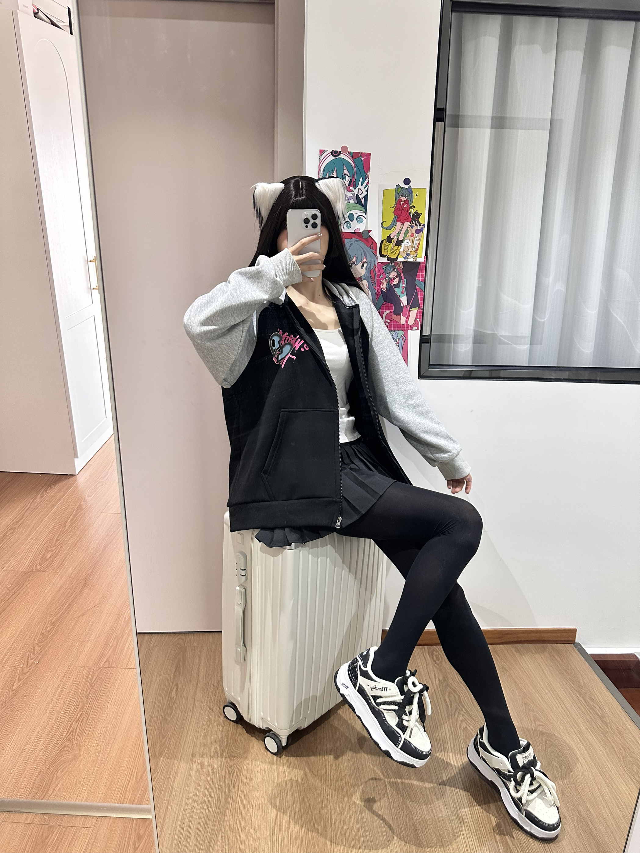 今天穿的厚黑是三朵棉家的 搭配了一双黑白配色的板鞋 鞋子的鞋底是增高的 上脚显高显腿🦵长 脚感也不错 一年四季都爱穿~