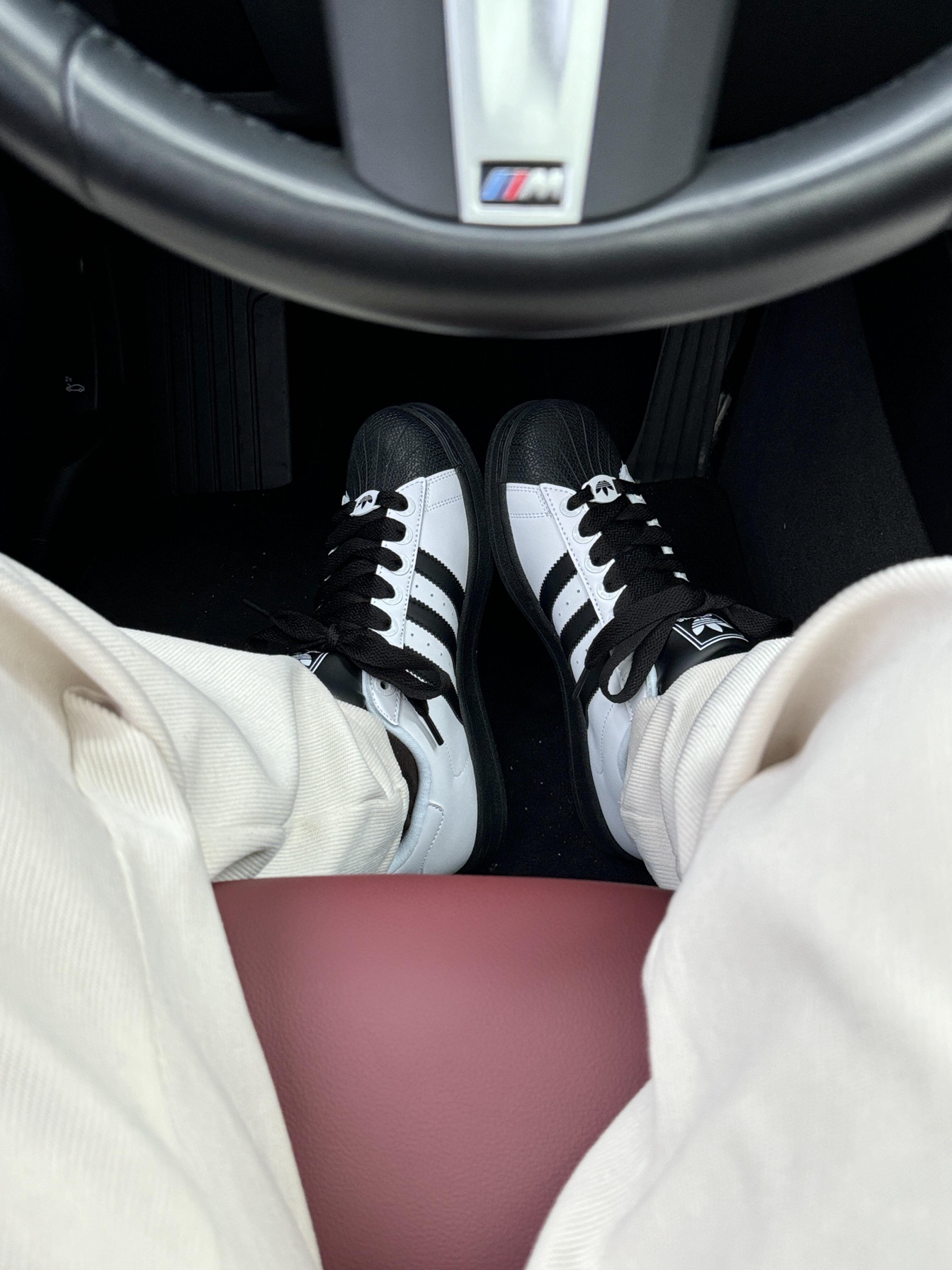 黑白搭配 穿搭不累! 这双贝壳头 大熊猫见了也直呼喜欢!哈哈! #鞋控の日常 #神仙鞋子 #百搭鞋子分享 #黑白穿搭 #鞋子推荐 #贝壳头 #adidas #板鞋 #阿迪达斯 #运动鞋