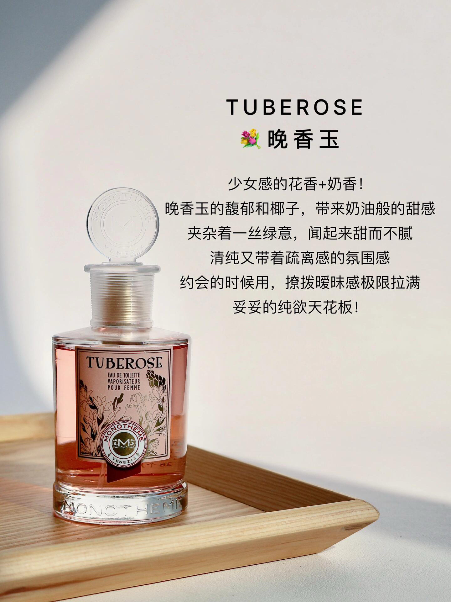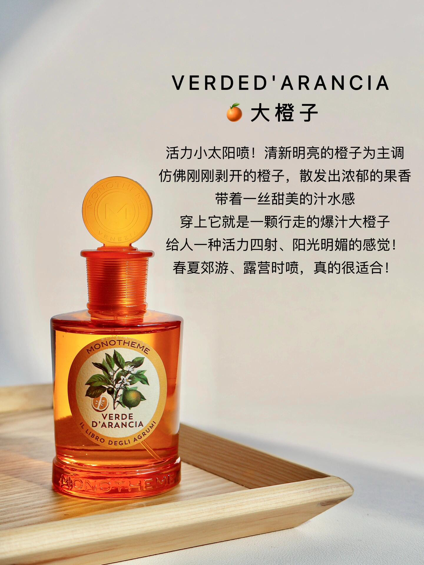 monotheme的5款春夏热门香水怎么选! 活力阳光:🍊大橙子 温柔纯欲:💐晚香玉 自然伪体香:🤍白麝香 知性优雅:🌼 茶山桂雨 低调气质:🌺 如沐山茶 - 🍊大橙子 活力小太阳喷!清新明亮的橙子为主调 仿佛刚刚剥开的橙子,散发出浓郁的果香 带着一丝甜美的汁水感 穿上它就是一颗行走的爆汁大橙子 给人一种活力四射、阳光明媚的感觉! 春夏郊游、露营时喷,真的超级适合! 💐晚香玉 少女感的花香+奶...