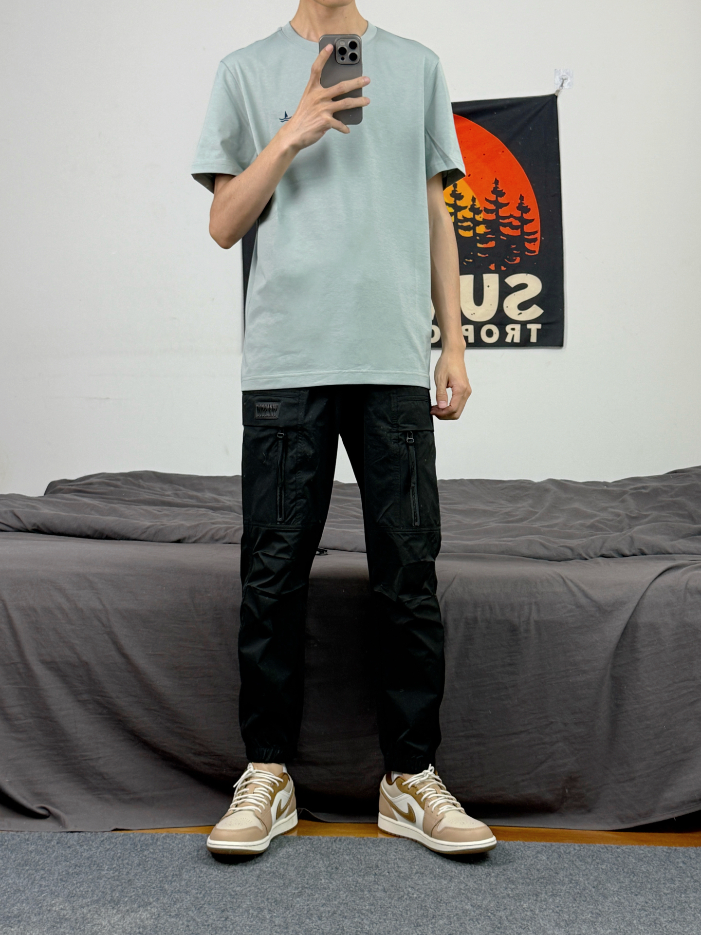 身高174体重48kg 今日上身 简约短袖+牛仔裤+aj1褐色 👕是 #NAVIGARE 家的短袖 浅色配色,胸口有小logo 穿在身上少年感十足 合身版型搭配短款设计 能很好修饰体型 棉材质上身柔软舒适凉感十足 👖搭配的黑色休闲裤 加厚的设计,穿在身上特别立挺 👟是aj1褐色 #预习一下春季穿搭 #宝藏短袖T恤的穿搭分享 #春日男生穿搭氛围感 #早春短袖ootd #街头风宝藏短袖T恤分...