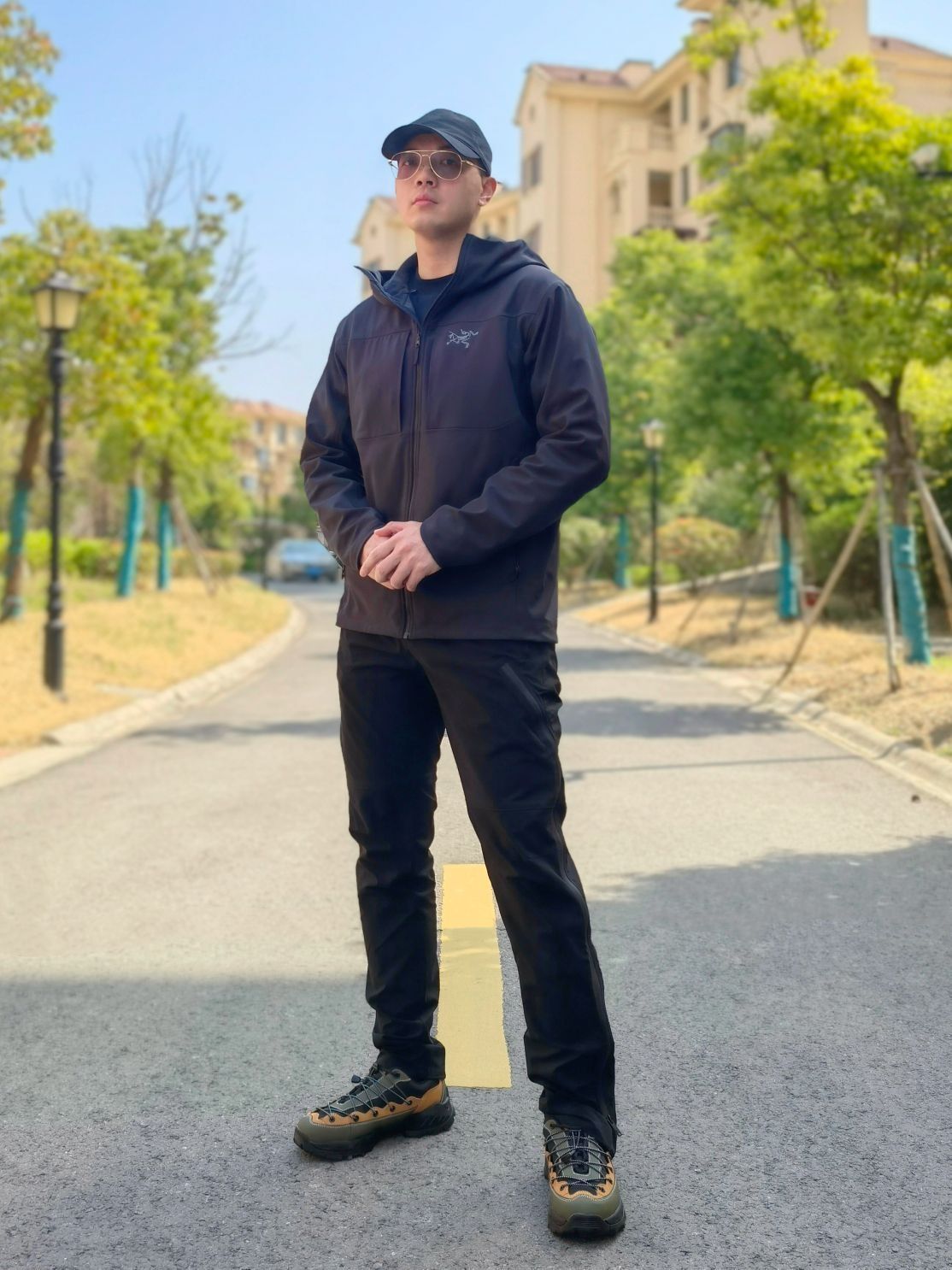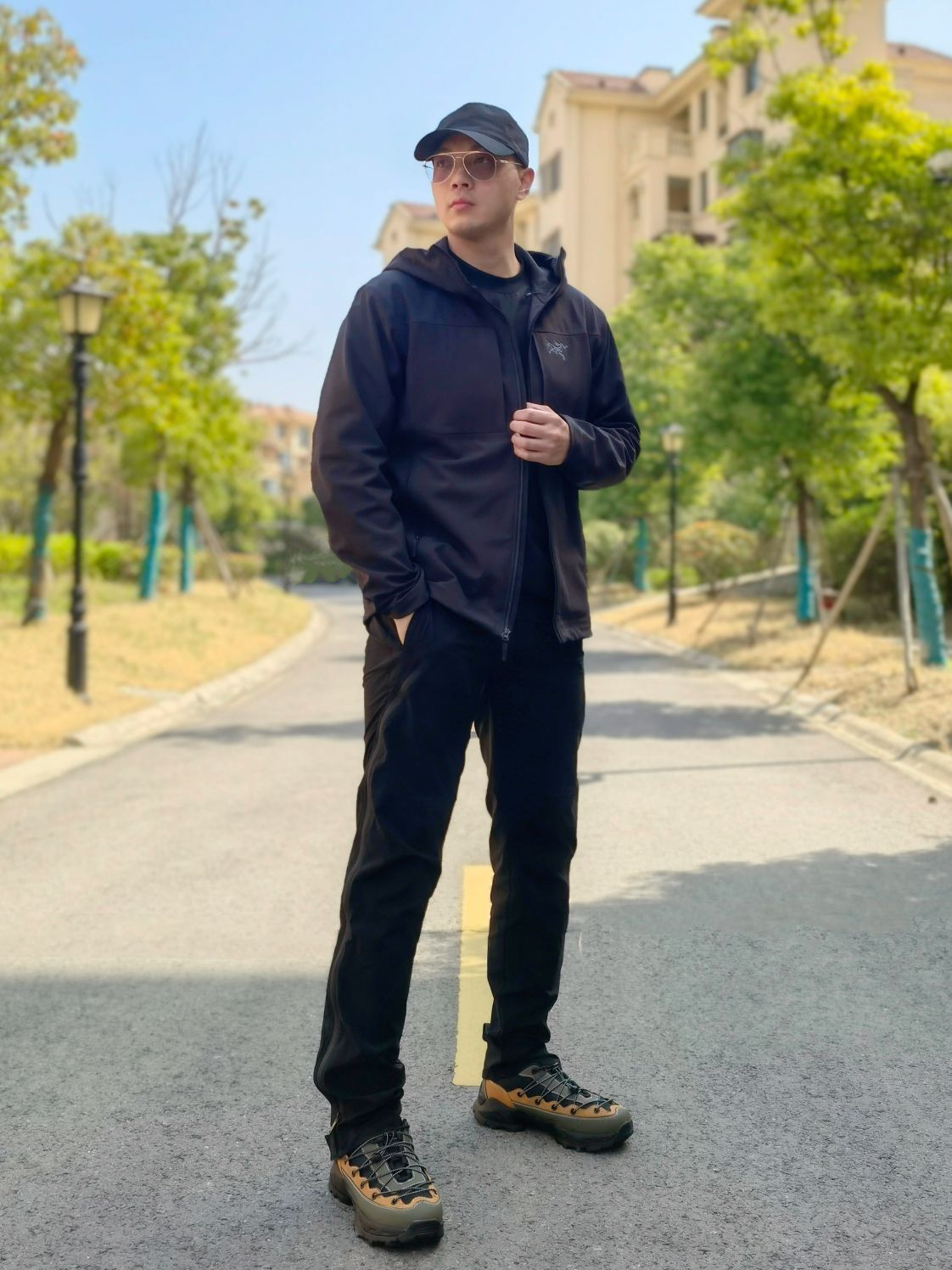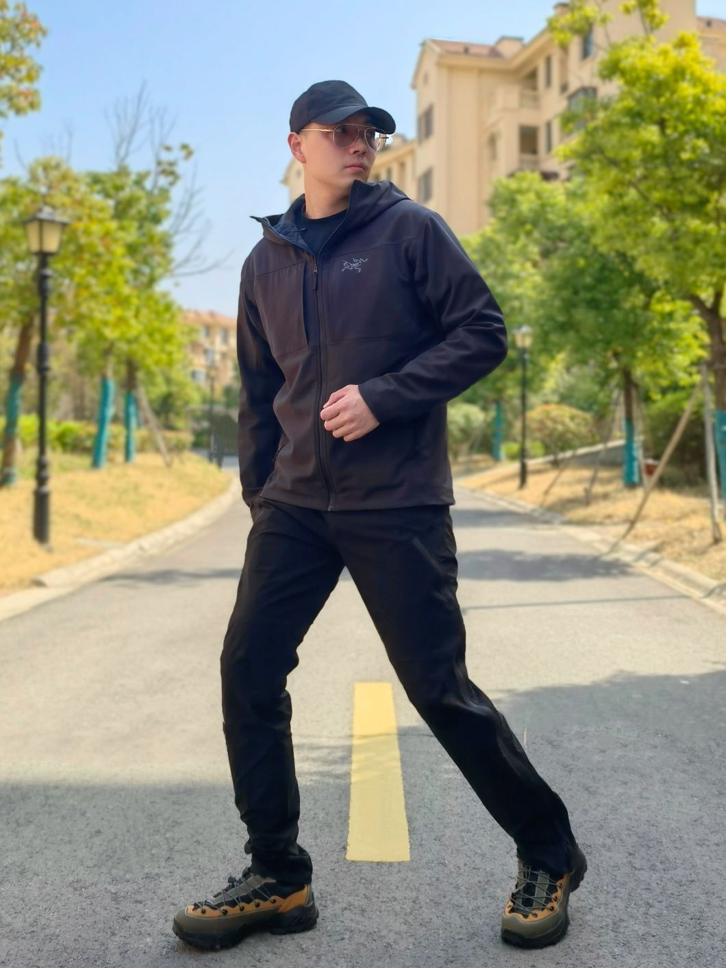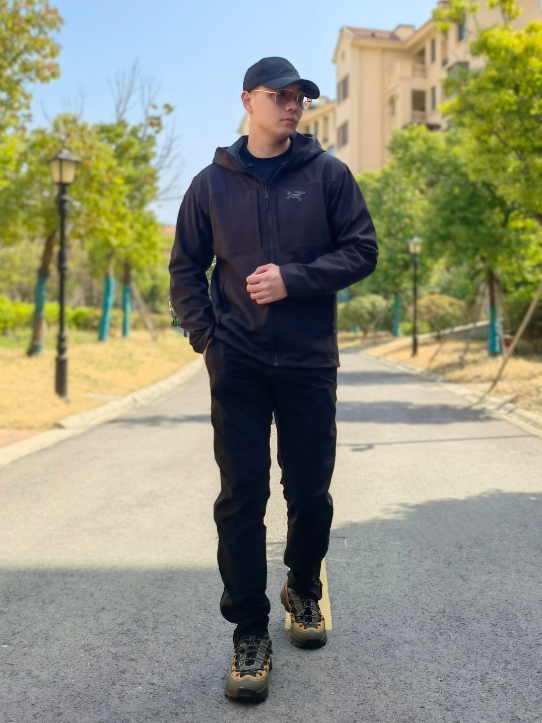hello 大家好,这里是撒旦锅锅 💗179cm/80kg ✔️类型搭配:冲锋衣+机能裤+徒步鞋 上身搭配的是始祖鸟Arcteryx Gamma Mx黑色软壳冲锋衣,软壳上身比较舒服,下身搭配黑色机能脚裤与上衣做一个黑色系呼应,鞋子搭配JEEP吉普户外徒步鞋,整体搭配户外运动风十足,种草推荐✔️
