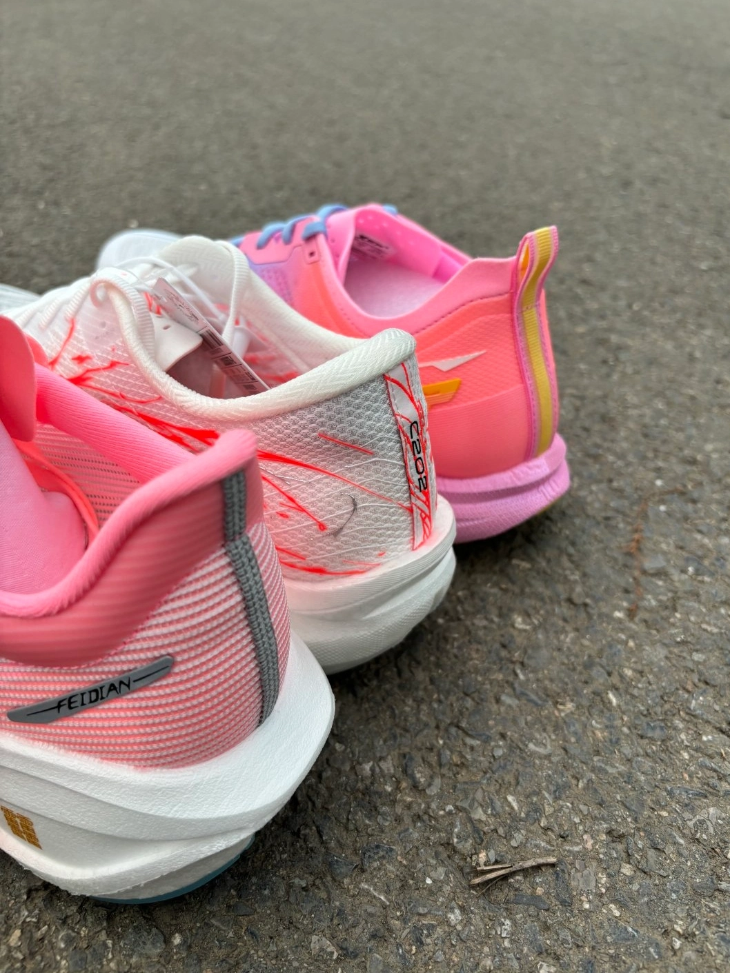 哈喽朋友们 今日跑鞋来袭 第一双 飞电5c 第二双 c202 6代心跳💓 第三双 特步100 2.5Pro 颜值打几分呢 一起来看一下细节吧! #把春天放穿在脚上 #安踏C202心跳 #体测破风计划 #春日出游搭子 #我的春游鞋搭子