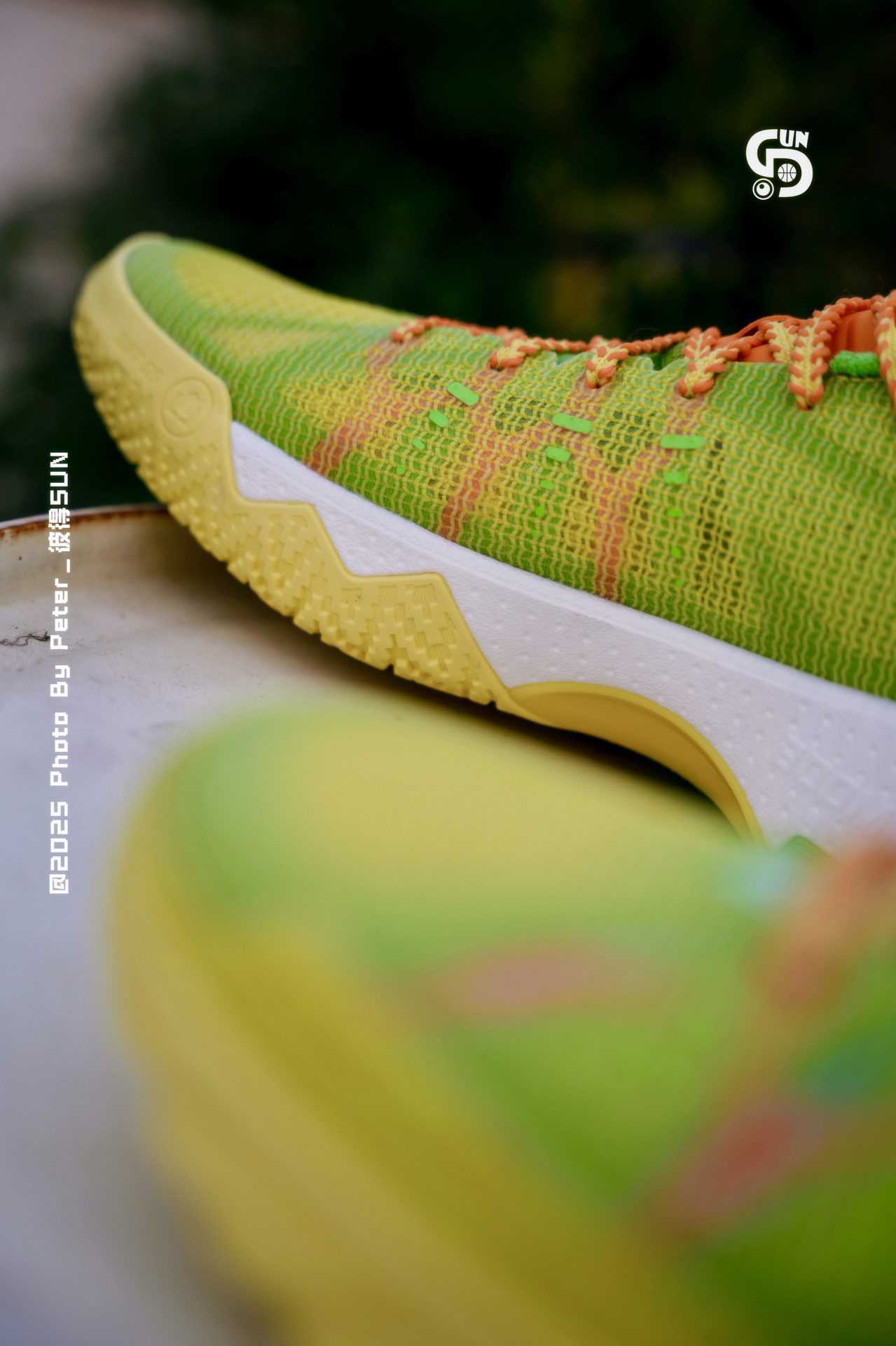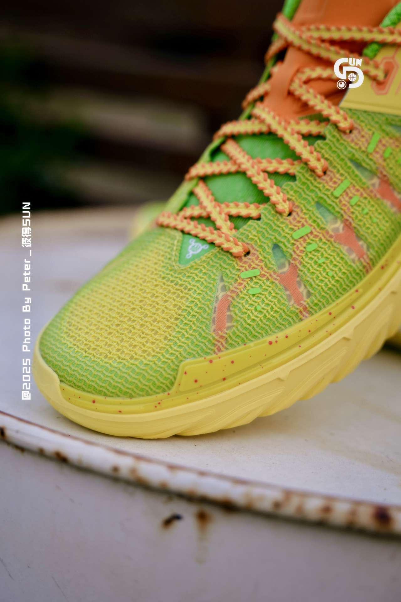 桀骜2是已经入手了好几双,这个有点野性也很能打的实战鞋又有新配色。我也是第一时间入手了。这次分享的是【角蛙】配色。灵感源于钟角蛙,是灵巧敏捷,出其不意的象征。黄绿交错这种高浓度的配色真的太适合夏天了。 鞋面是TPU纱线,透气性和强度都可以。上脚很轻,重心也很低,场地感我觉得挺不错的,比较适合我这种突投结合的打法。外底连接中底有点圆润的造型,滚动感挺不错的,脚感属于韧弹那种。对比一代,升级了全掌䨻,...