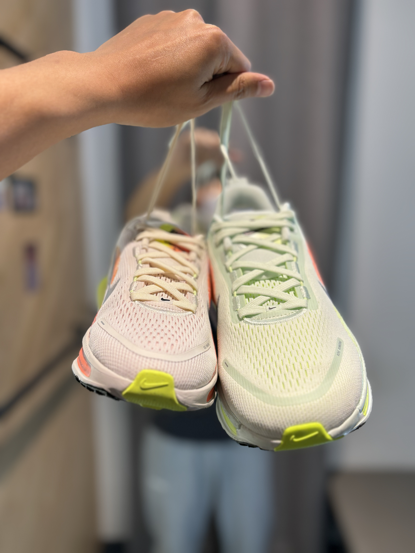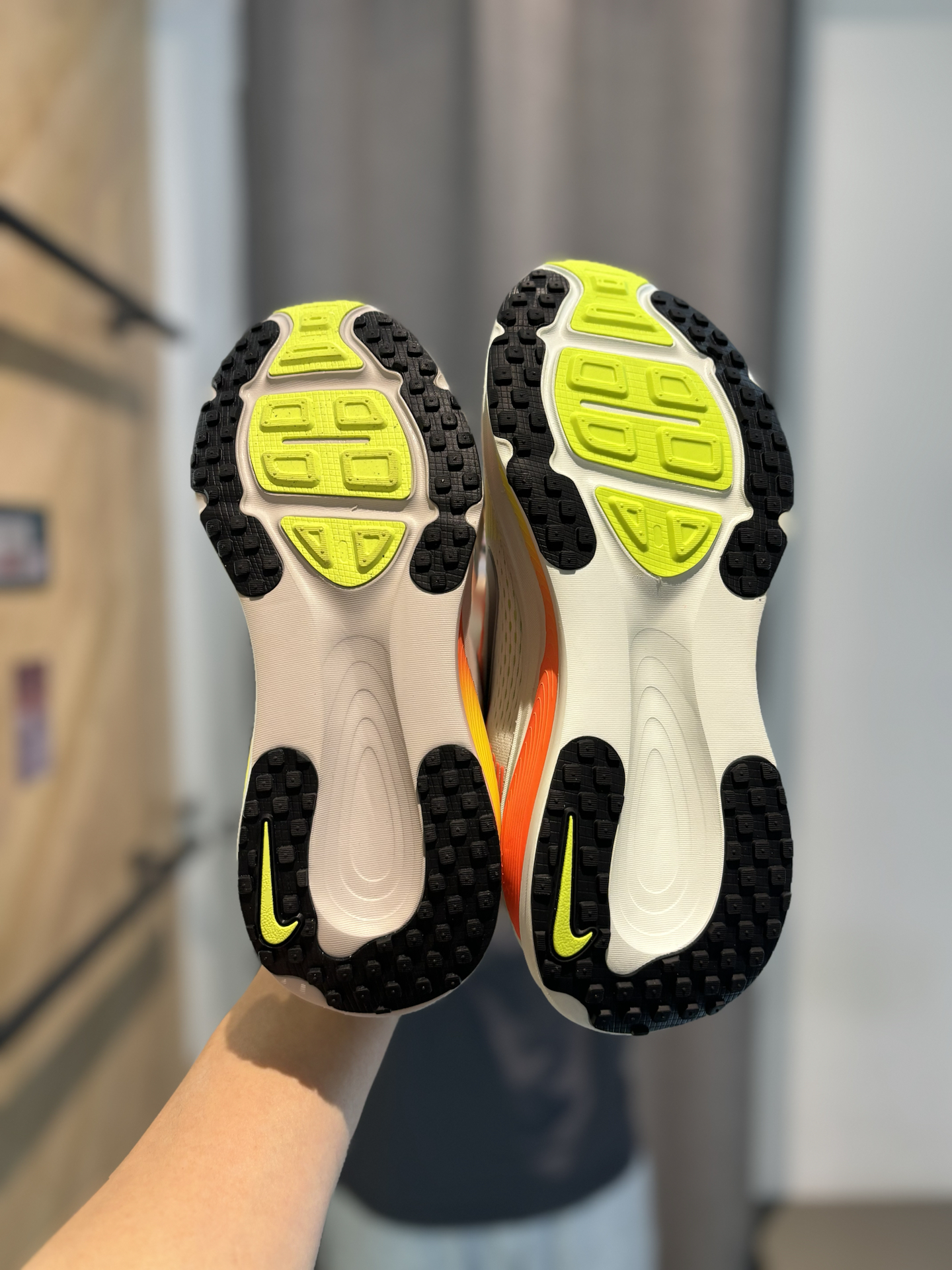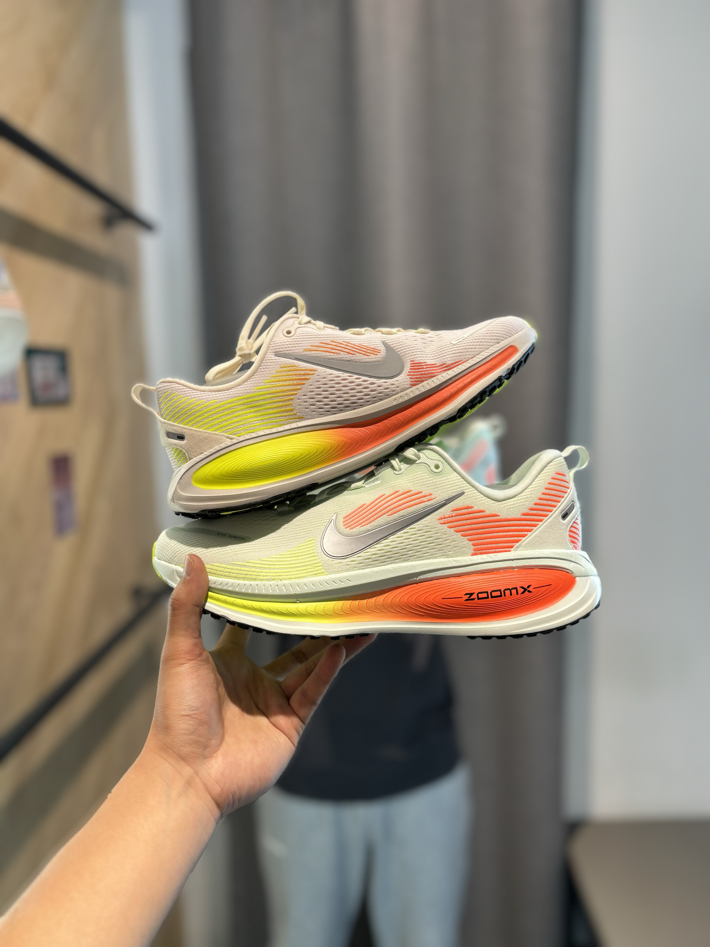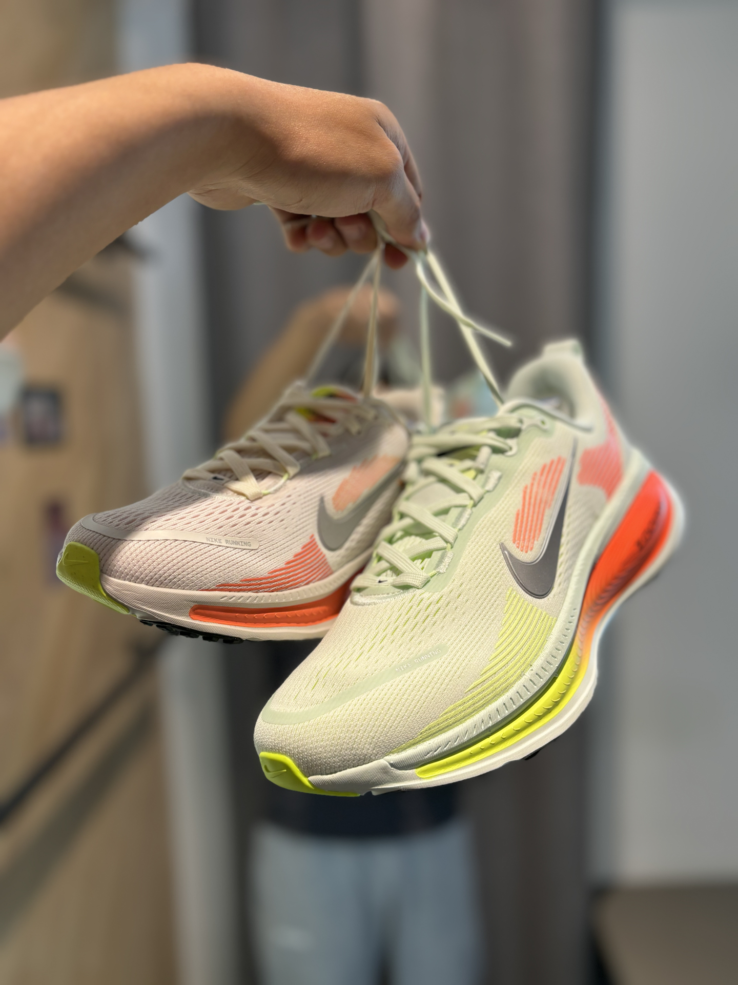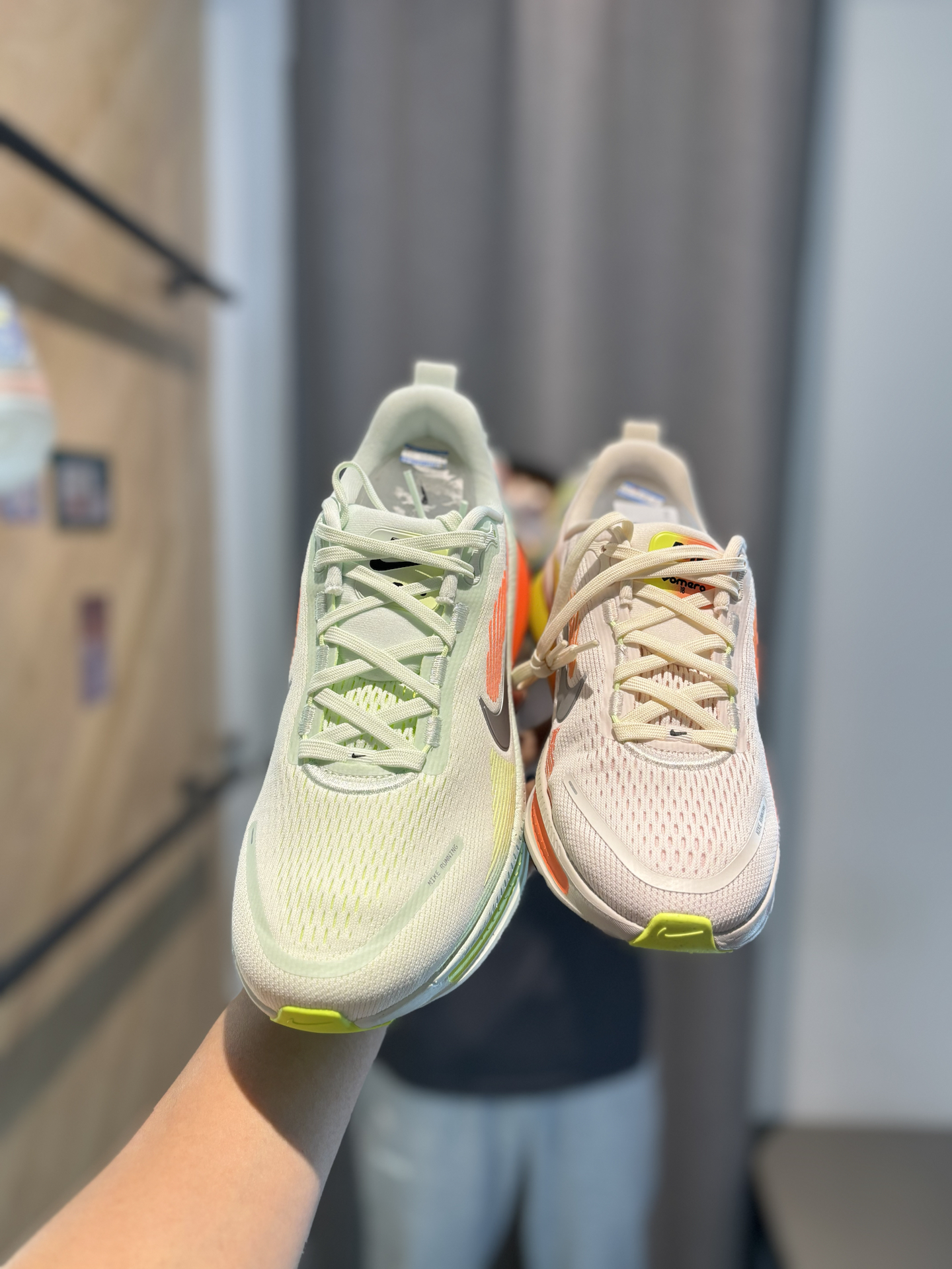 #增高报恩鞋 耐克的新鞋新配色彩虹糖vomero18 它是有多种版本的男和女还有大童 增高3cm以上了属于慢跑鞋和增高休闲跑鞋 配色很多我都挑花眼了 绿色配橙色还是更适合跑步 走起来整体滚动感也很足 上脚之后确实很软 这种增高休闲跑鞋很适合170左右