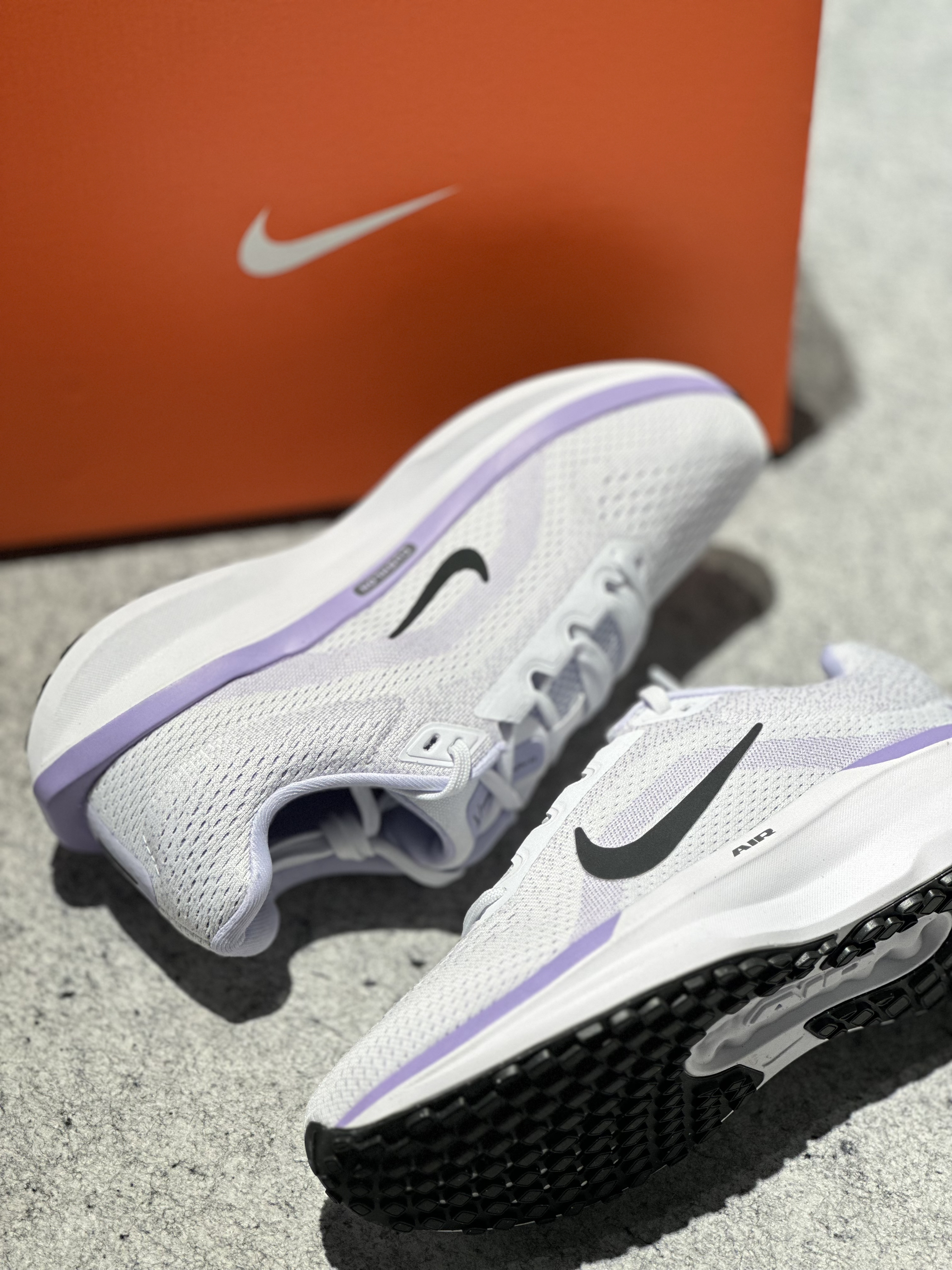 宝子们,NIKE AIR WINFLO 11必须安利!这双鞋颜值与实力并存,浅紫与白的搭配,清新又温柔。透气网眼鞋面,时刻保持脚部干爽。AIR缓震科技,提供出色缓冲,跑跳都舒适。无论是运动还是日常出街,都能轻松驾驭,闭眼入不亏! 货号:FJ9510-106