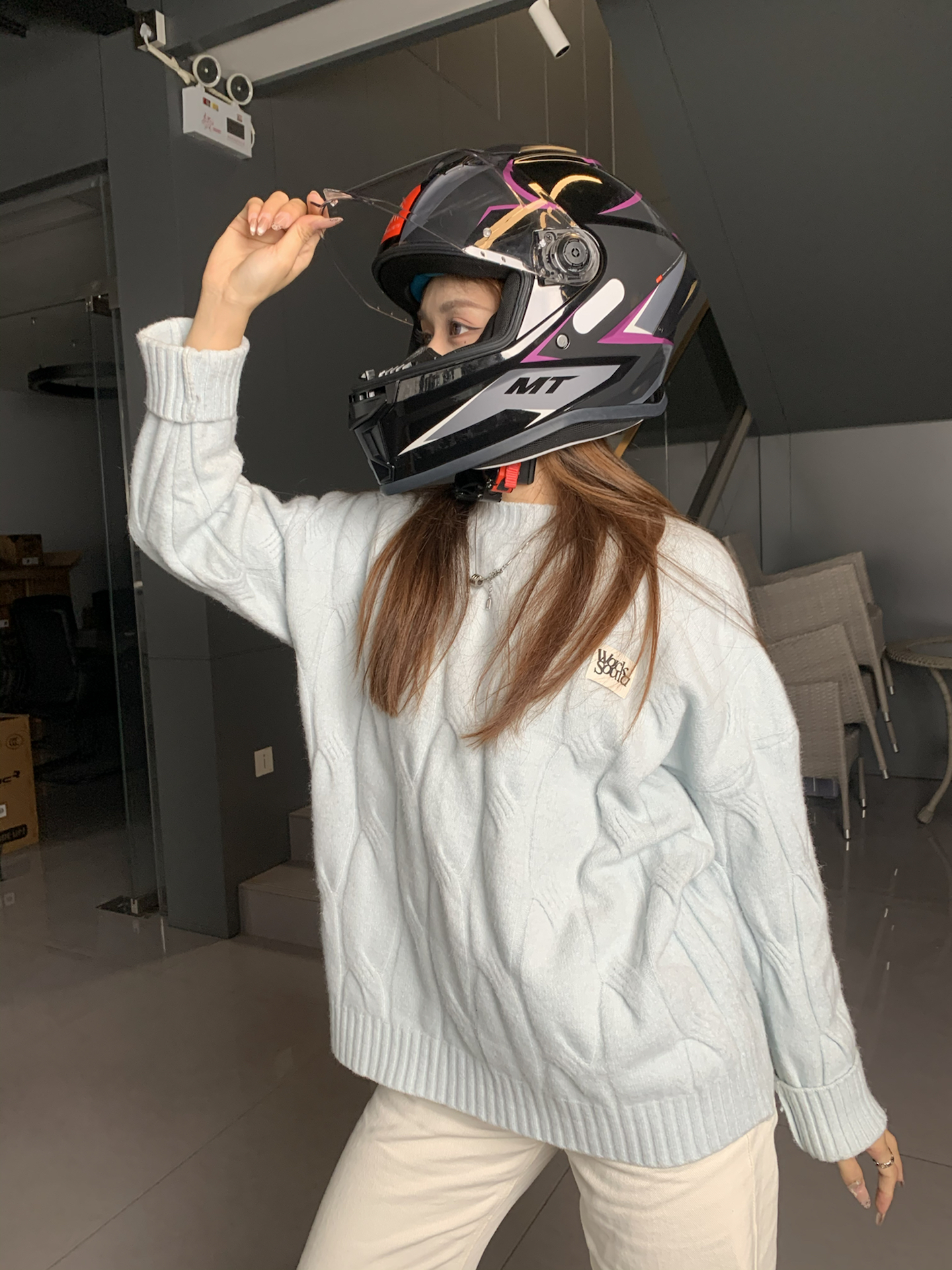 冬天骑摩托车当然得戴全盔啦 这款MTHELMETS 毒刺2 头盔的灰紫色机车头盔 新手机车女孩们可以冲起来~ 3C认证,戴起来非常的舒适保暖 永不出错的配色,戴上会非常的酷炫 整个盔形采用流线型的大尾翼 戴出去骑车也可以轻松佩戴无压力哦 图源网络,侵删