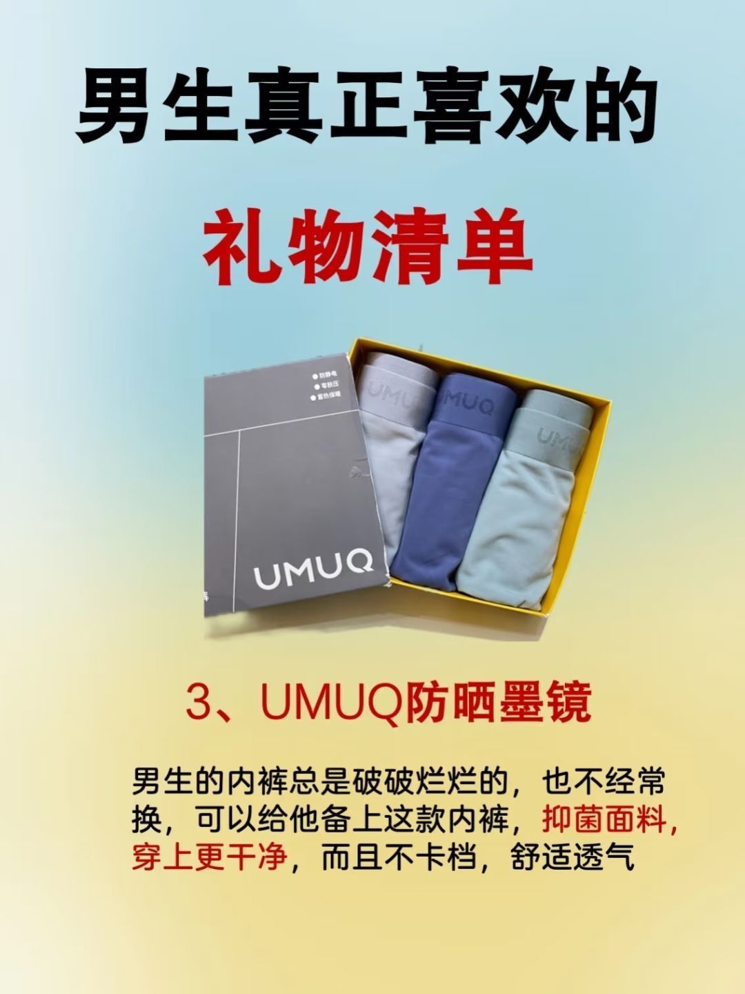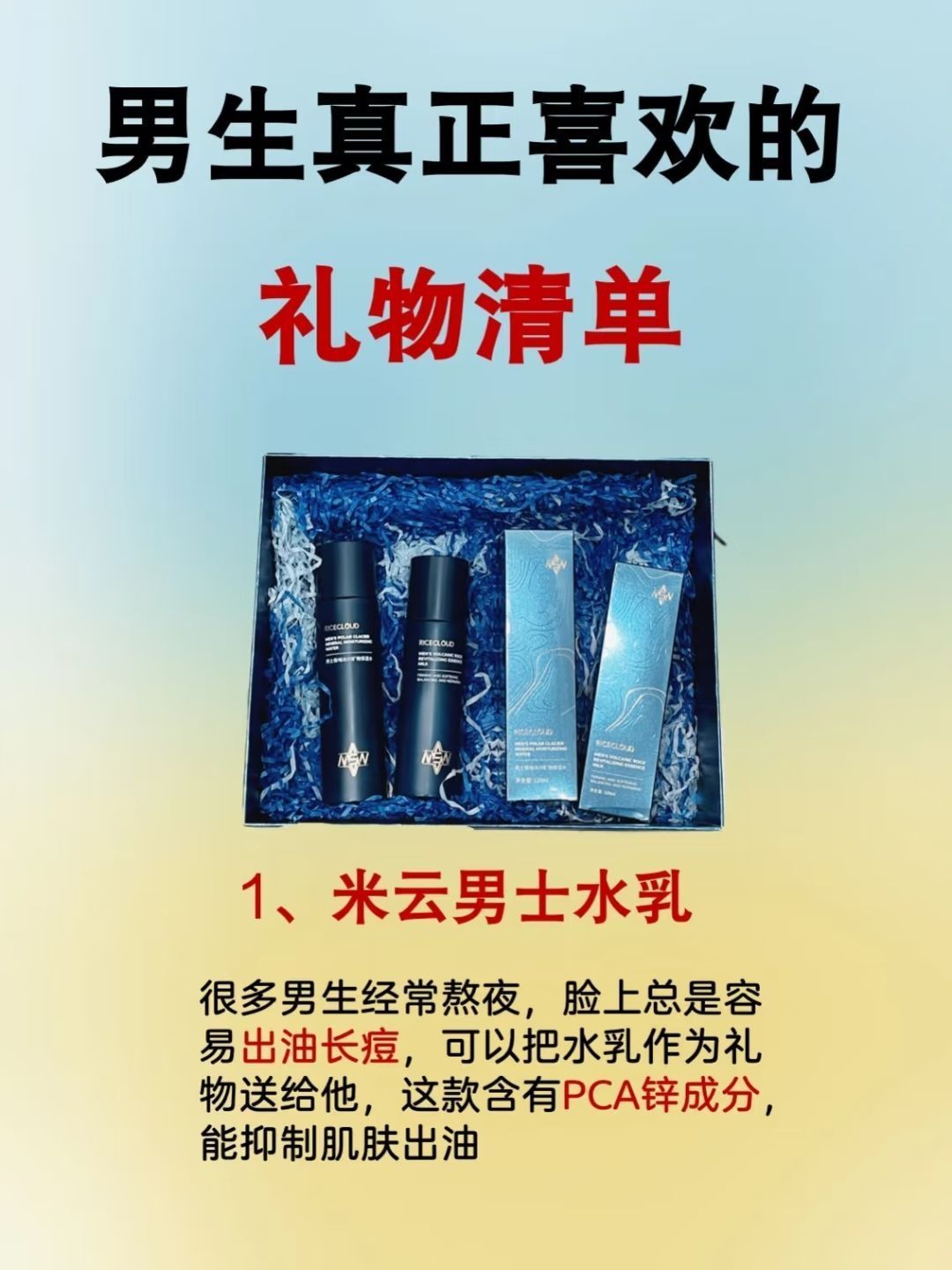 礼物真的是一个很好的表达爱的载体 但好多人总是担心自己选的礼物对方会不喜欢 纠结怎么才能每次送都显得自己诚意满满 别担心啦~一份实用又显心意的礼物清单马上奉上~ 轻轻松松拿捏对方的小心思,送到他心坎上! 💐#米云男士水乳【控油祛痘】 男生也是需要护肤的,脸上出油长痘 他们也会自卑的,可以选择这款水乳 含有法国进口pca锌成分,能更好的控油祛痘 💐UMUQ男士内裤 内裤是比较私密的礼物 送内裤能更快...