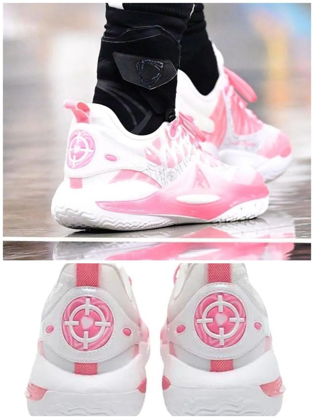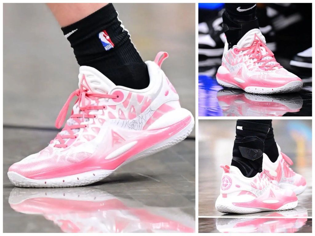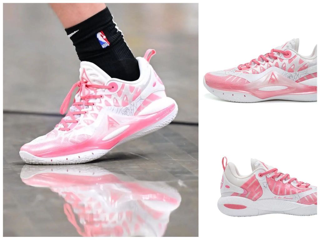 湖人队帅哥球星里弗斯最近的比赛中上脚粉粉嫩嫩篮球鞋准者里弗斯二代,粉色白色的融合在球场上相当吸引眼球。 准者里弗斯二代以蝴蝶为设计主题,鞋身线条流畅,呼应里弗斯灵活多变的球风。中底采用超临界发泡材料,球鞋重量轻并提供更快的启动。外侧增加上翻式的TPU上翻,有效减少侧翻,提供侧向稳定。鞋面网布与热熔胶结合,兼顾透气与支撑。鞋楦宽度适中适合多种脚型。
