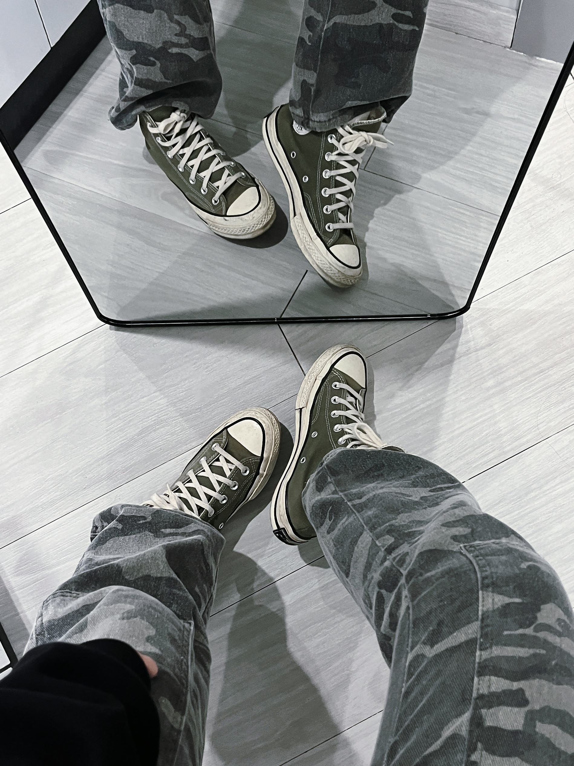 ▪️ MEDM连帽拉链卫衣|机能风外套 开春叠穿神器,显瘦轮廓+兜帽一戴谁也不爱 ▪️ 迷彩牛仔裤|潮人炸街密码 经典迷彩元素混搭牛仔,街头感直接拉满 ▪️ 匡威1970s橄榄绿|复古氛围王炸 高帮配阔腿裤绝绝子,和迷彩配色疯狂呼应! 🌟懒人出街三件套,这个开春拿捏了