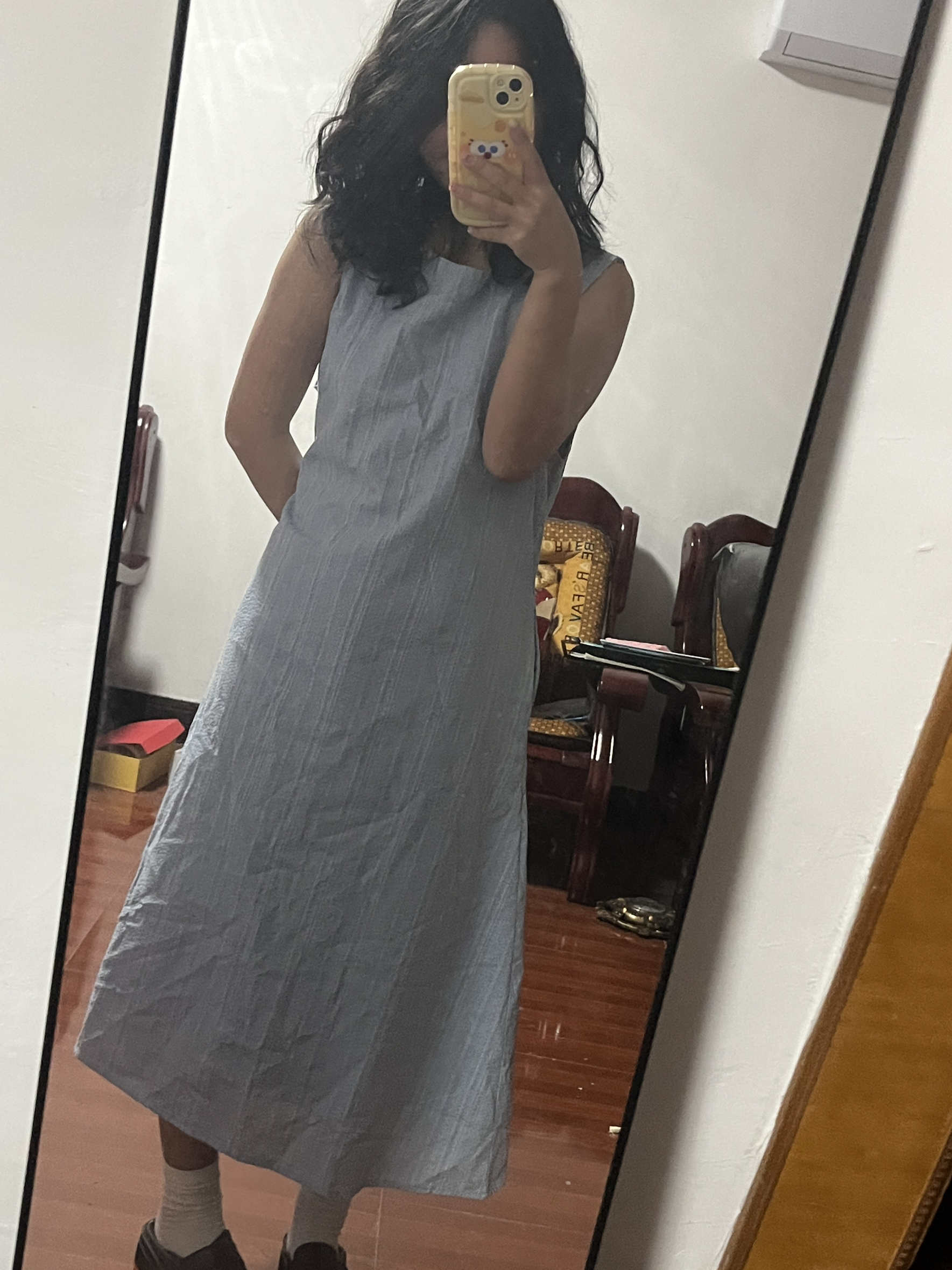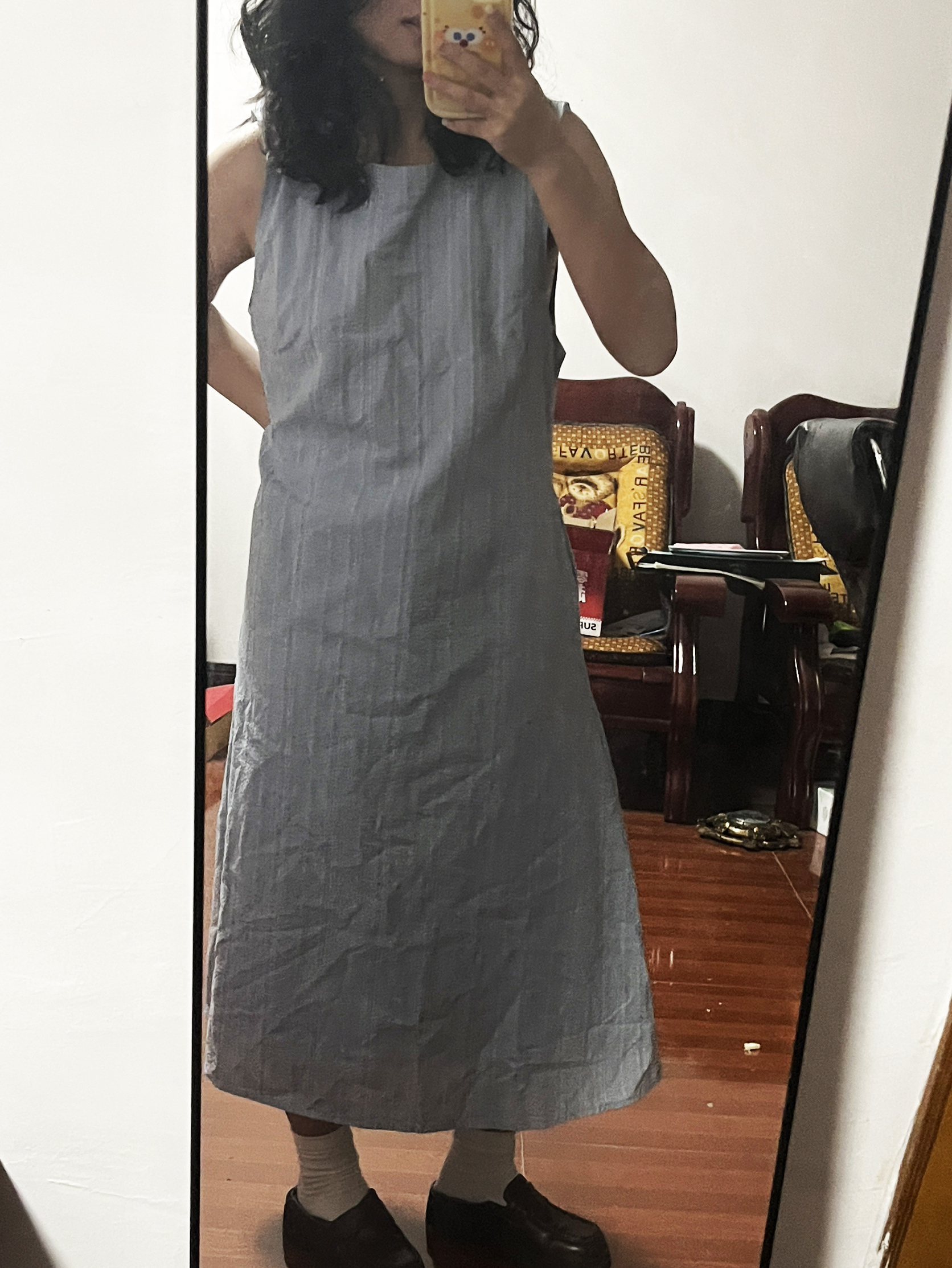 明星周也同款 蓝色条纹无袖背心连衣裙女 夏季新款文艺小清新气质长裙 度假⛱️海边很适合 裙摆很长 适合高个子女生