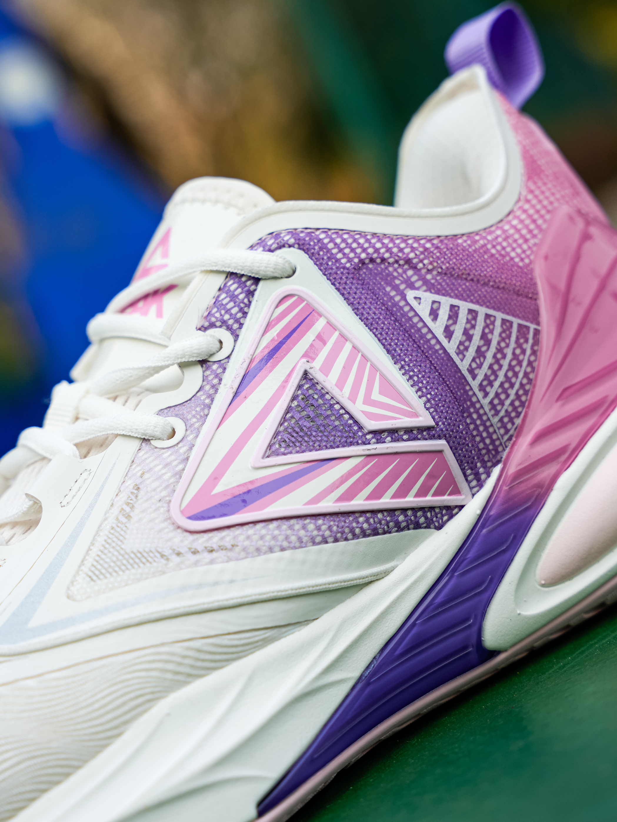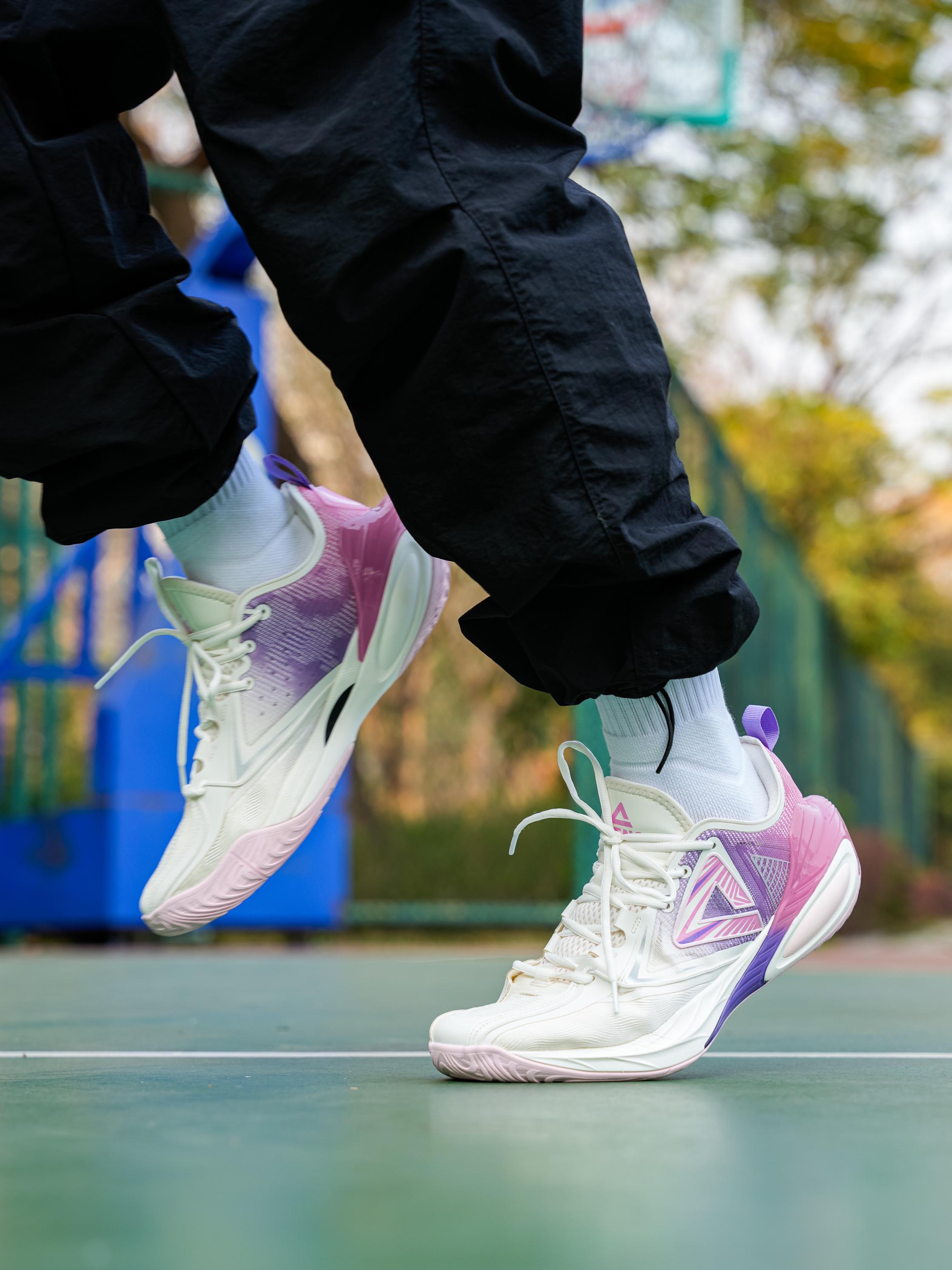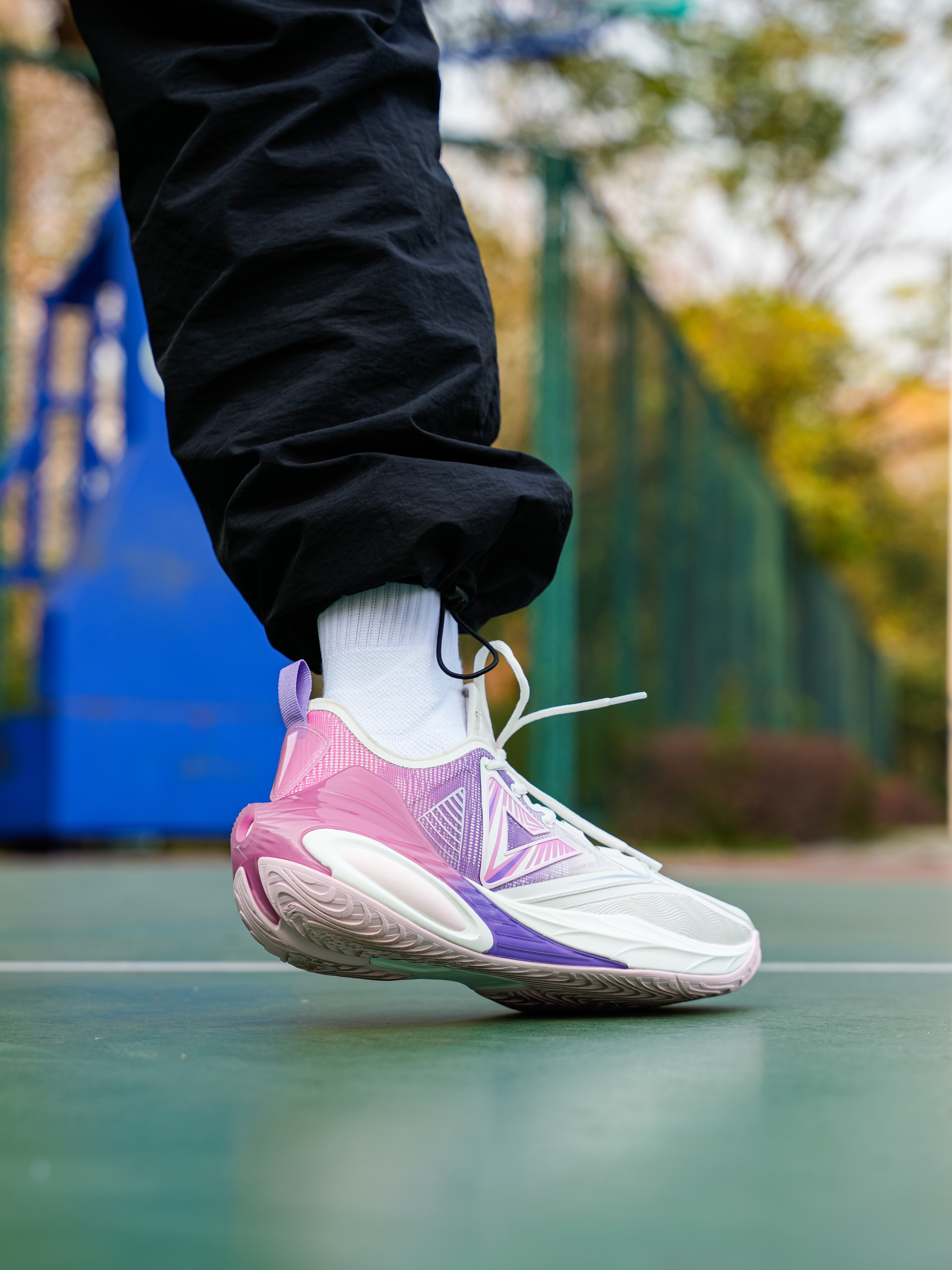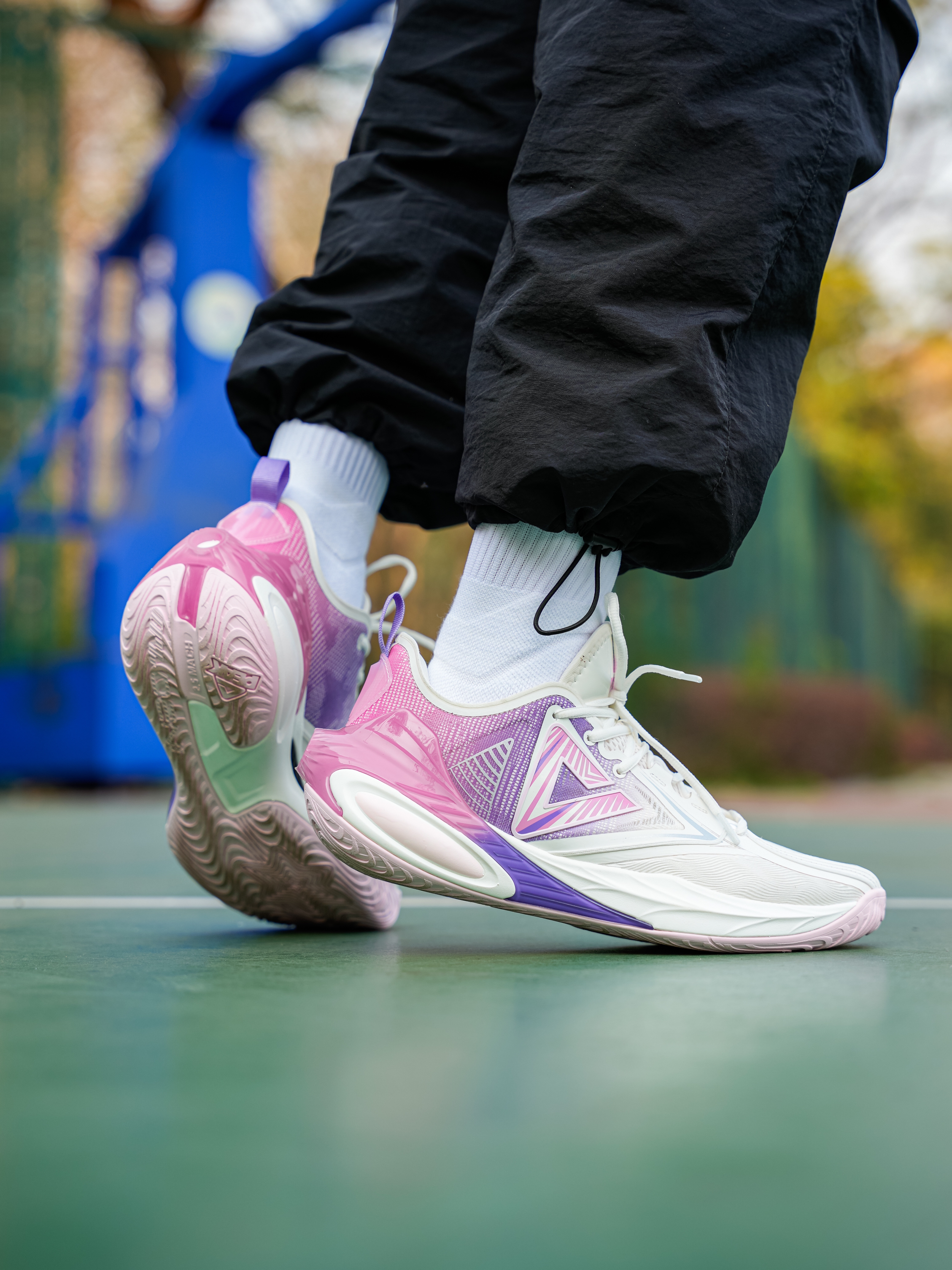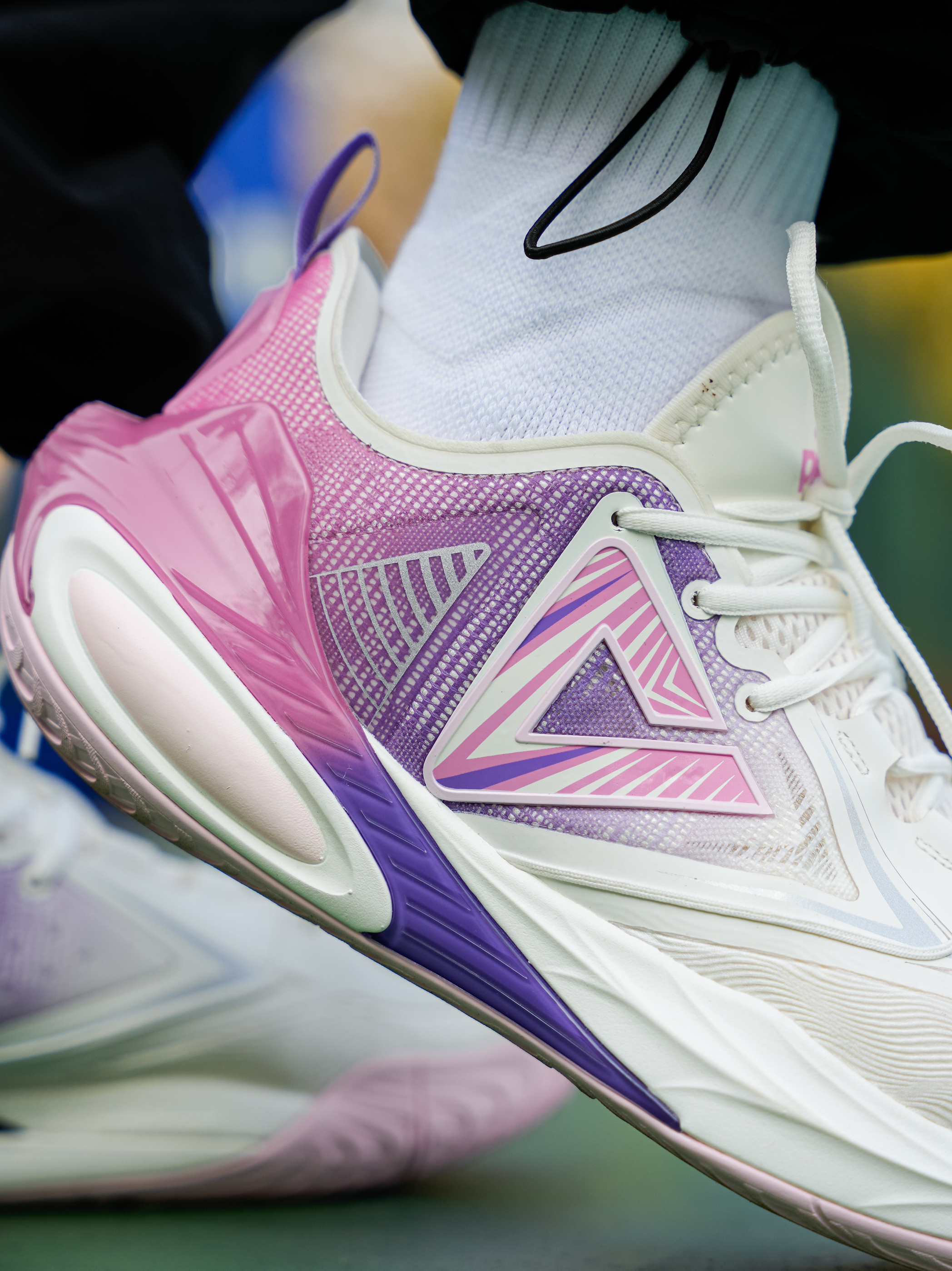 ⛹️匹克 音爆S 霞光配色!场地感十足的实战球鞋! 上脚这双霞光音爆S颜值属实在线,白紫结合显得更醒目且更有“韵味”哈哈哈! 中底双层架构:全掌超临界物理发泡➕TPU组合,给足了实战稳定性以及整体回弹反馈 内嵌的勺型碳棍也提供了澎湃的爆发力量,侧面也做了防侧翻,橡胶大底比较厚实,耐久性足够 整体实战表现不错… ⛹️这双鞋鞋楦偏窄,穿篮球袜可以正常码选择!宽胖脚要大一码!