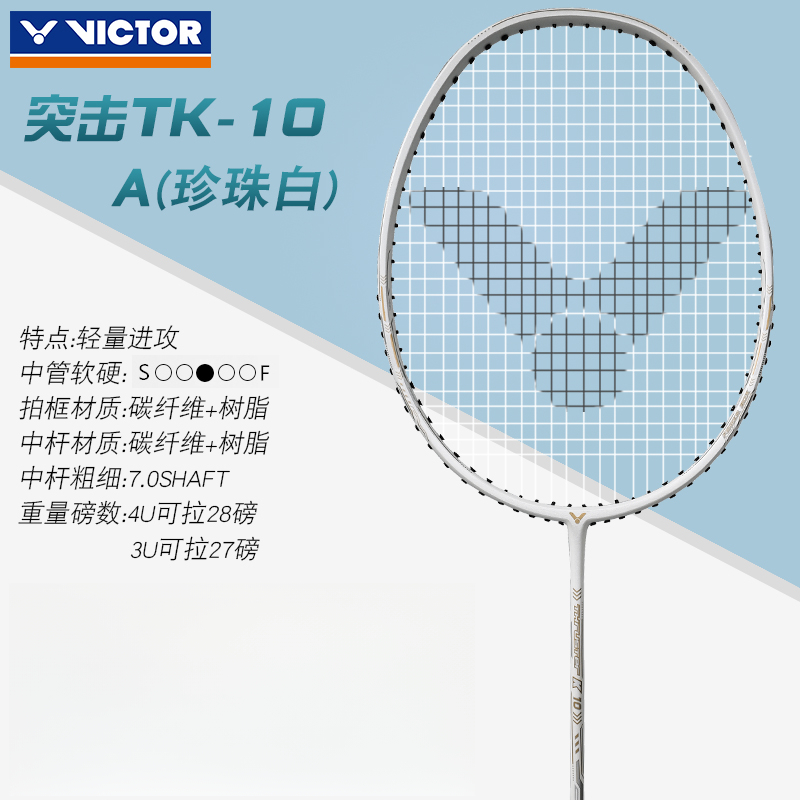 本篇笔记关联了VICTOR/威克多 突击系列 TK-10 控球型 进阶级 入门级 超轻高磅 耐打 杆硬 拍头重 全碳素 羽毛球拍 白金 等商品,为用户提供真实的使用体验和购买参考。