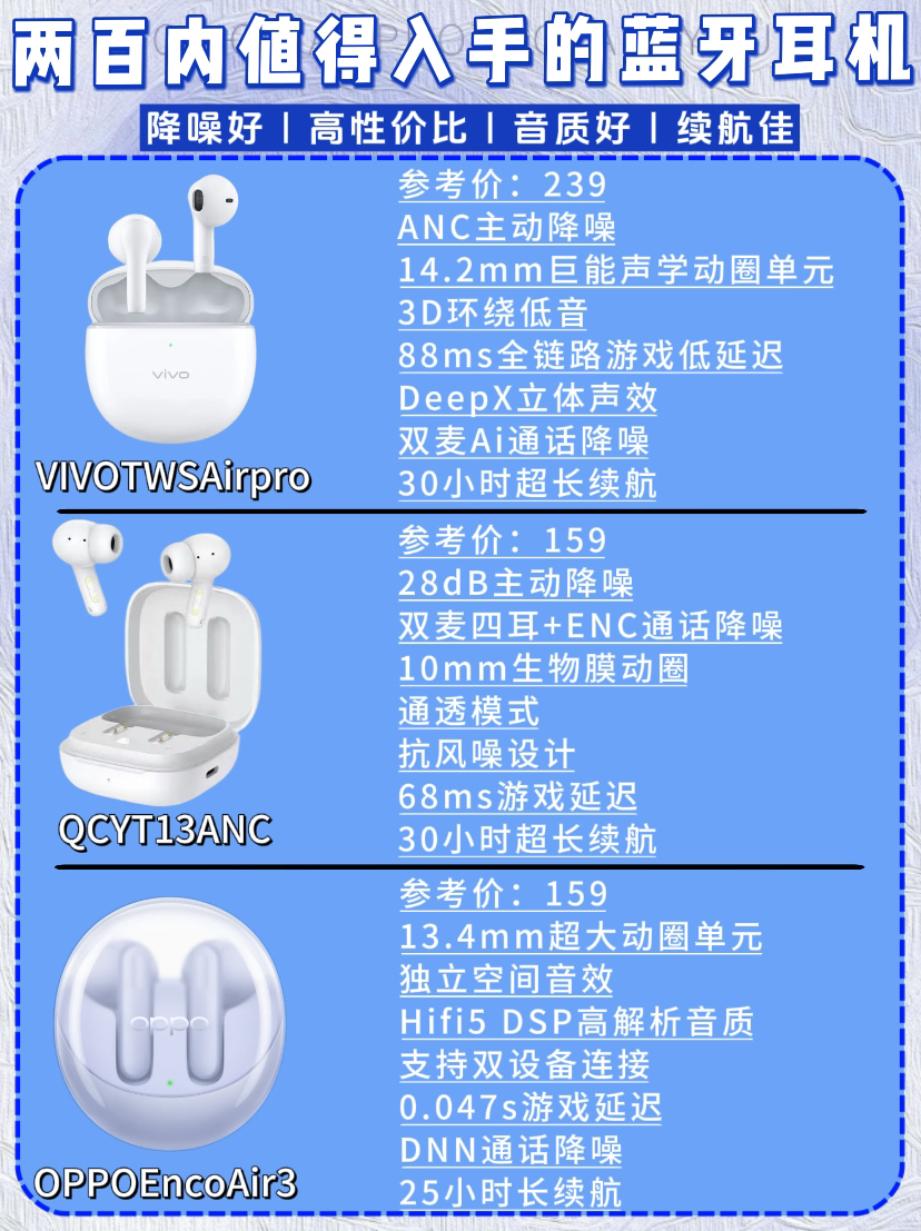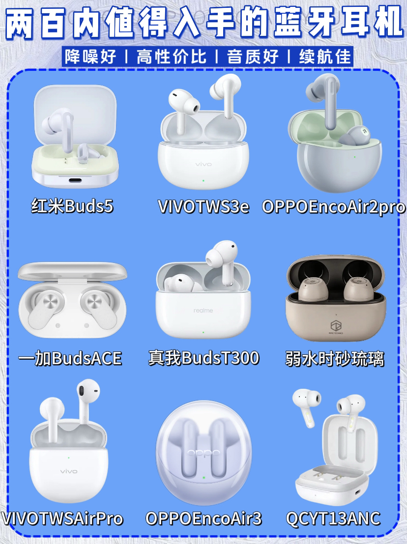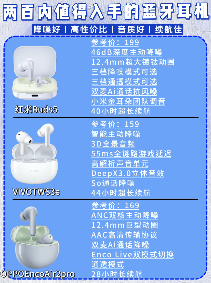 💥 **【200元档四大天王】💥** **1️⃣ 降噪卷王:红米Buds 5** - **-35dB深海降噪** 公交地铁秒变图书馆 - **双设备连接+36h续航** 学生党早八课神器 - ❗️米粉闭眼入,MIUI生态无缝弹窗 **2️⃣ 音质战神:vivo TWS3e** - **40Hz超重低音** 听欧美核爆级轰头感 - **aptX无损解码** 周杰伦歌词听...