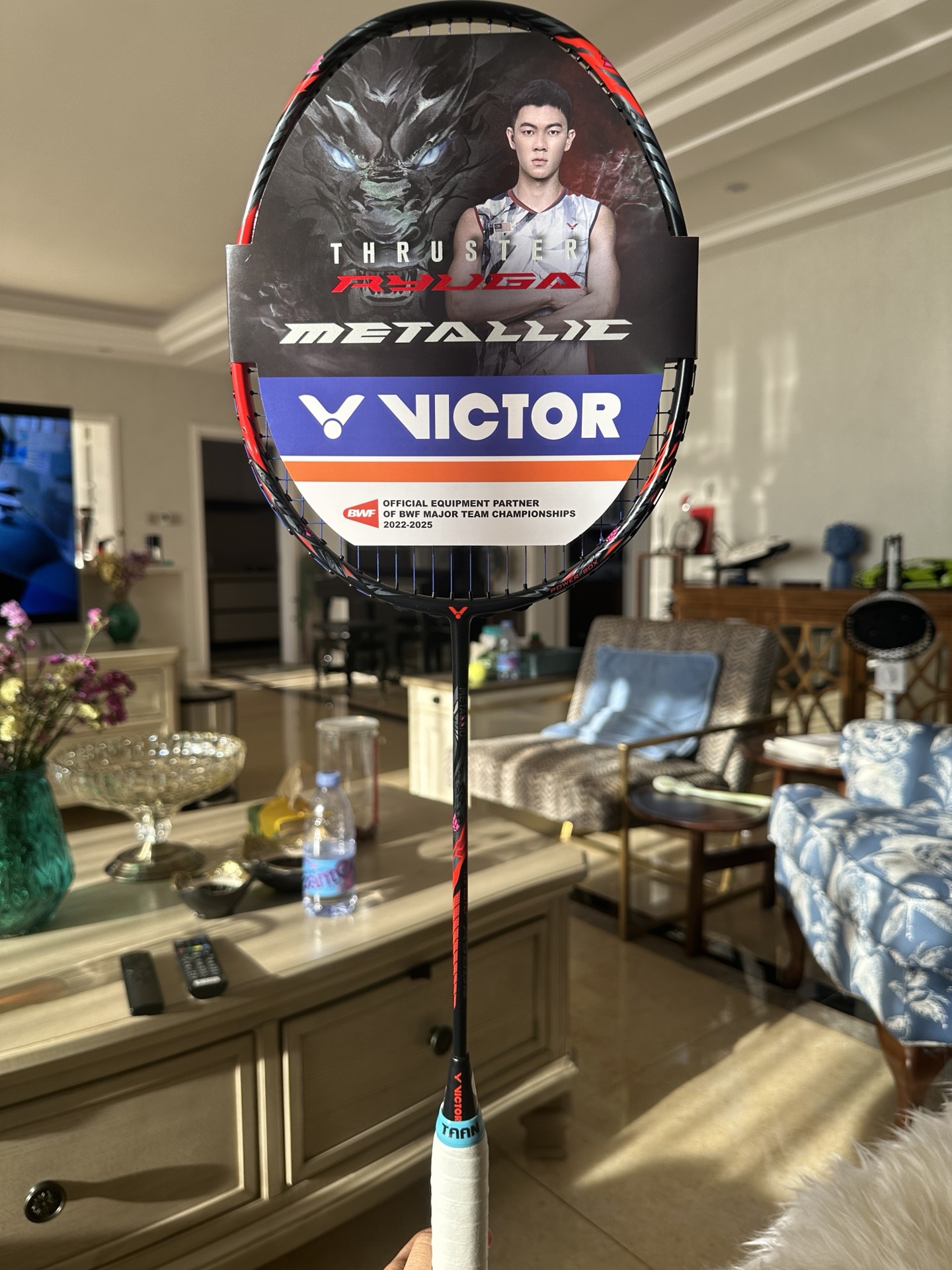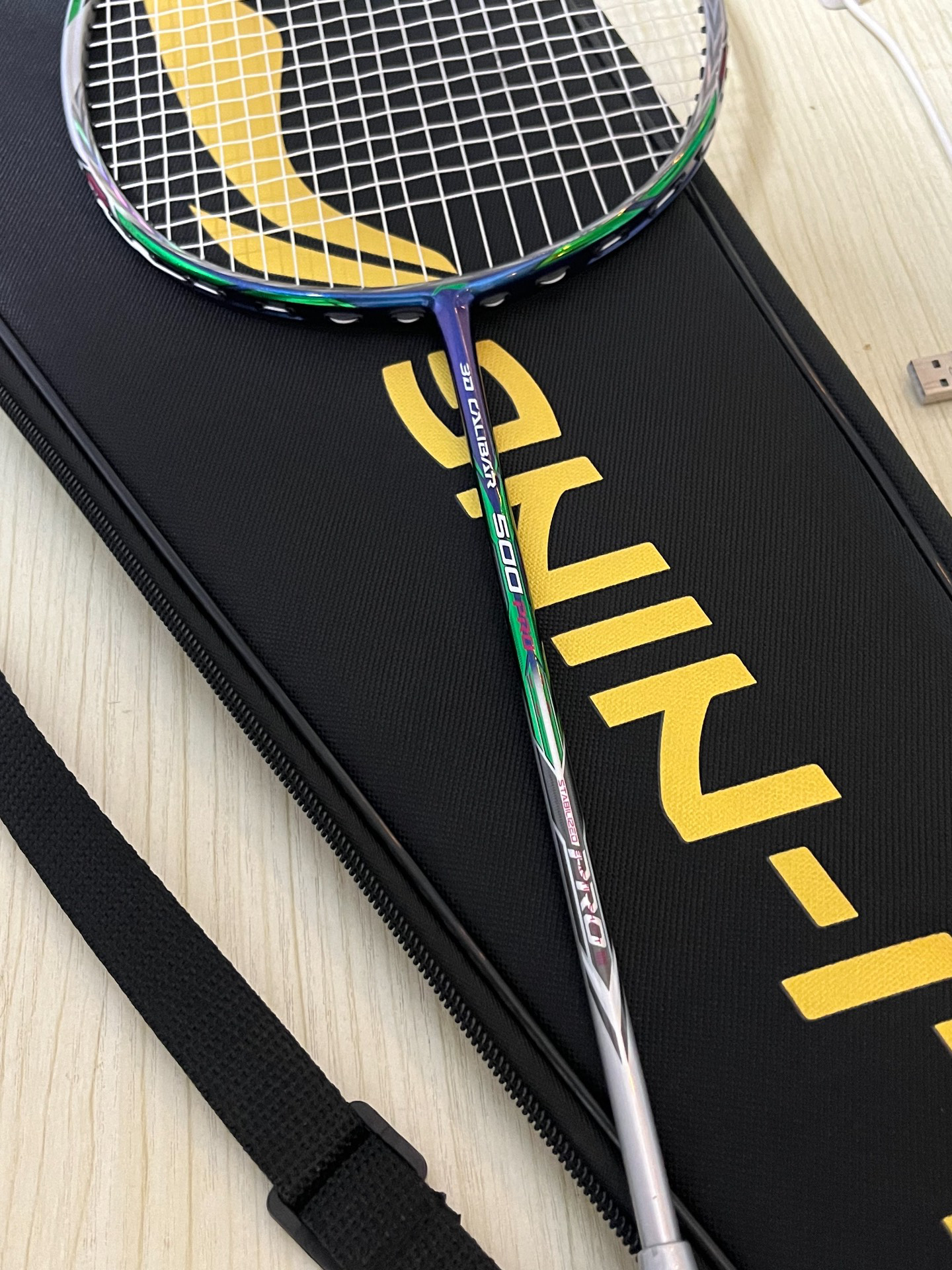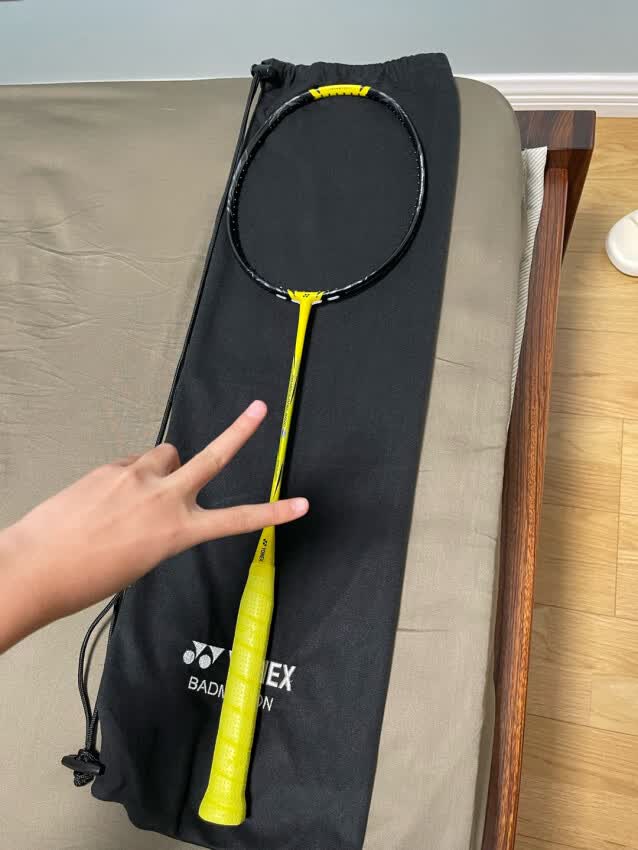 看看我的蛇年限定球拍,颜值超高! 拍子拿在手上特别轻盈, 并且拍杆很硬朗, 约羽毛球不?明天想用这支去打球![耍帅_blue]