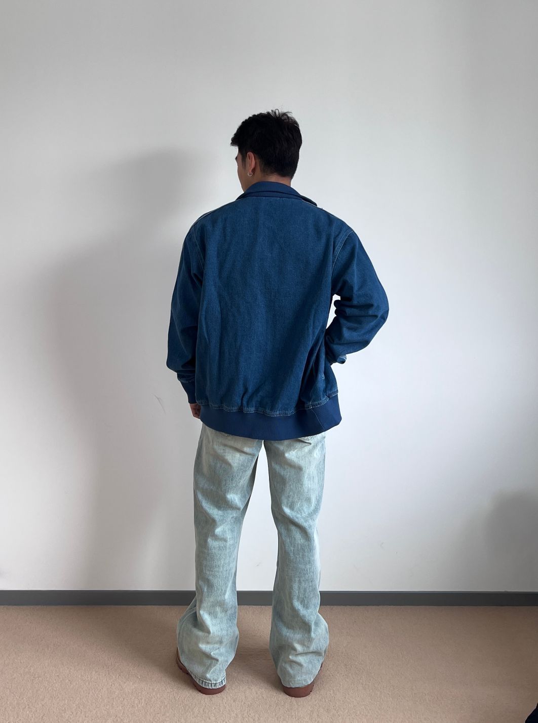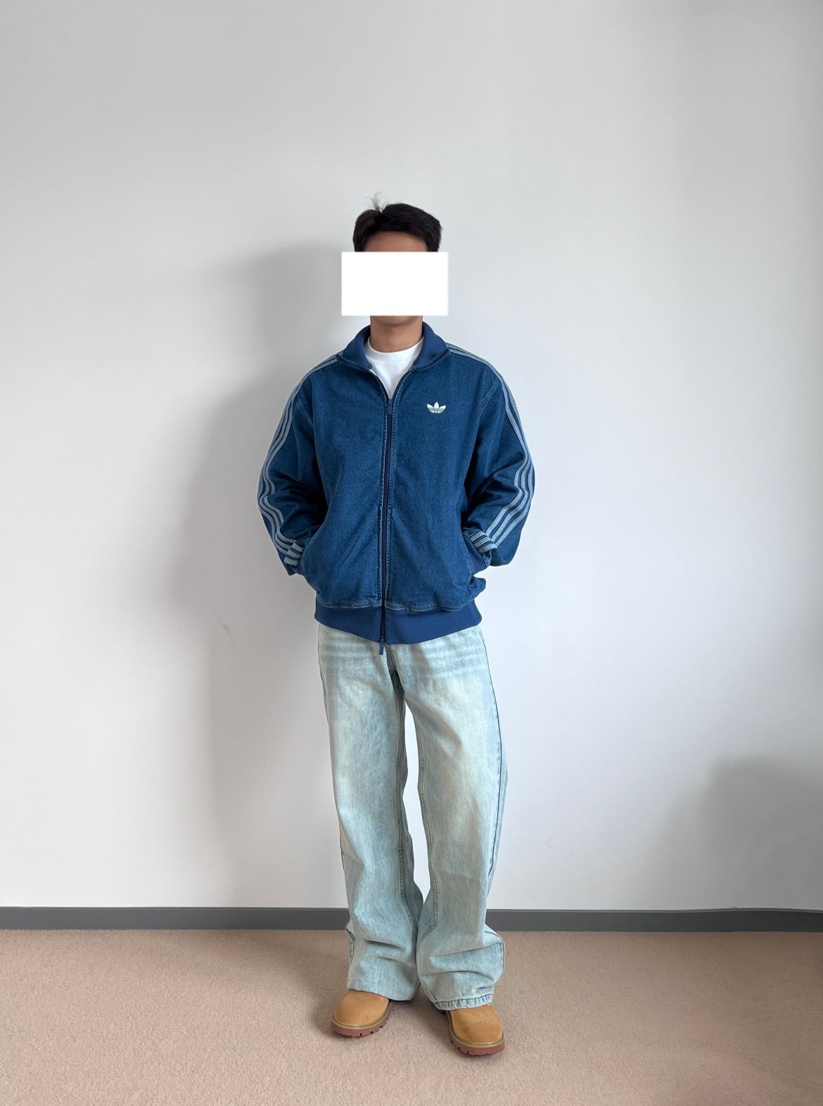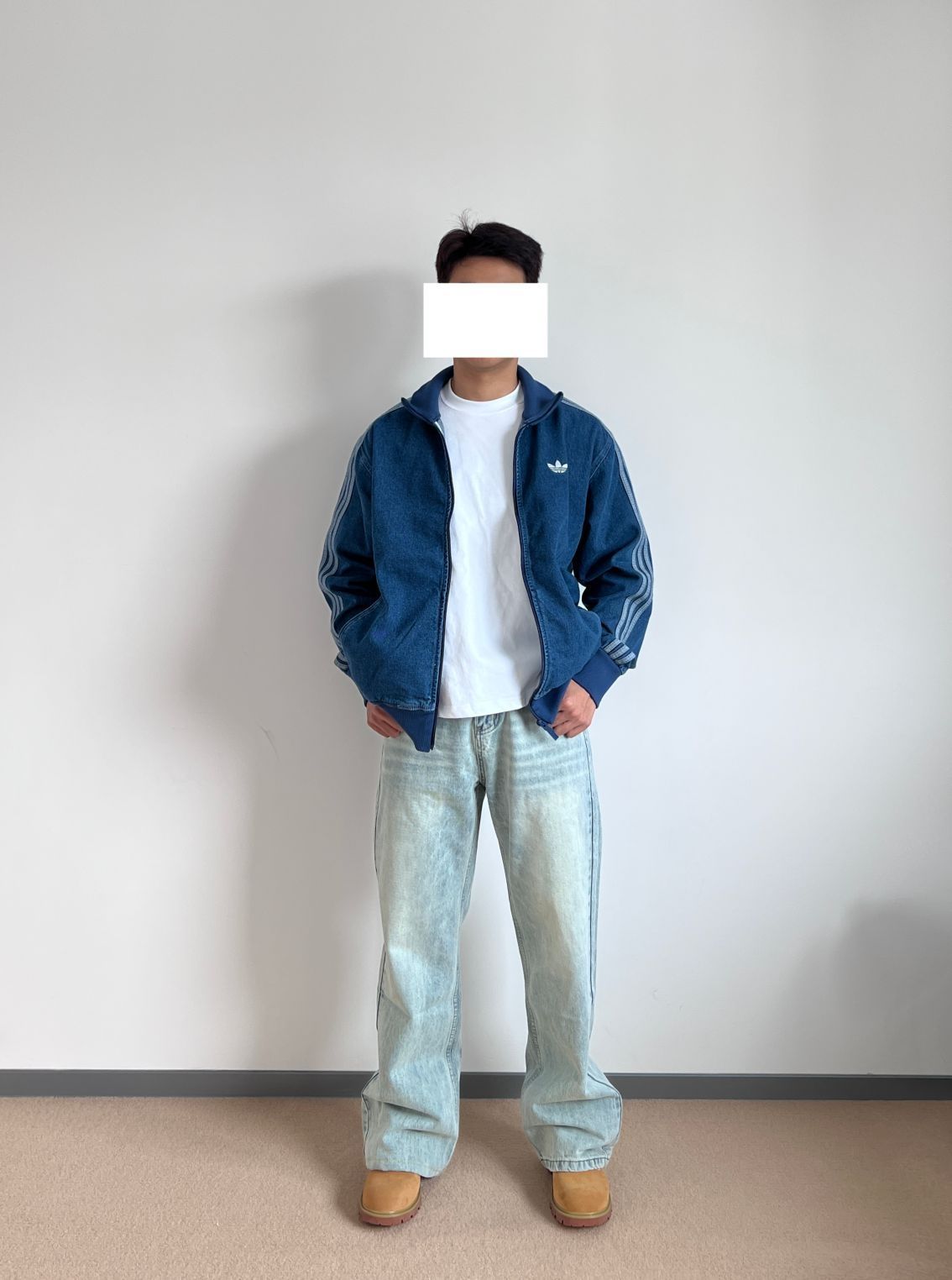 复古蓝牛仔外套+浅蓝牛仔裤+大黄靴点缀,一整天蓝色系cleanfit搭配大功告成