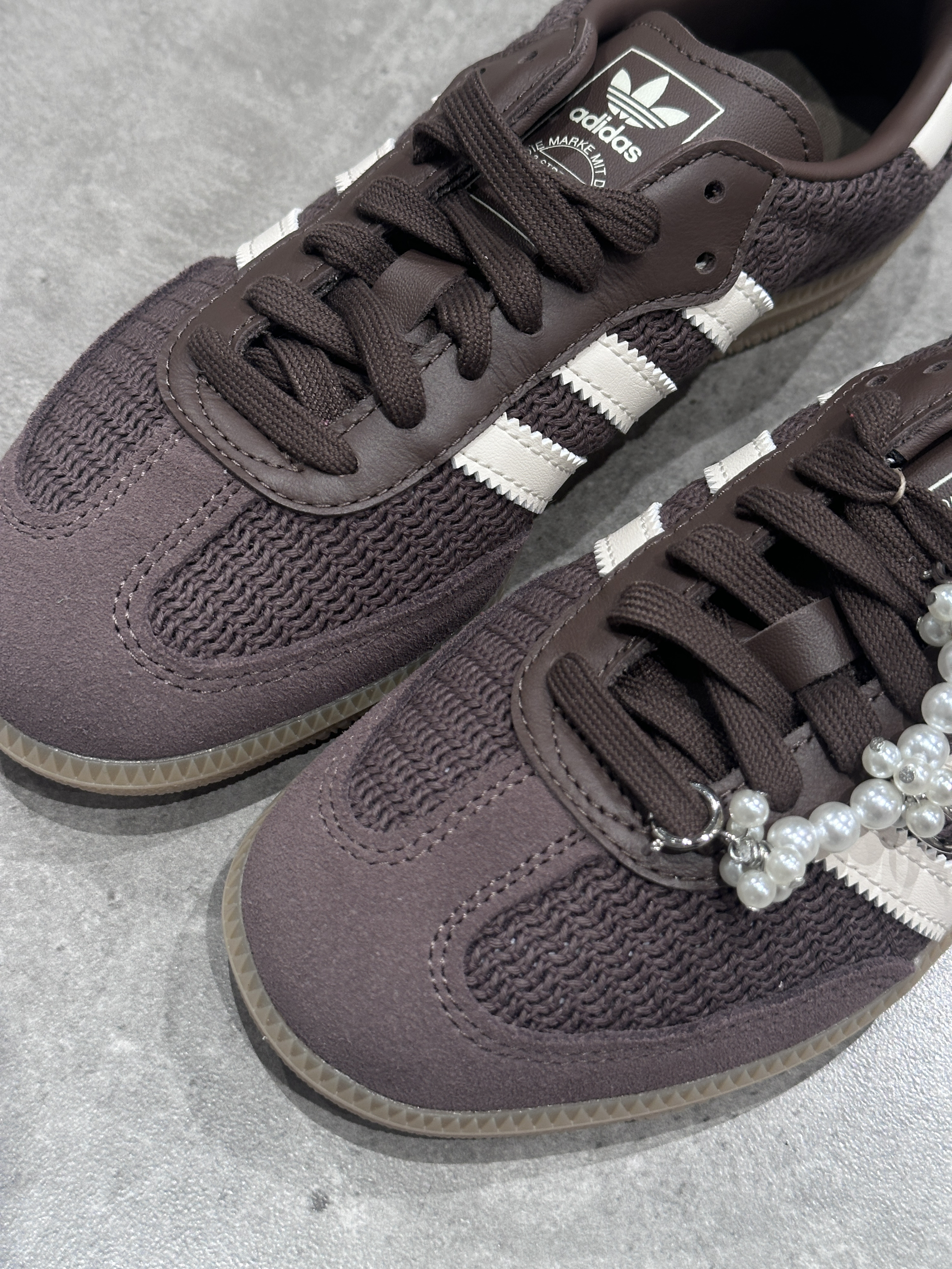 深棕鞋面质感拉满,经典三条杠以白色呈现😎简约又不失辨识度,复古韵味十足😋重点是,它还搭配了珍珠链条⛓ 瞬间打破单调,优雅与潮流完美融合🔥小众又别致,谁懂啊😄