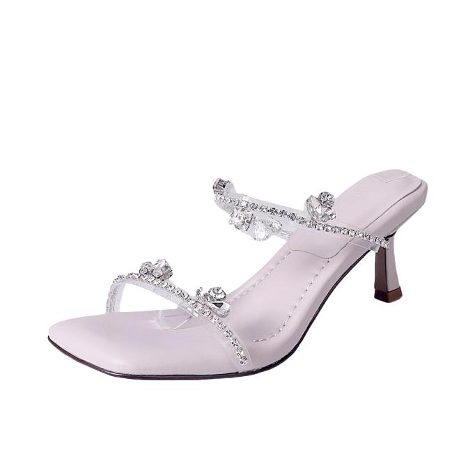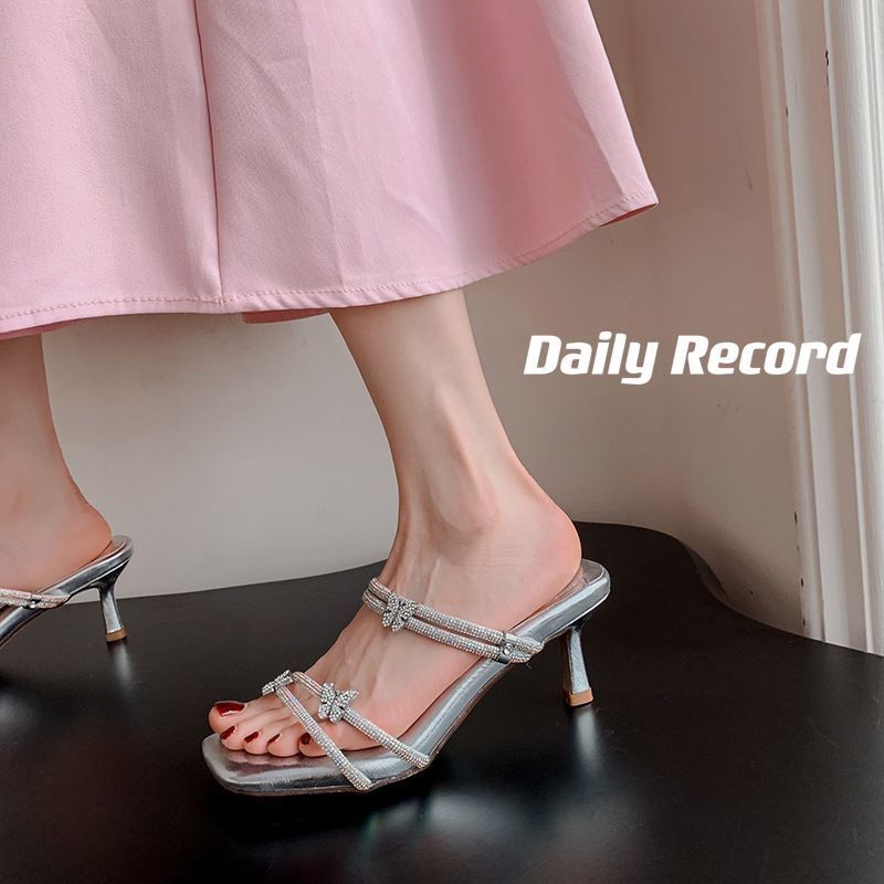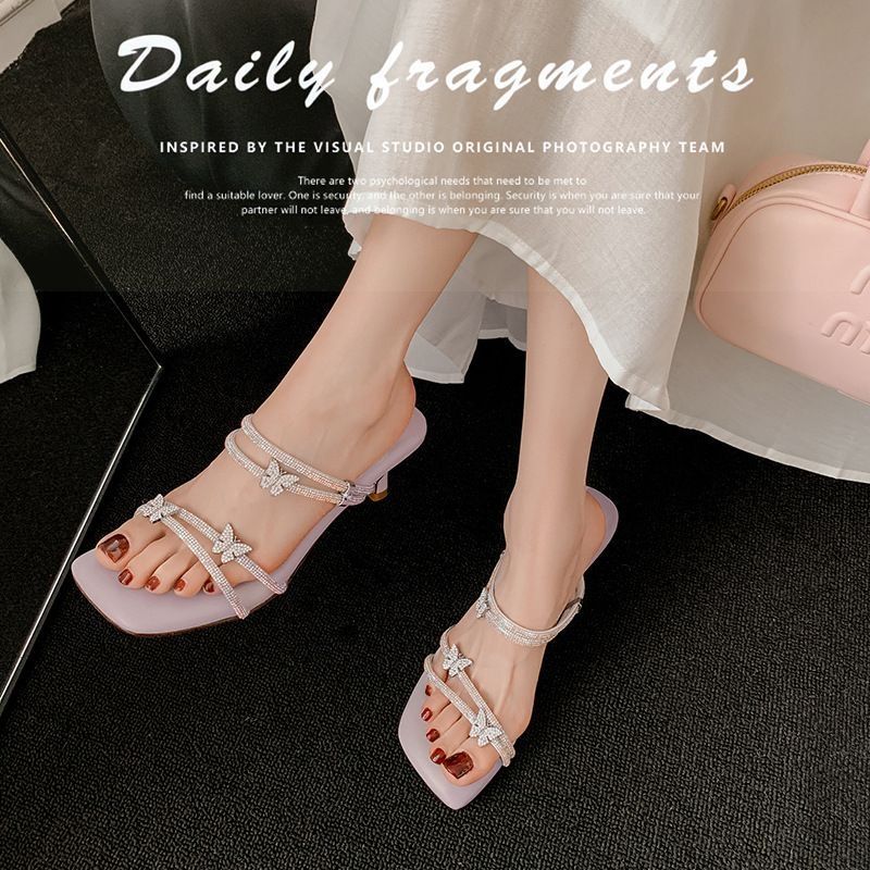 罗马凉拖女夏外穿2025新款韩版时尚凉鞋两穿蝴蝶水钻透明粗跟凉鞋