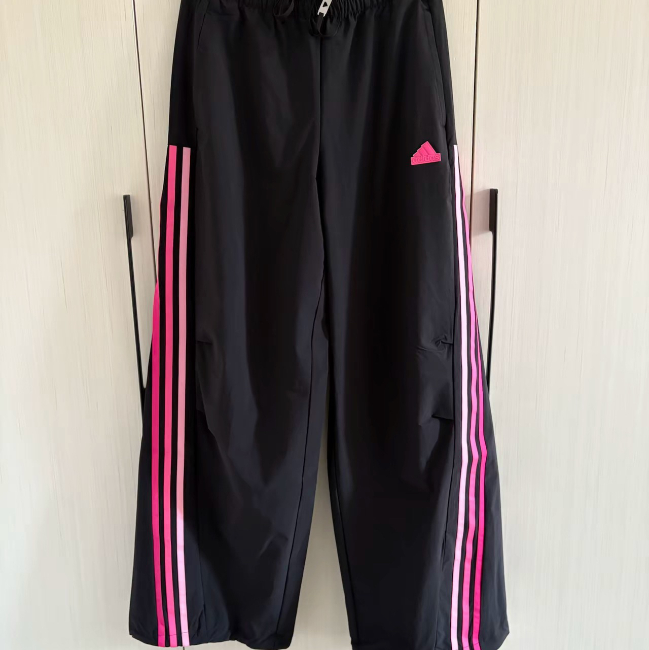 我又快乐了,阿迪达斯黑粉配色长裤太好看了吧,我感觉这是条能一直穿的裤子 宽松的 ,秋冬里面可以套衣服 偏大一点 ,选择上可以选小一至两个码 长度也比较长 裤脚可以收口! 图片来源于@对镜拍的美少女