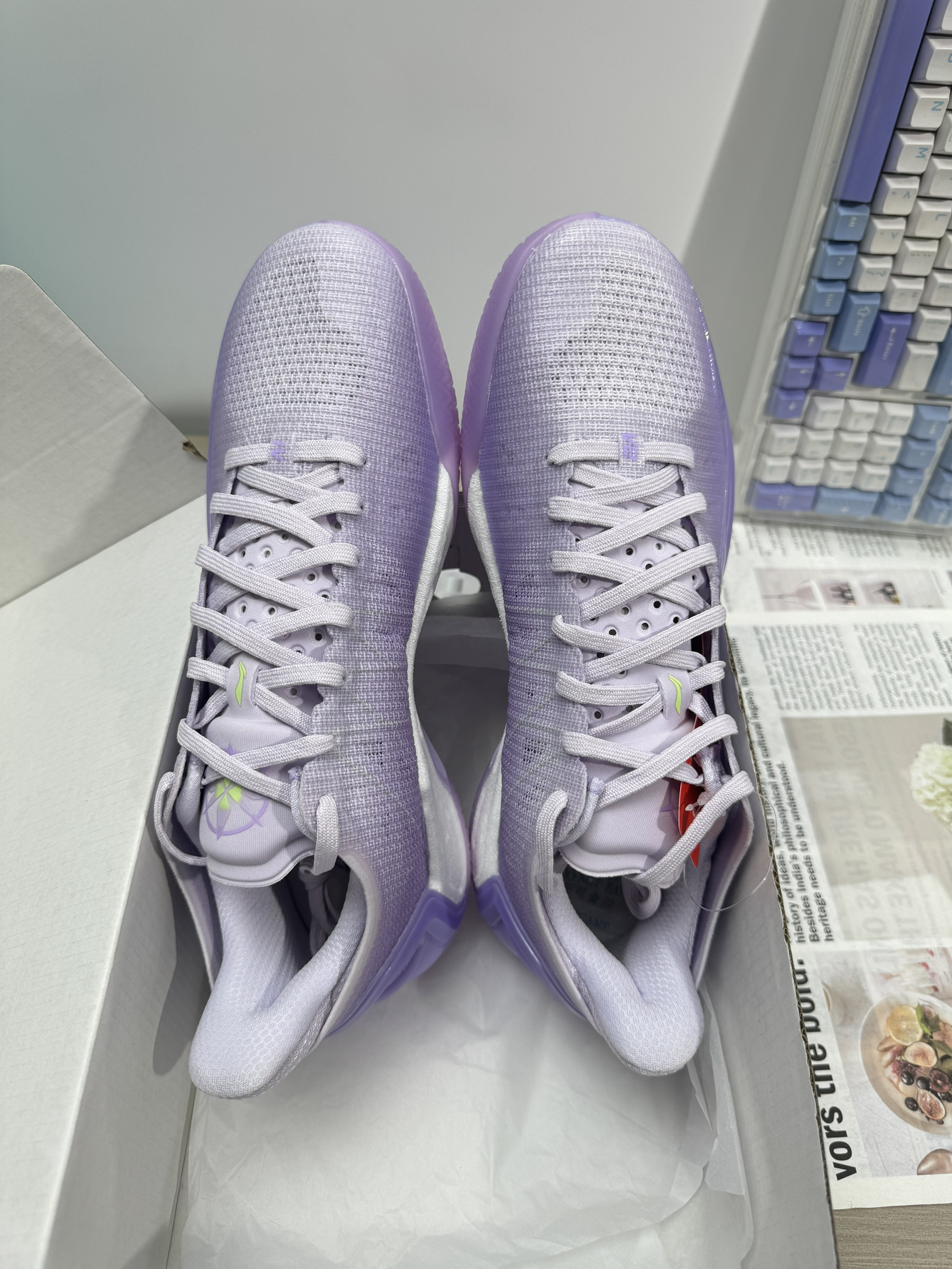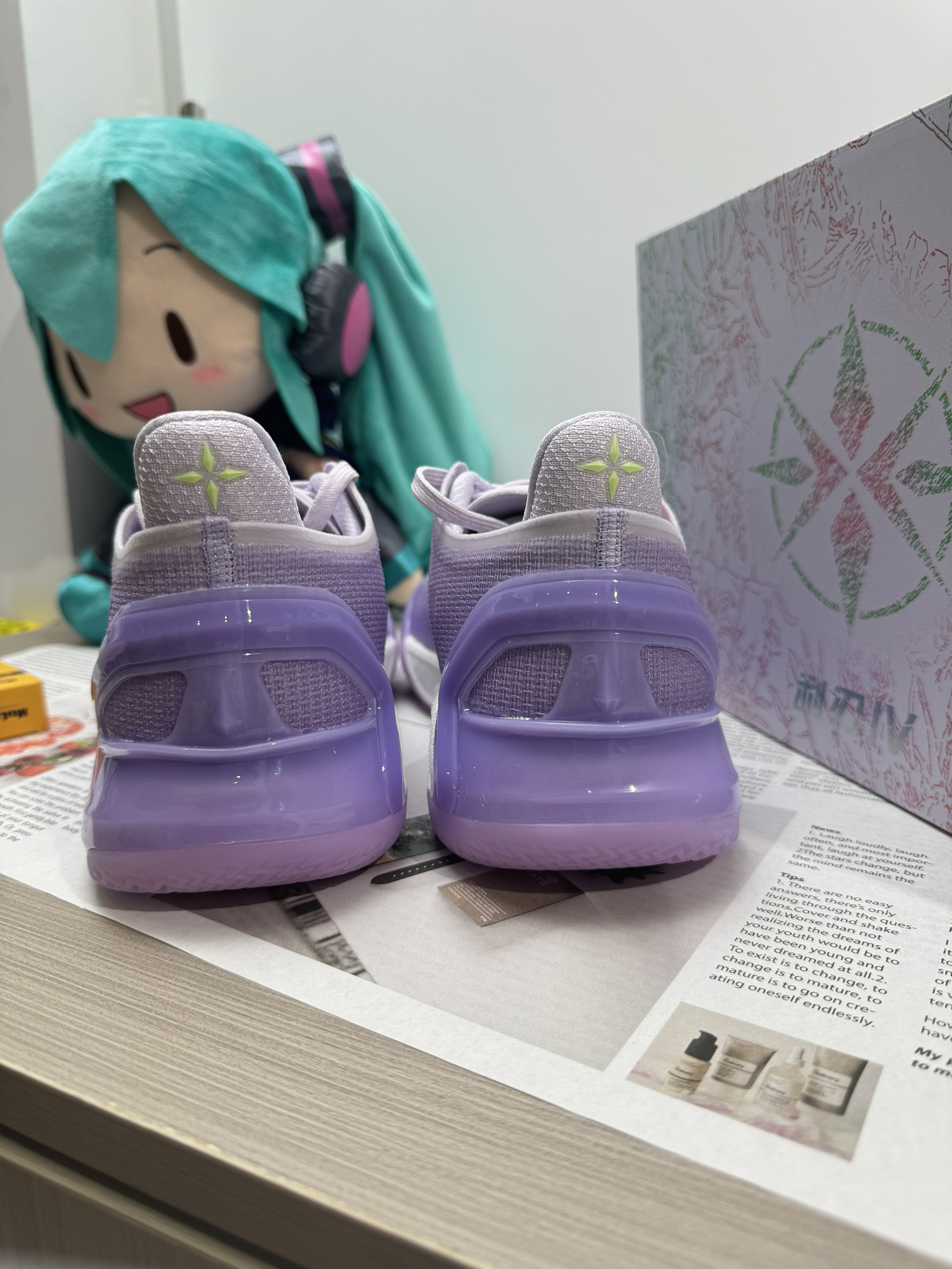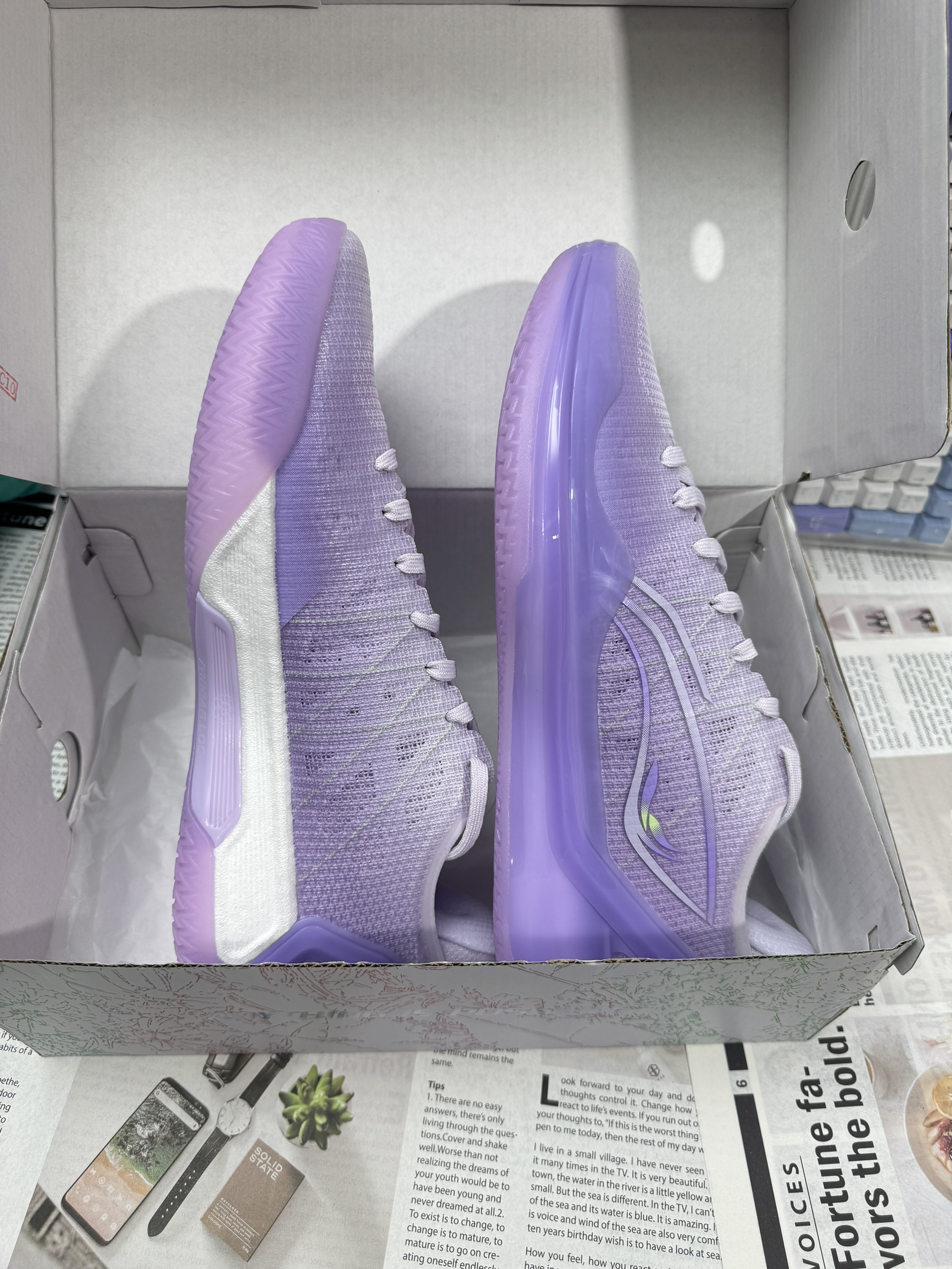 李宁利刃系列一直都是颜值出众的篮球鞋,这次的紫白渐变配色真的惊艳到我了,已经把我给迷住了,鞋子上脚全包裹的,前面是网状的透气打久了不闷脚,十分的赞,缺点就是不耐脏