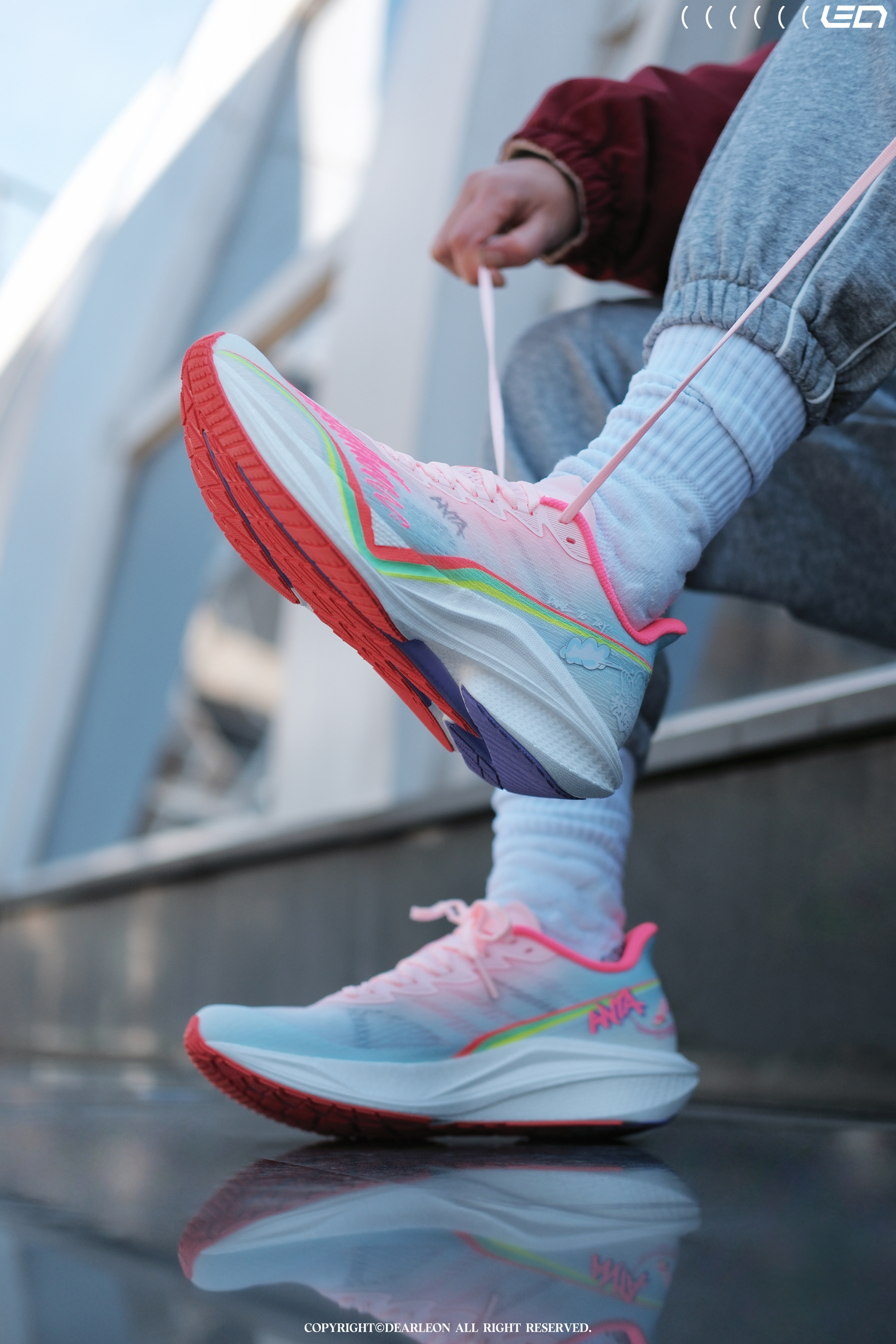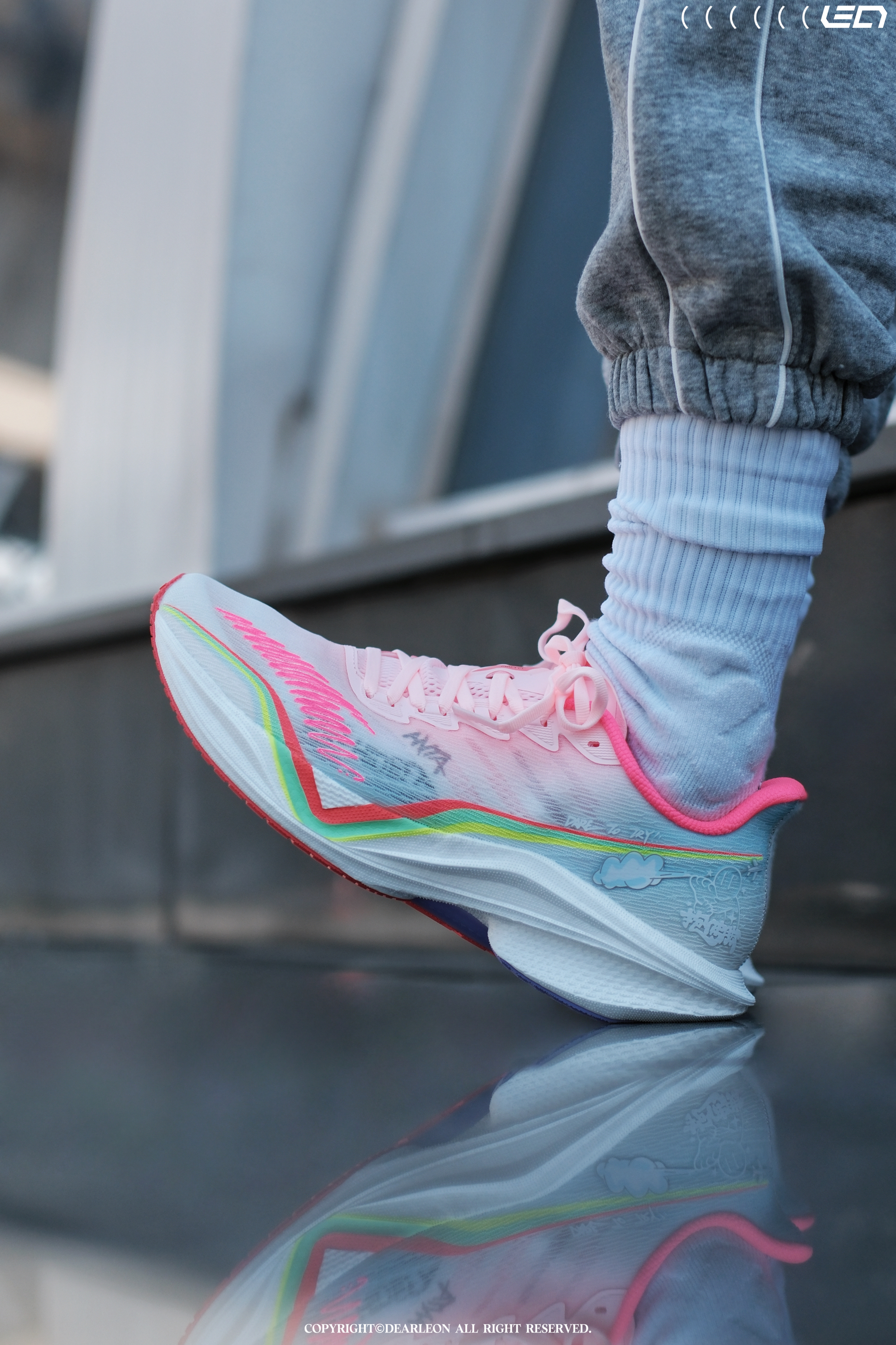 - 跑鞋陪你加速度⚡今天我们来上脚开箱这双 安踏 MACH马赫 5.0 “抱佛脚”配色💗 想说的是,这双马“抱佛脚”配色是内蒙古一位初中生自己设计的,用彩绘笔画出了她心目中马赫5的样子🖼️最后真出了这配色,也是适合她初中体考体测的一双鞋,也是一件蛮有意义的事情~ 外观方面🗣️白粉红三个色调配上鞋身大面积的彩绘图案🖌️既童趣又蛮有细节的,视觉效果也到位了👀 马赫5的鞋型也是这几代里我觉得比较有速度...