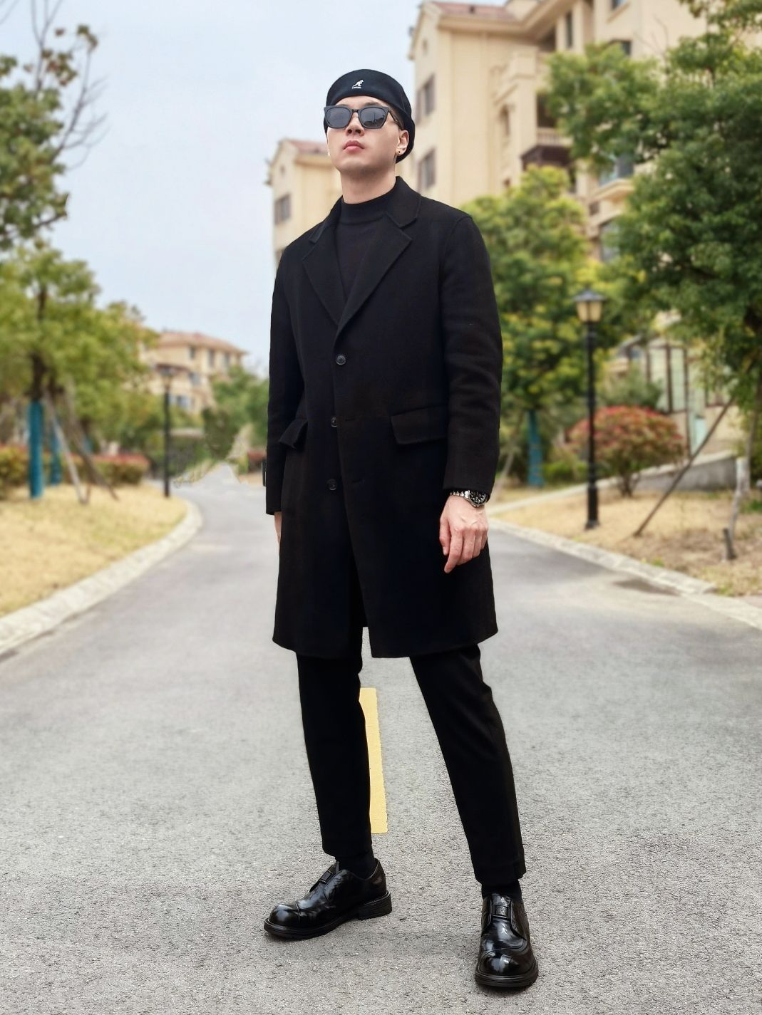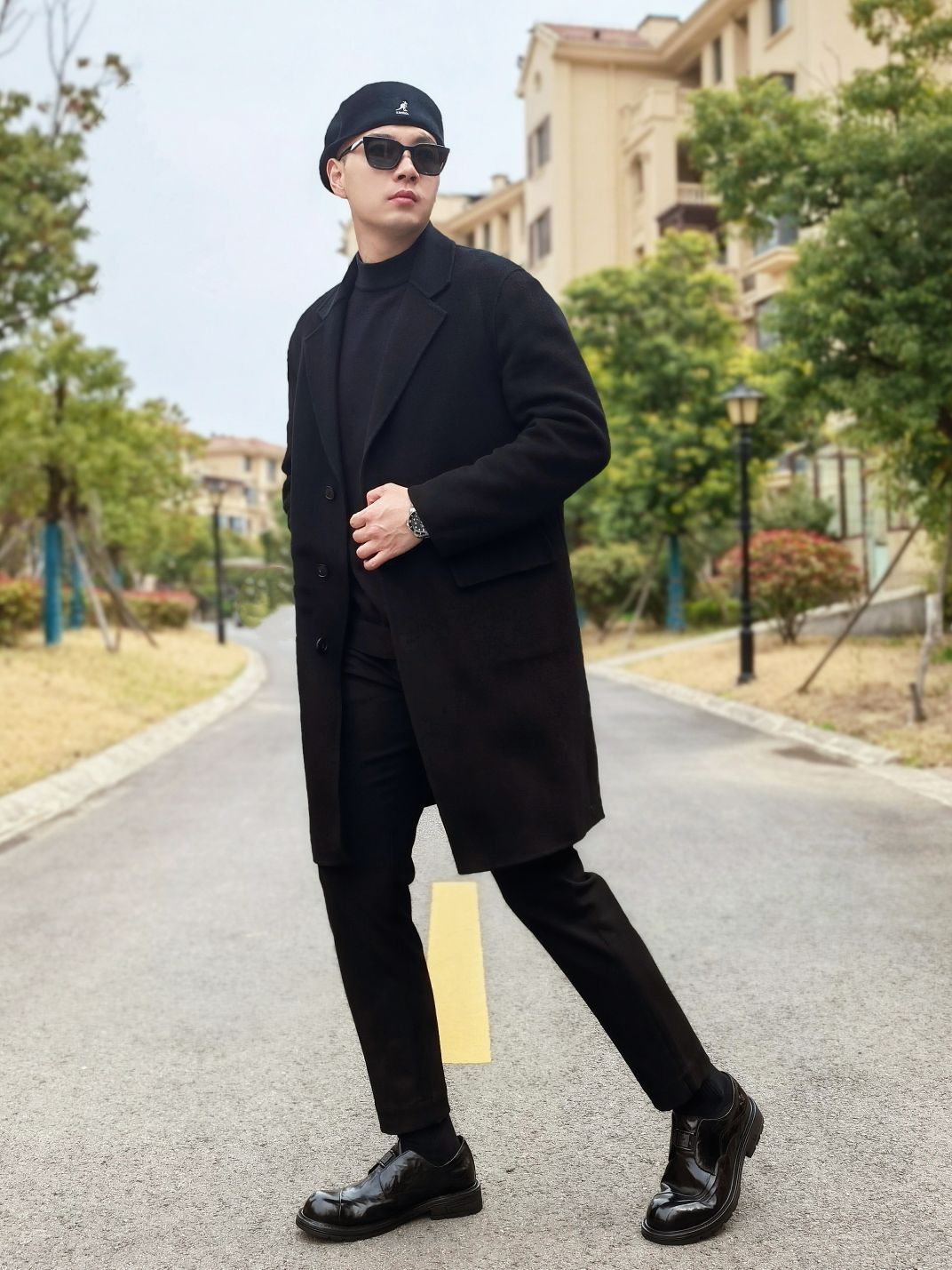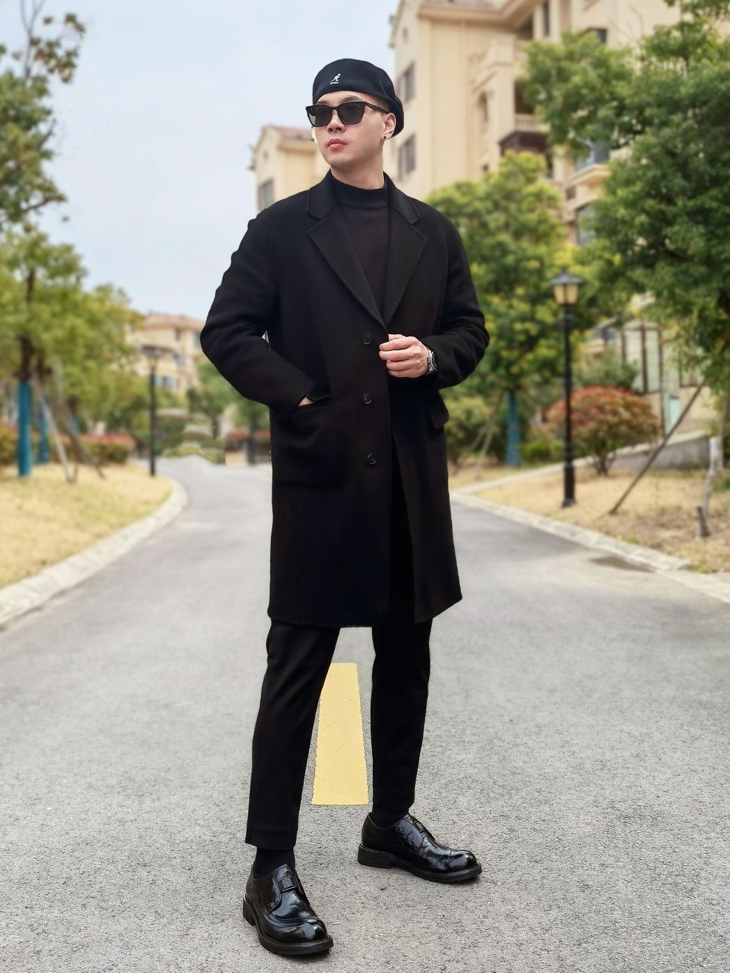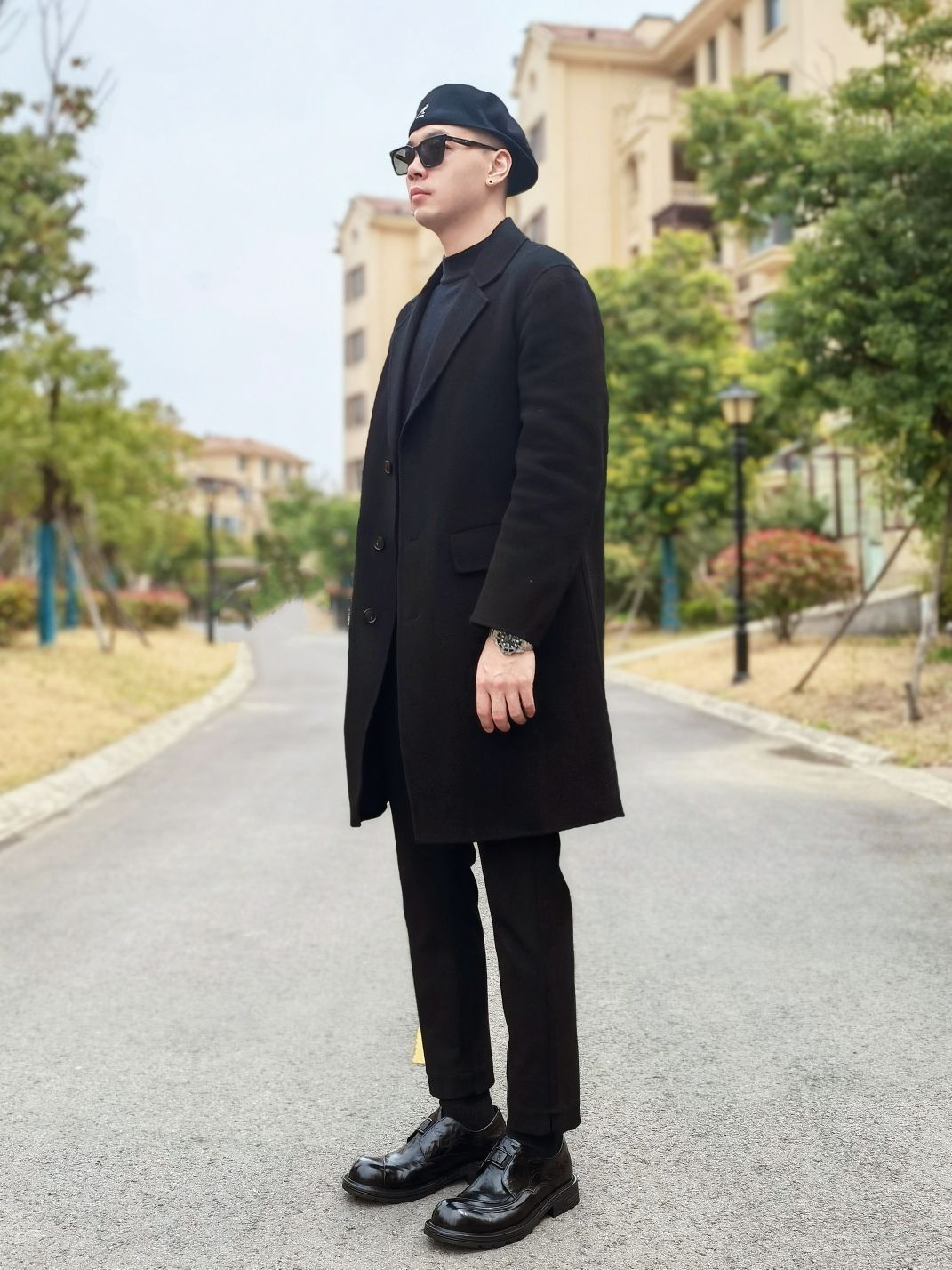 hello 大家好,这里是撒旦锅锅 💜179cm/80kg 🌞今日穿搭为潮酷休闲风格 搭配类型:大衣+休闲裤+休闲皮鞋 上身穿一件黑色大衣搭配黑色打底,下身搭配一条黑色休闲裤,最后搭配一双黑色德比大头皮鞋,整体黑色系穿搭潮酷休闲感十足,种草推荐❤