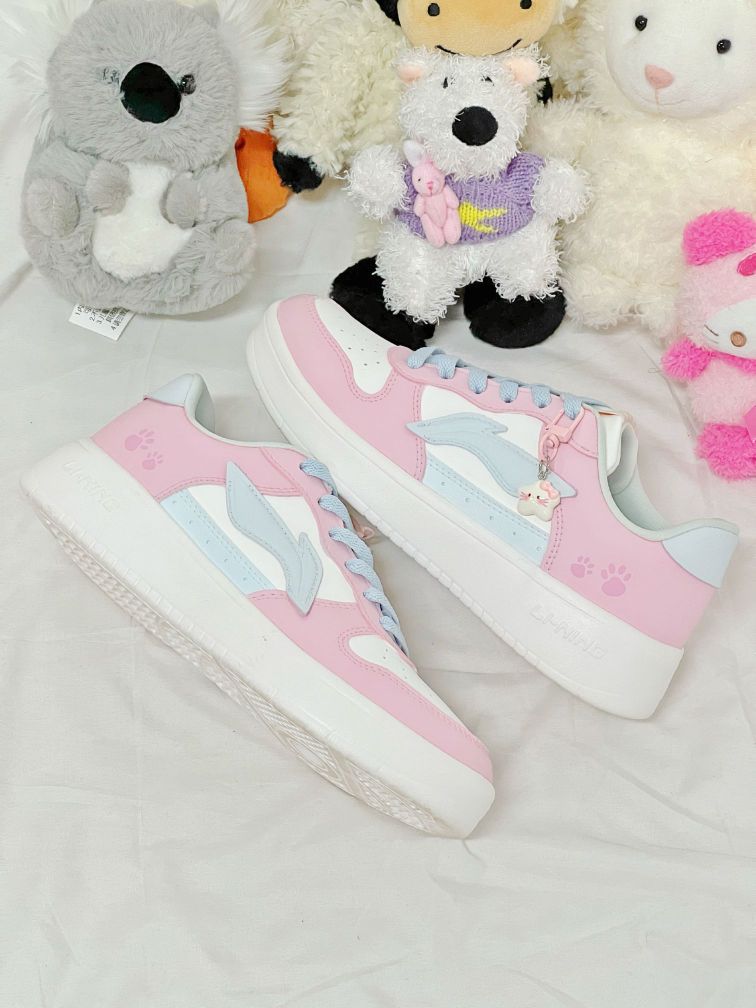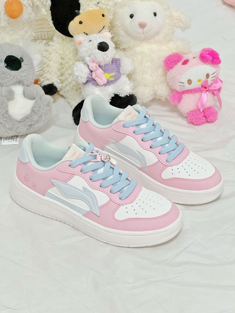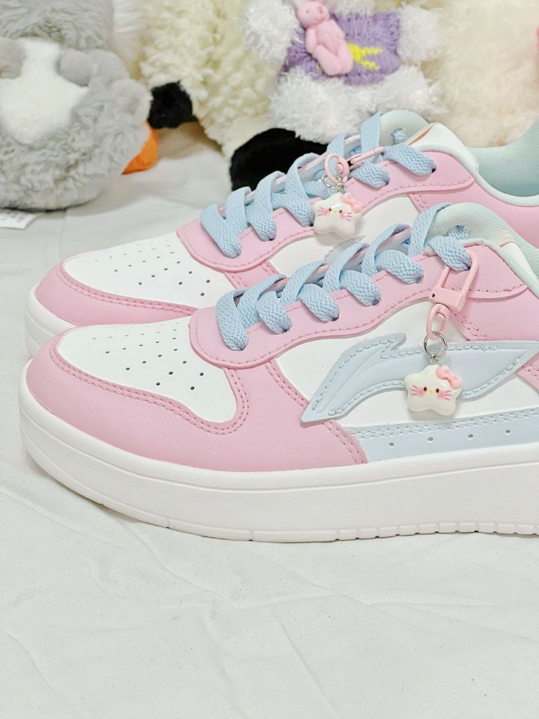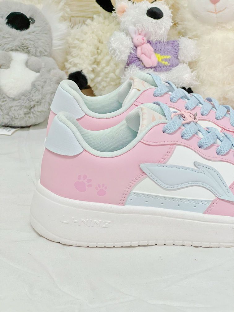 李宁这双「浮舟玖染心动喵喵」低帮板鞋也太懂少女心了吧! 樱花粉鞋身配冰蓝细节,像把春夏穿在脚上,鞋面透气网布+果冻质感的装饰,阳光下还会微微闪光,日常穿简直自带高光! 最绝的是鞋带孔的小猫爪金属扣,走起路来叮叮当当超灵动,每次穿都会被追着问链接~甜妹们冲 上脚第一感觉是鞋底软得刚刚好,暴走不累脚,低帮设计把脚踝线条衬得超纤细。试过搭牛仔短裤瞬间腿长一米八,配JK制服又甜度爆表,连办公室直男同事都夸...