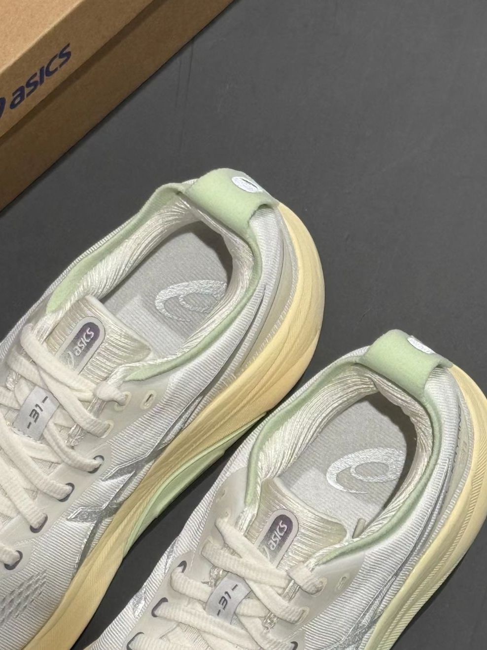 Wow,把春天踩在脚下!竖|GEL-KAYANO 31 当奶油白遇上冰川银,再被一抹浅春绿撞上奶油黄 ——这双鞋的配色简直是为春夏而生的心动狙击! + 一眼心动的设计细节 鞋面|温柔奶油白×未来感金属银,高级又清爽 鞋底|半是嫩芽破土的「浅春绿」,半是绵密奶霜 的「奶油黄」,踩出一步一惊喜的治愈感! 家人们,这么治愈的鞋子不许你们不知道