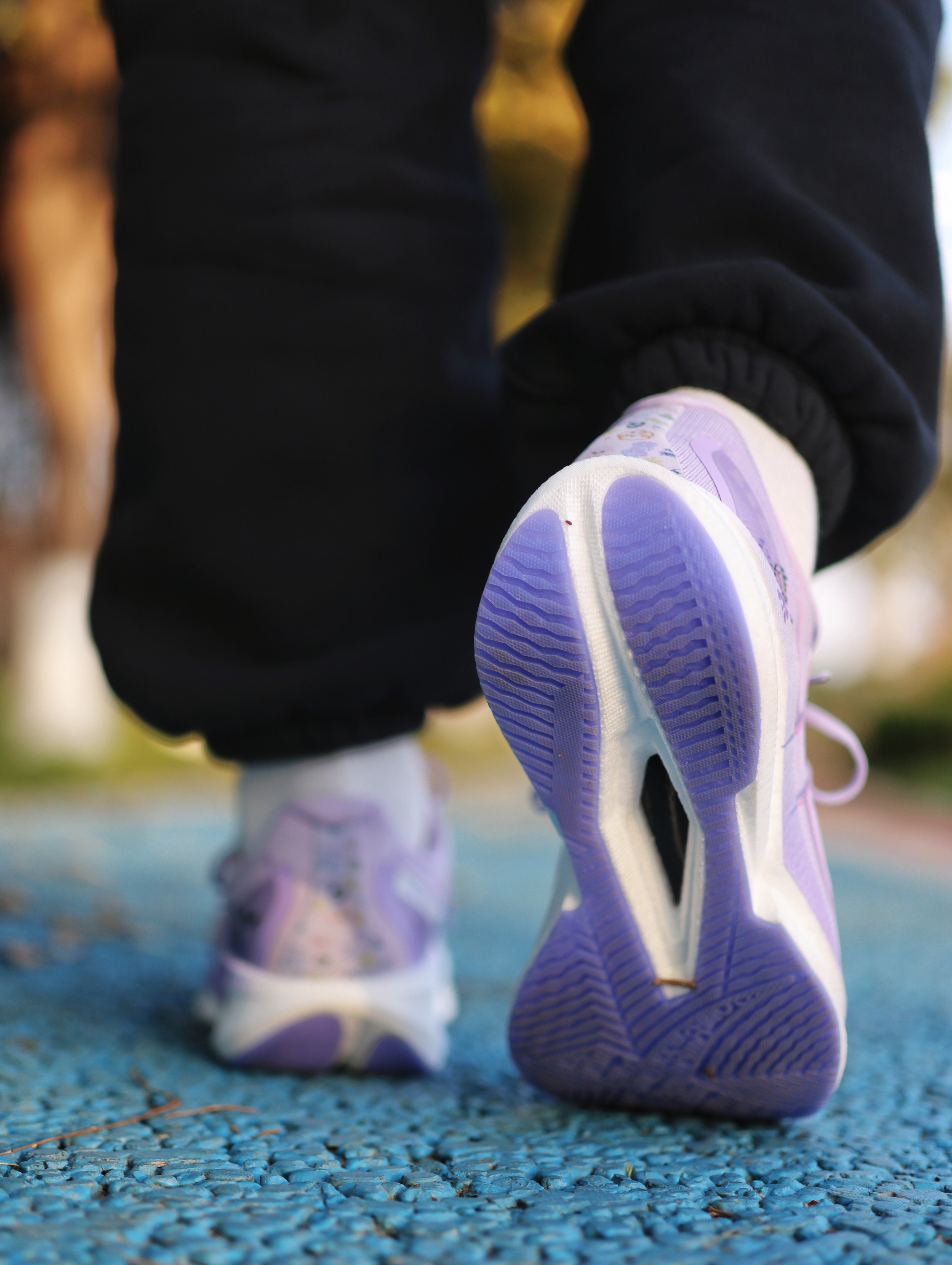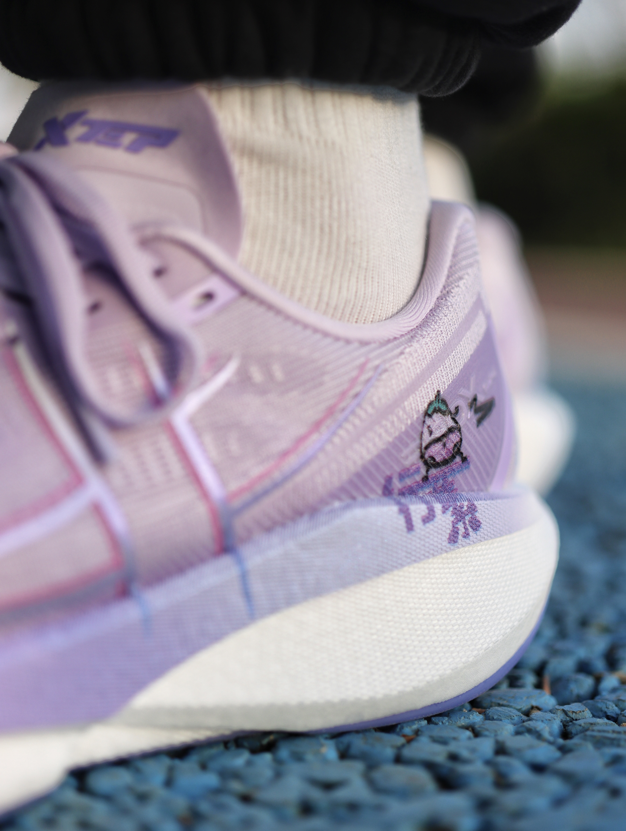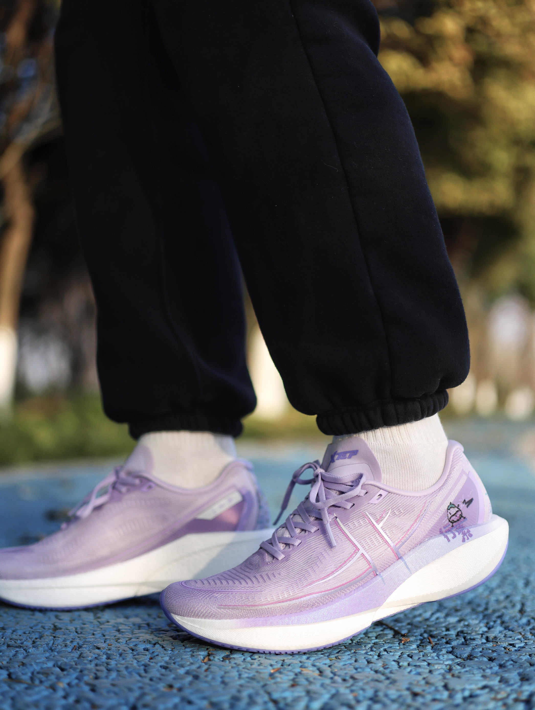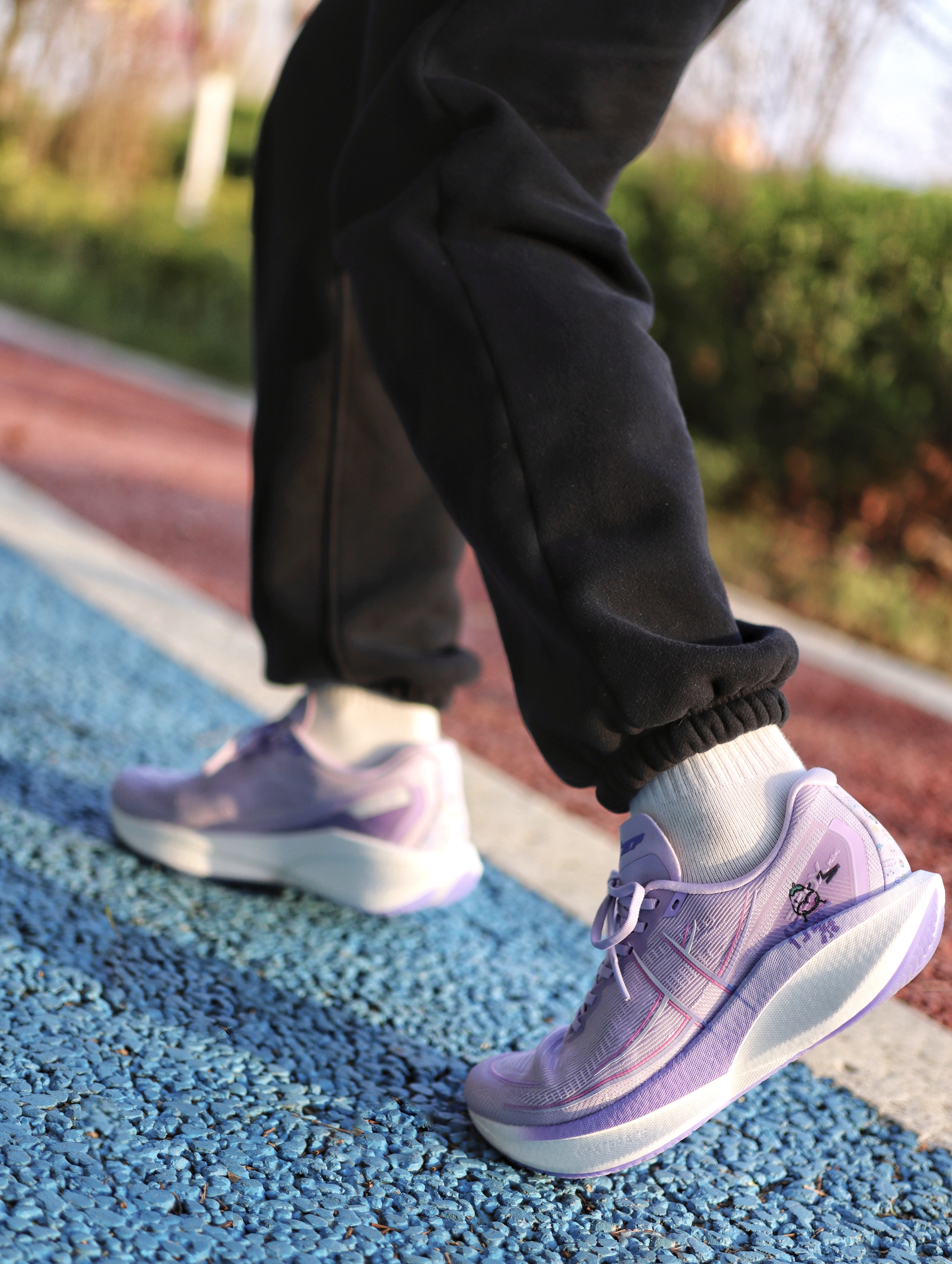 - 今天上脚的是这双360X 2.0 论玩配色步子是真的有点东西,这次首发配色有男款和女款,女款有一个茄子的装饰更卡哇伊一些。 - 作为一双定位体考体测的鞋款,不得不说T400异构碳板在足弓位置加上了加强筋的设计,上脚之后静态感还是很平稳,跑动起来助推感还不错,对于平常没有驾驭过碳板跑鞋的学生党,想在体考体测突破一下的可以去选择。 - 鞋子鞋垫以及后跟都有着寓意不错的谐音梗,“紫定行”,体考体...