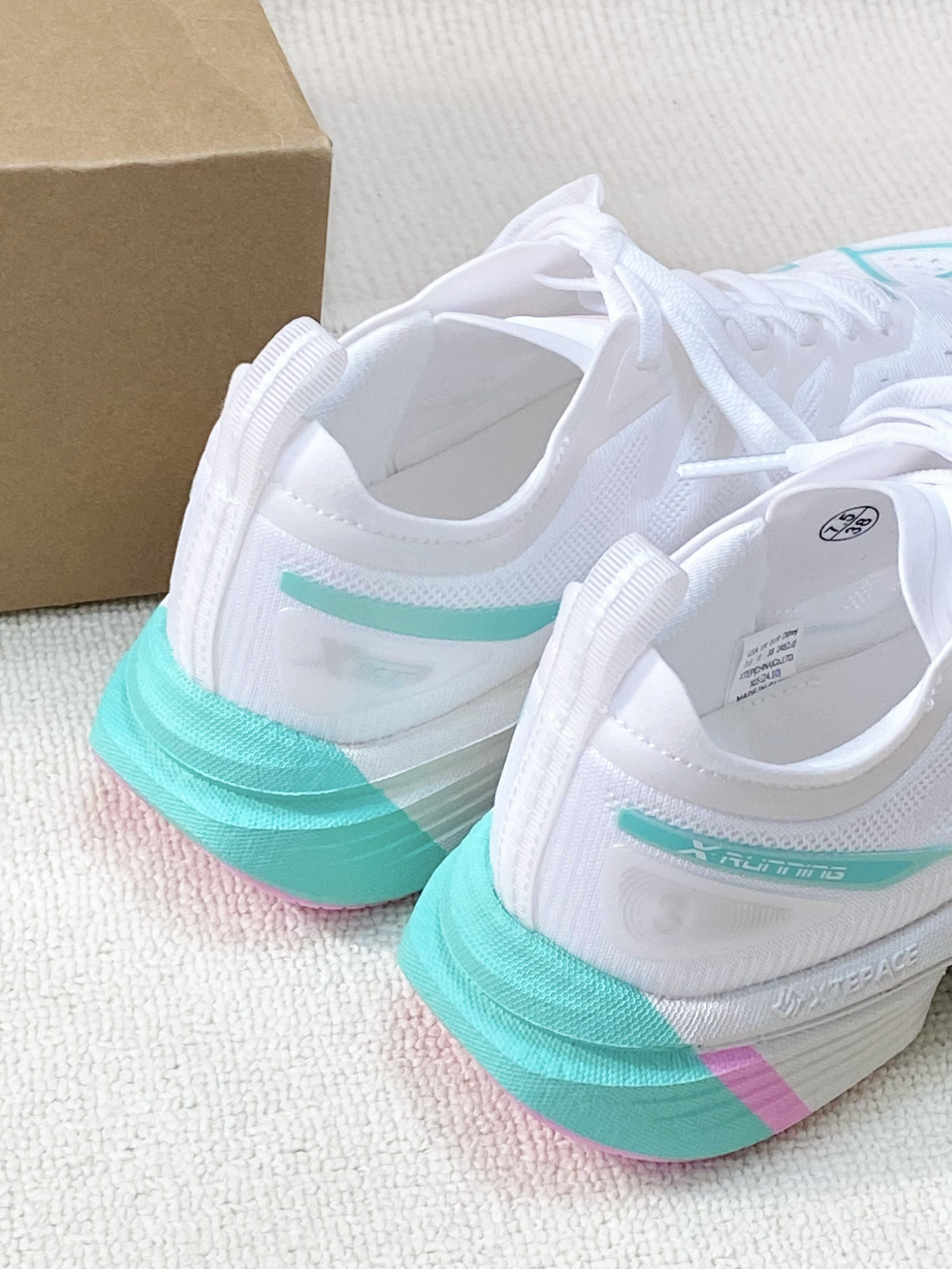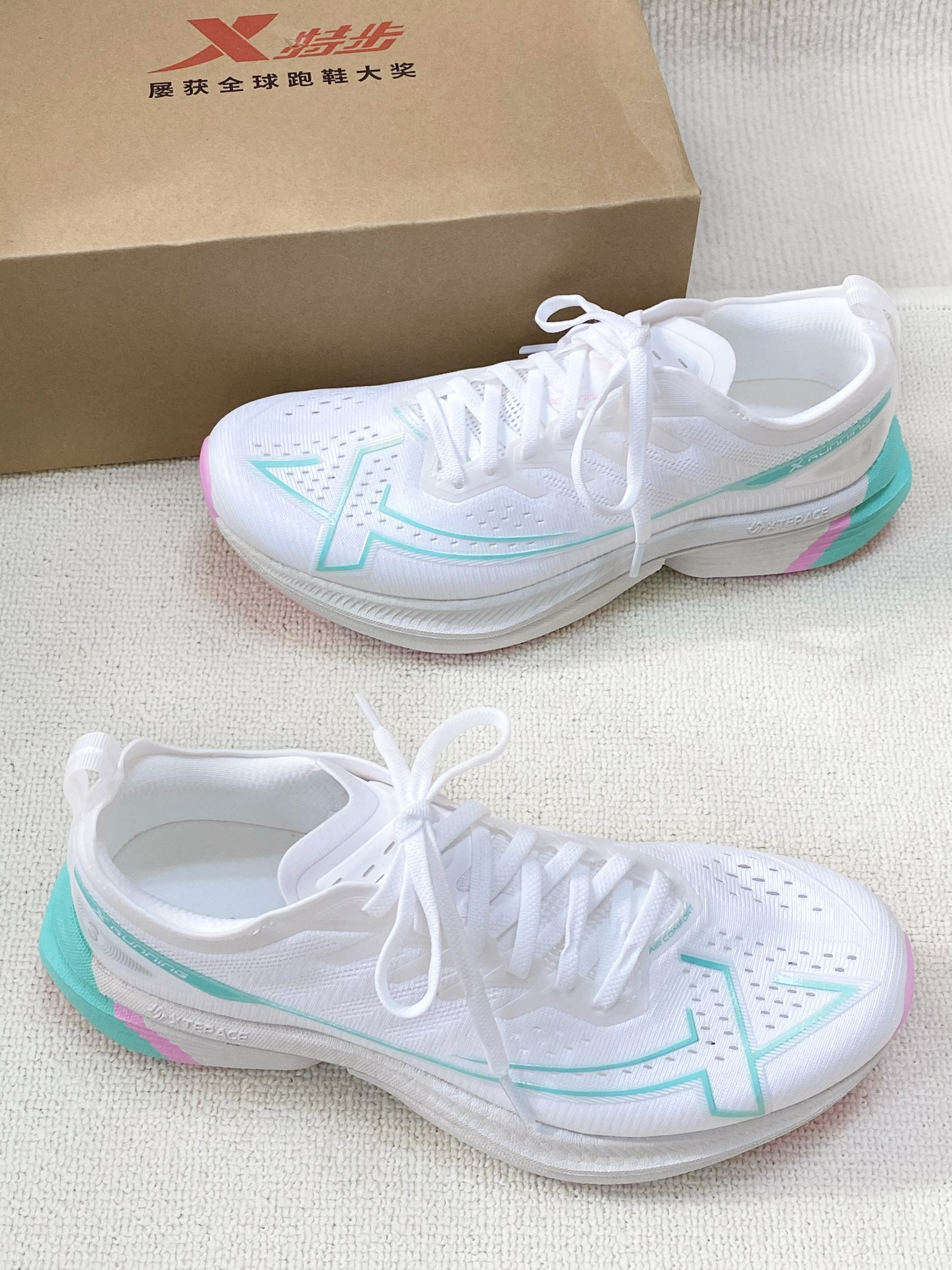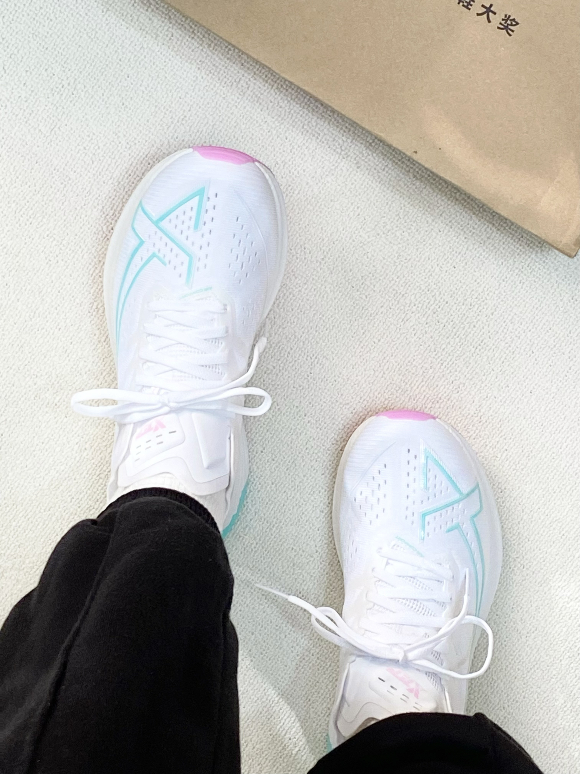 不得不说 特步太会调色了🎨 这双一体成型3代真的很适合春日穿诶!! 鞋底粉粉嫩嫩的 搭配绿色也不违和🍃 颜值真的很高 而且马拉松级别的大底很耐跑 内置三叉异构尼龙板也是给到满满的推进感 而且中底是一体成型工艺的,抗撕裂还不掉渣 不愧是耐力超跑, 对长期主义的跑步爱好者也很适合!🏃🏻♀ size我觉得可以按平常运动鞋选 不偏~ 唤醒多巴胺 尊嘟好喜欢^ ^🌸