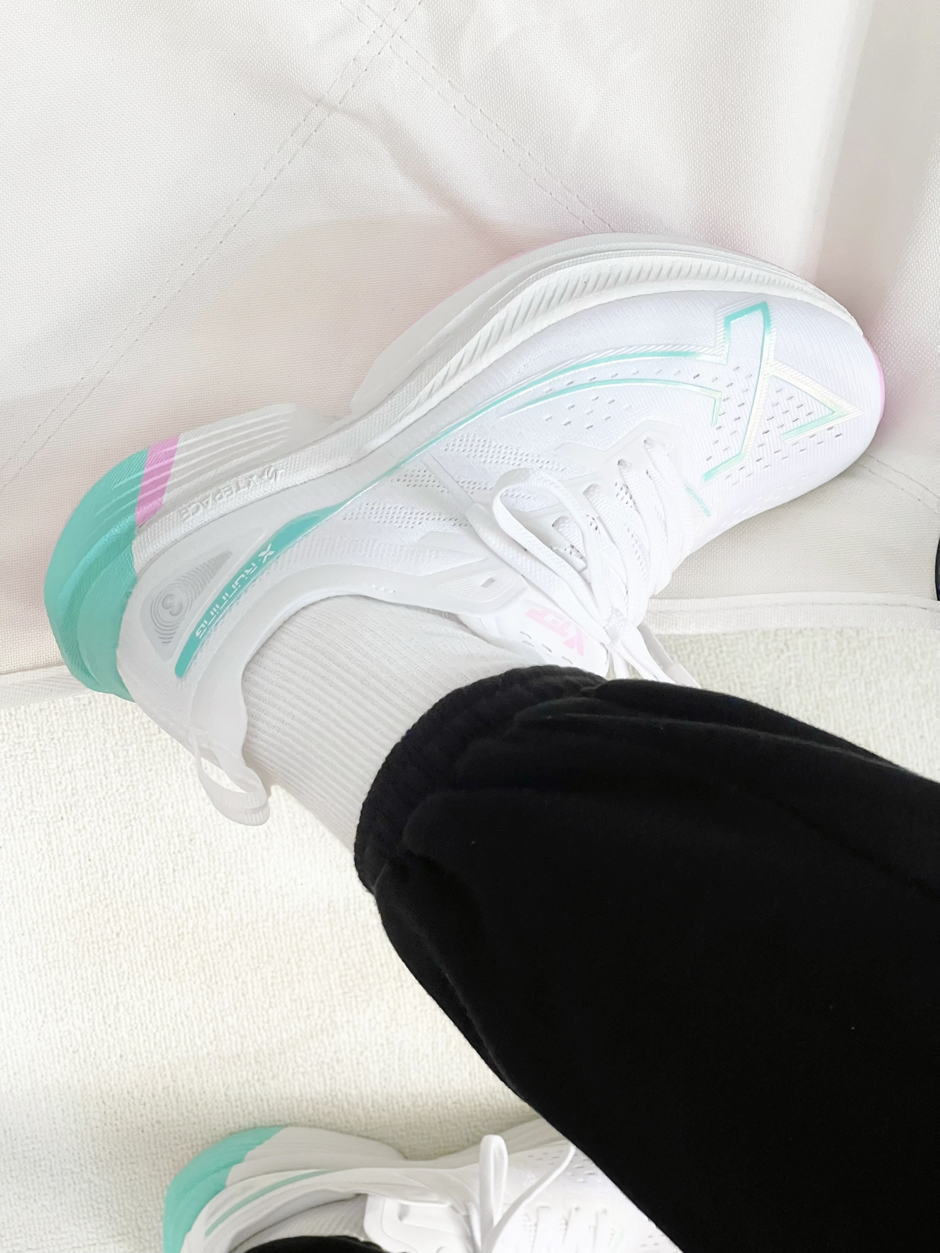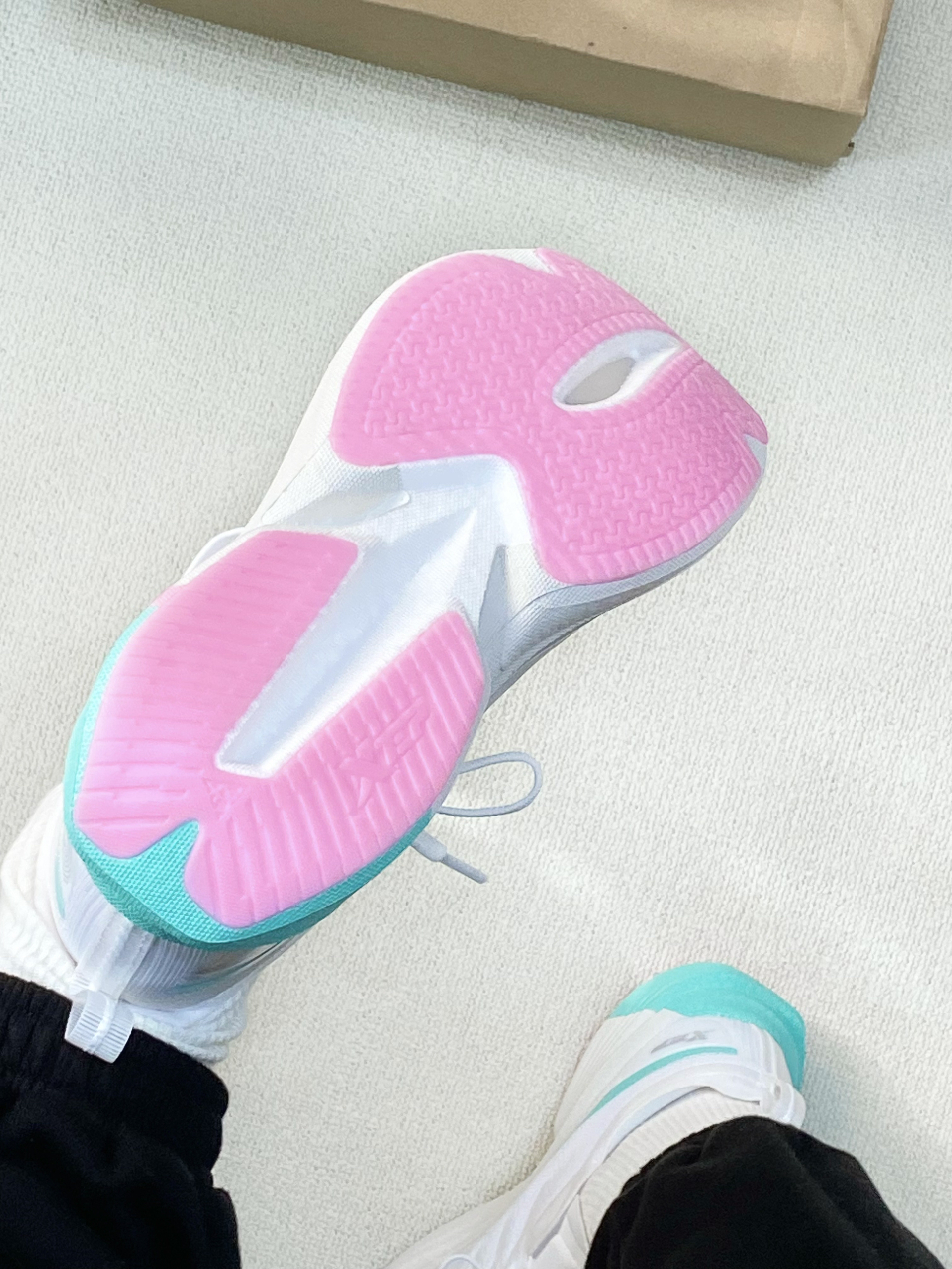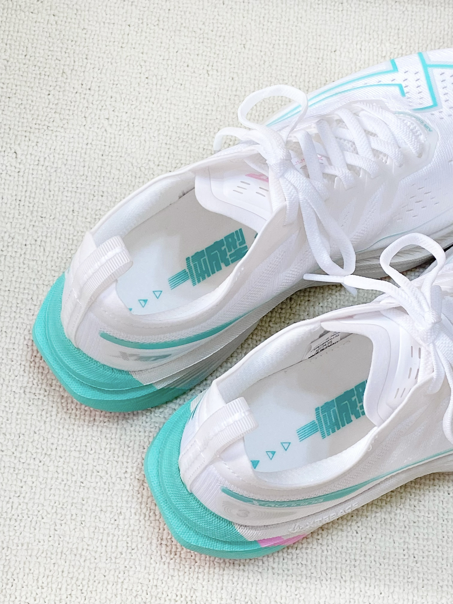 不得不说 特步太会调色了🎨 这双一体成型3代真的很适合春日穿诶!! 鞋底粉粉嫩嫩的 搭配绿色也不违和🍃 颜值真的很高 而且马拉松级别的大底很耐跑 内置三叉异构尼龙板也是给到满满的推进感 而且中底是一体成型工艺的,抗撕裂还不掉渣 不愧是耐力超跑, 对长期主义的跑步爱好者也很适合!🏃🏻♀ size我觉得可以按平常运动鞋选 不偏~ 唤醒多巴胺 尊嘟好喜欢^ ^🌸
