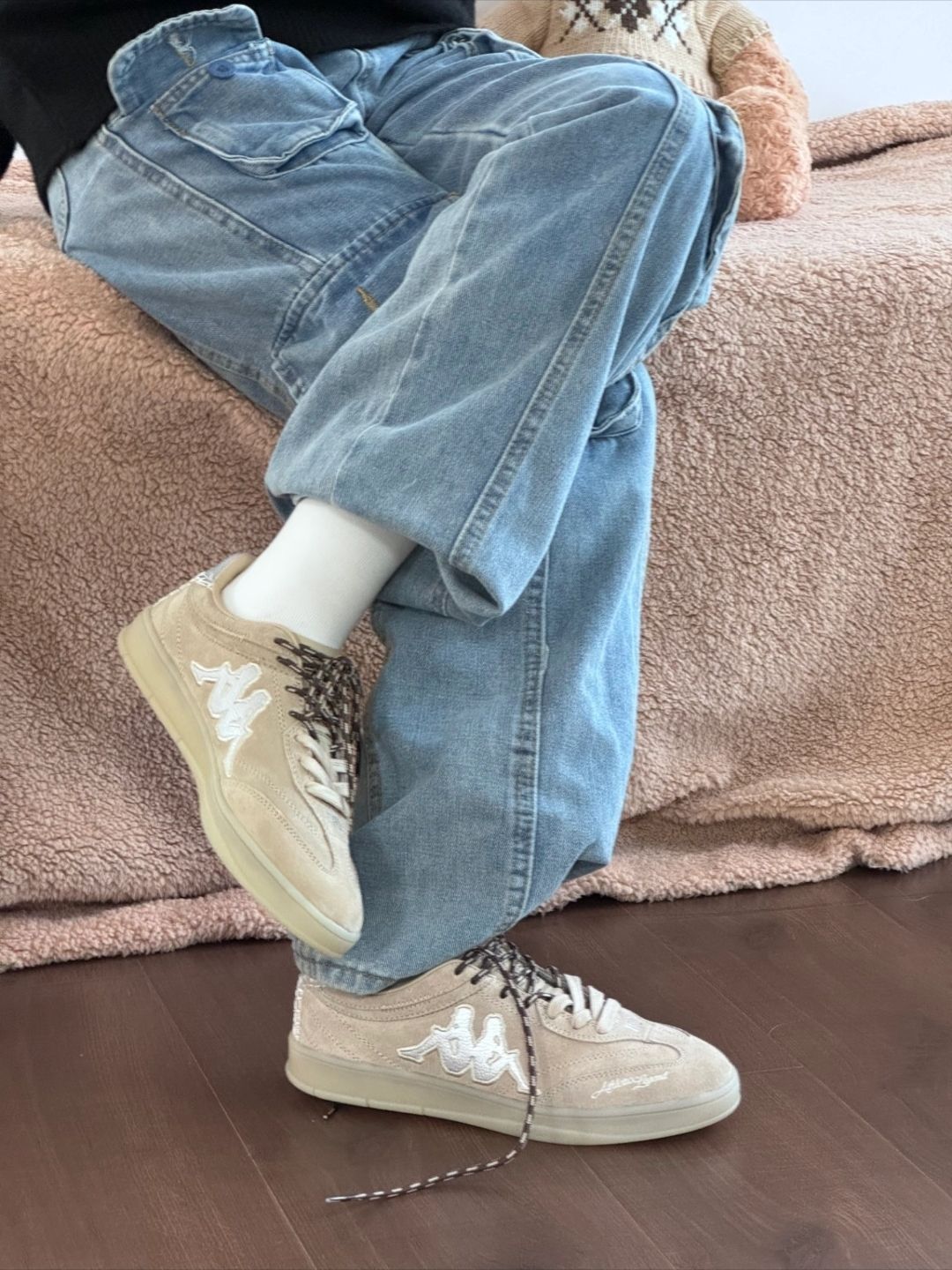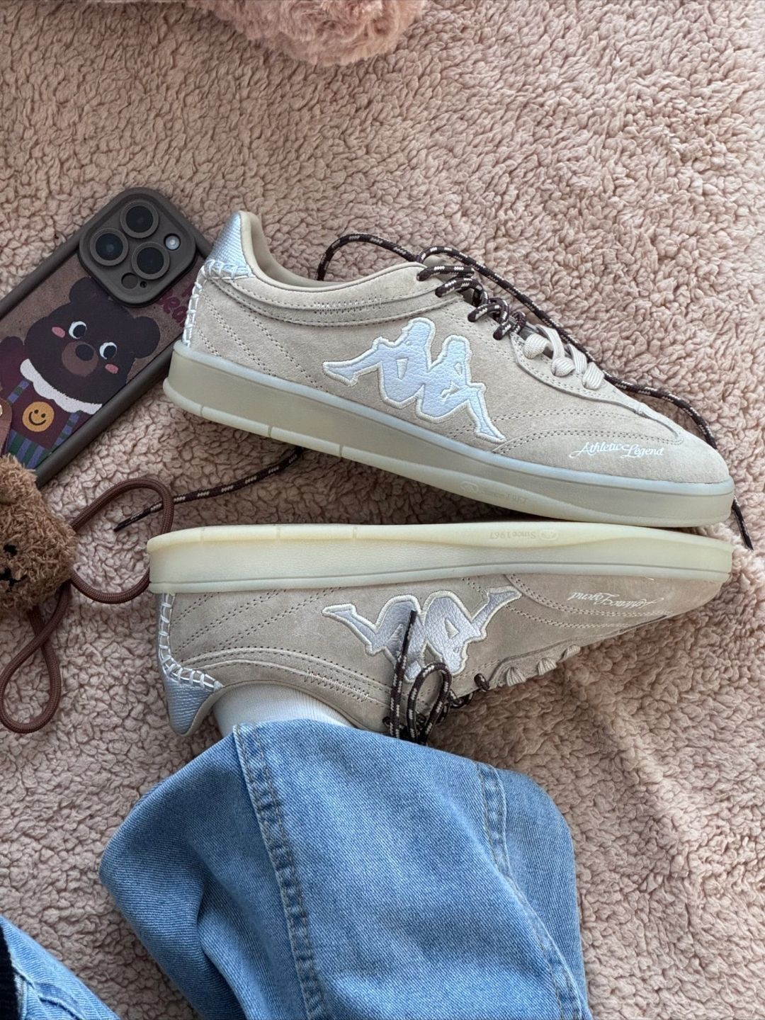 在复古运动风持续升温的当下,Kappa卡帕以标志性的「背靠背」品牌基因,赋予Tifo系列板鞋独特的意式美学与实用主义内核。这双米色低帮板鞋以简约设计为基底,融合防滑耐磨、轻量化与男女同款等特性,精准击中当代年轻人对“经典复刻+日常实用”的双重诉求。以下从设计语言、穿着体感、场景适配等维度,深度解析其真实穿着体验。