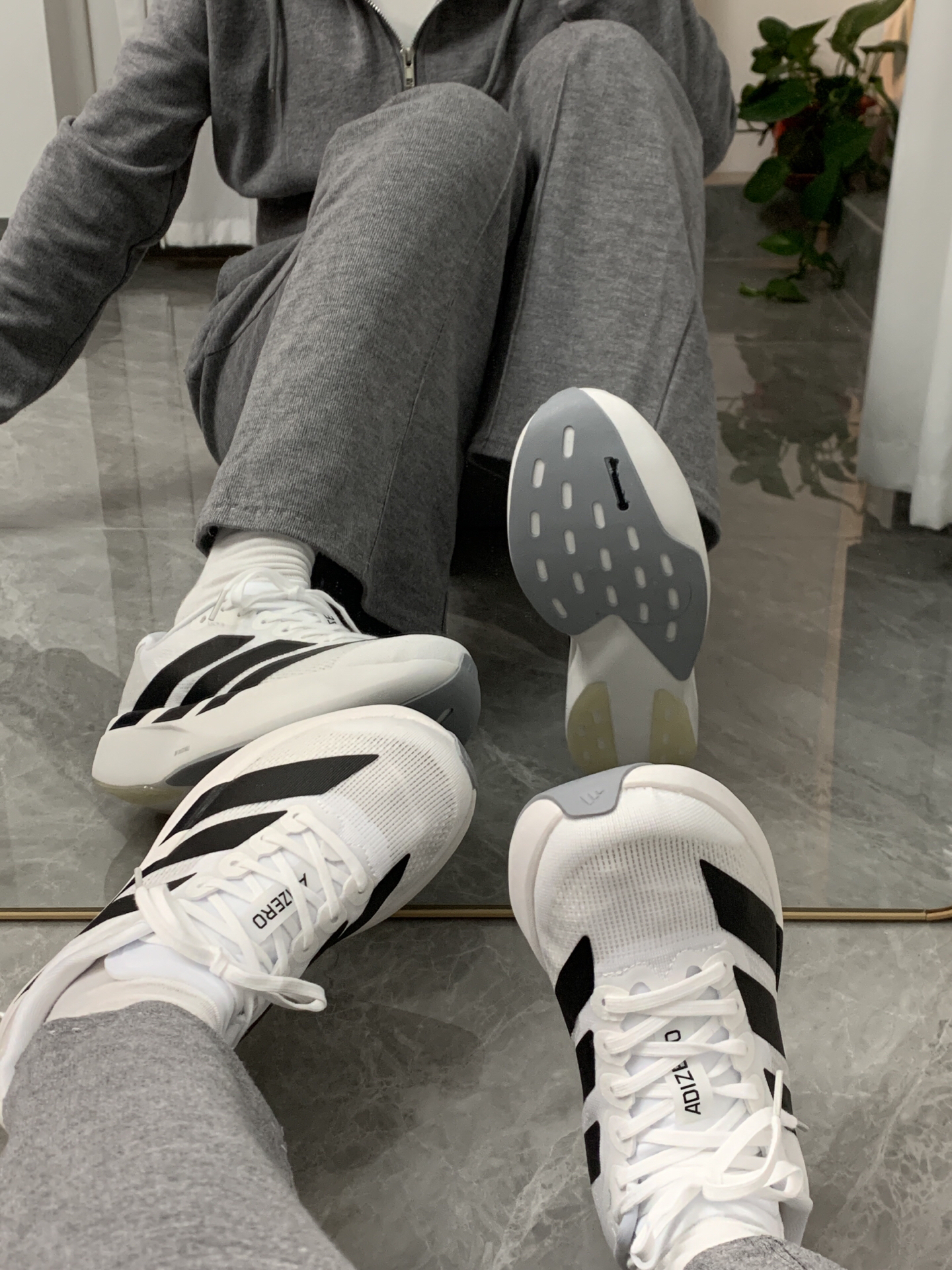 新入坑的厚底阿迪跑鞋👟 真的挺好看的的鞋鞋🦆 配色很干净利落 属于越👀越耐看 上脚感觉就跟踩在松软的海滩一样 在运动的同时又给我拉长身高😁 尺码是正码的 喜欢跑步可以参考叭 图源网络,侵删