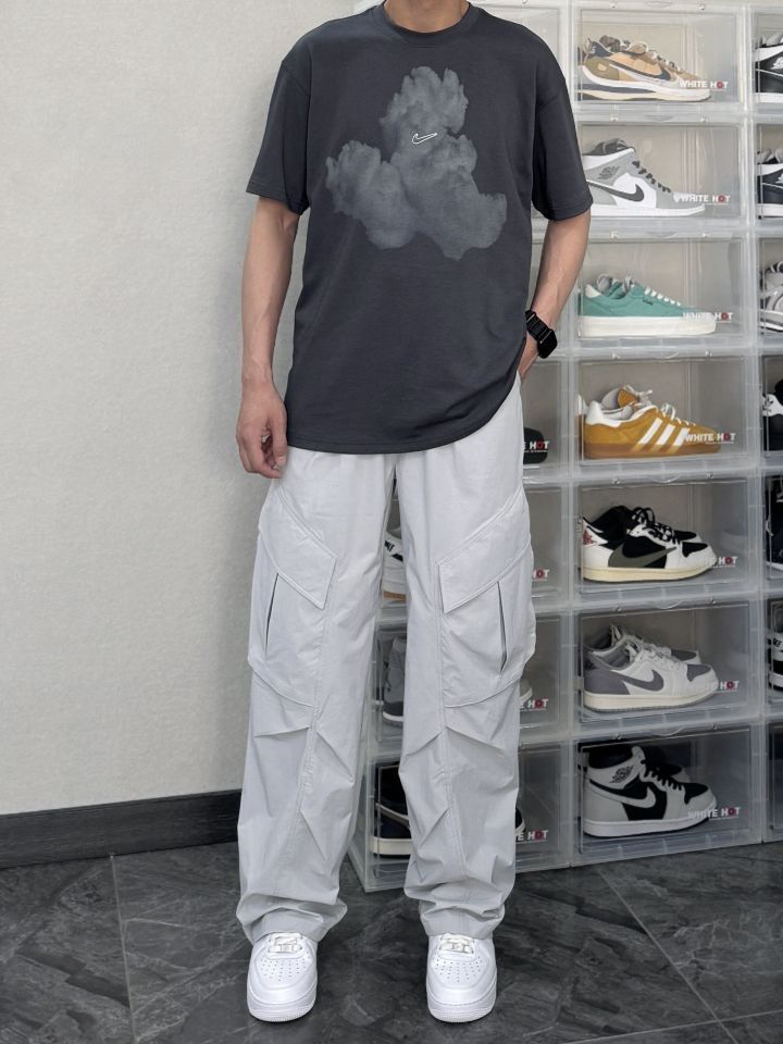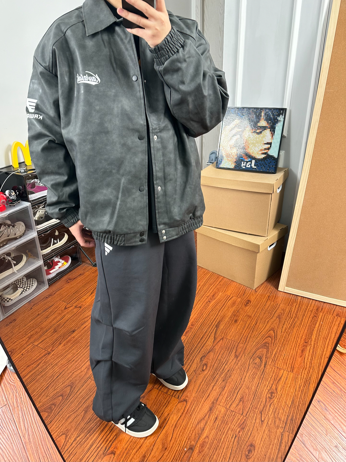 今日穿搭分享 上身灰色🤍外套来自 Kawasaki川崎 麂皮面料非常柔软舒适 很有质感 很高级的深灰色配色 搭配一些简约小标logo和翻领设计 很百搭 休闲感满满👍 选择一条同色系工装裤 选择一双黑白色系滑板鞋 这套高级灰穿搭适配度✌️绝了 (图源网络侵删)