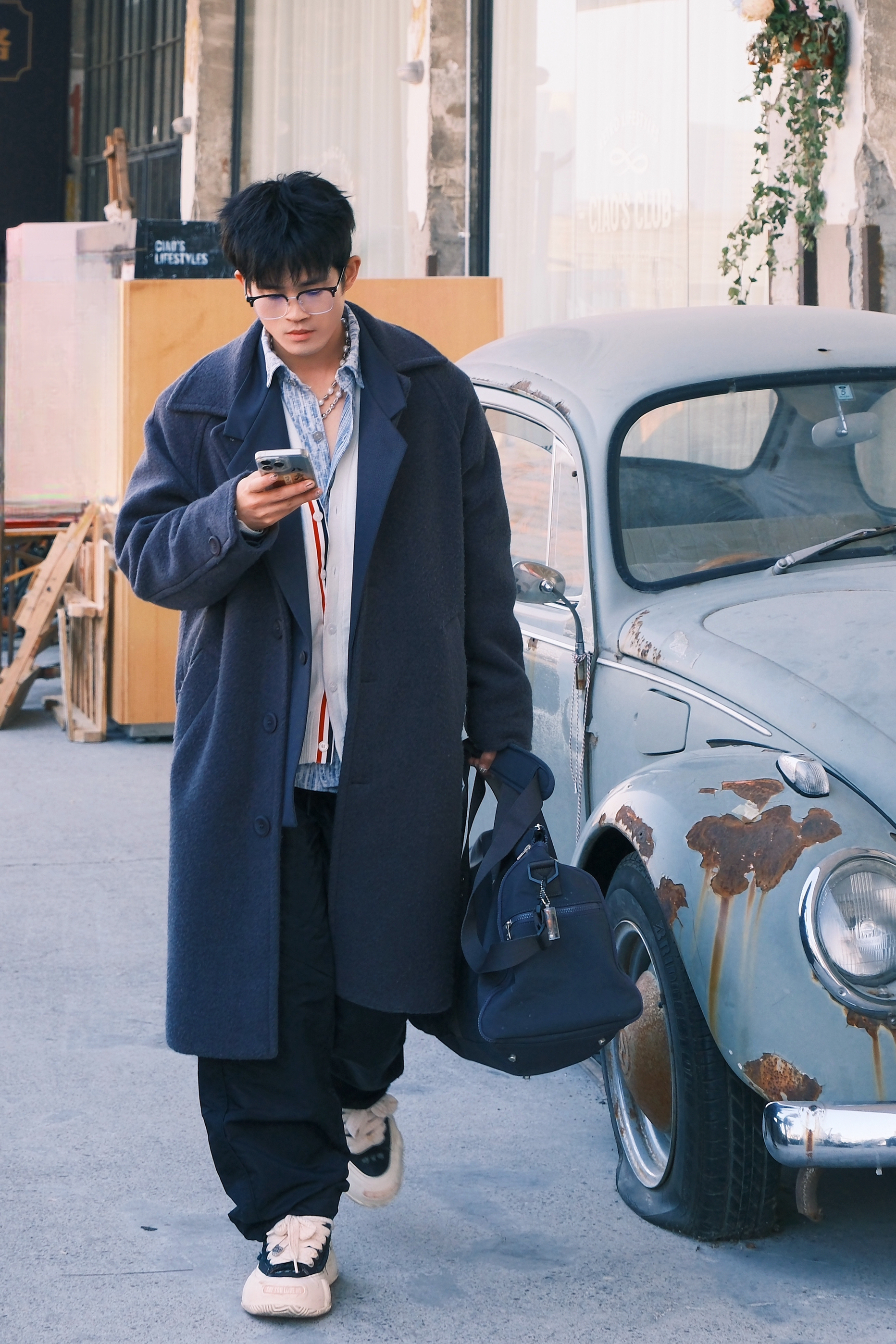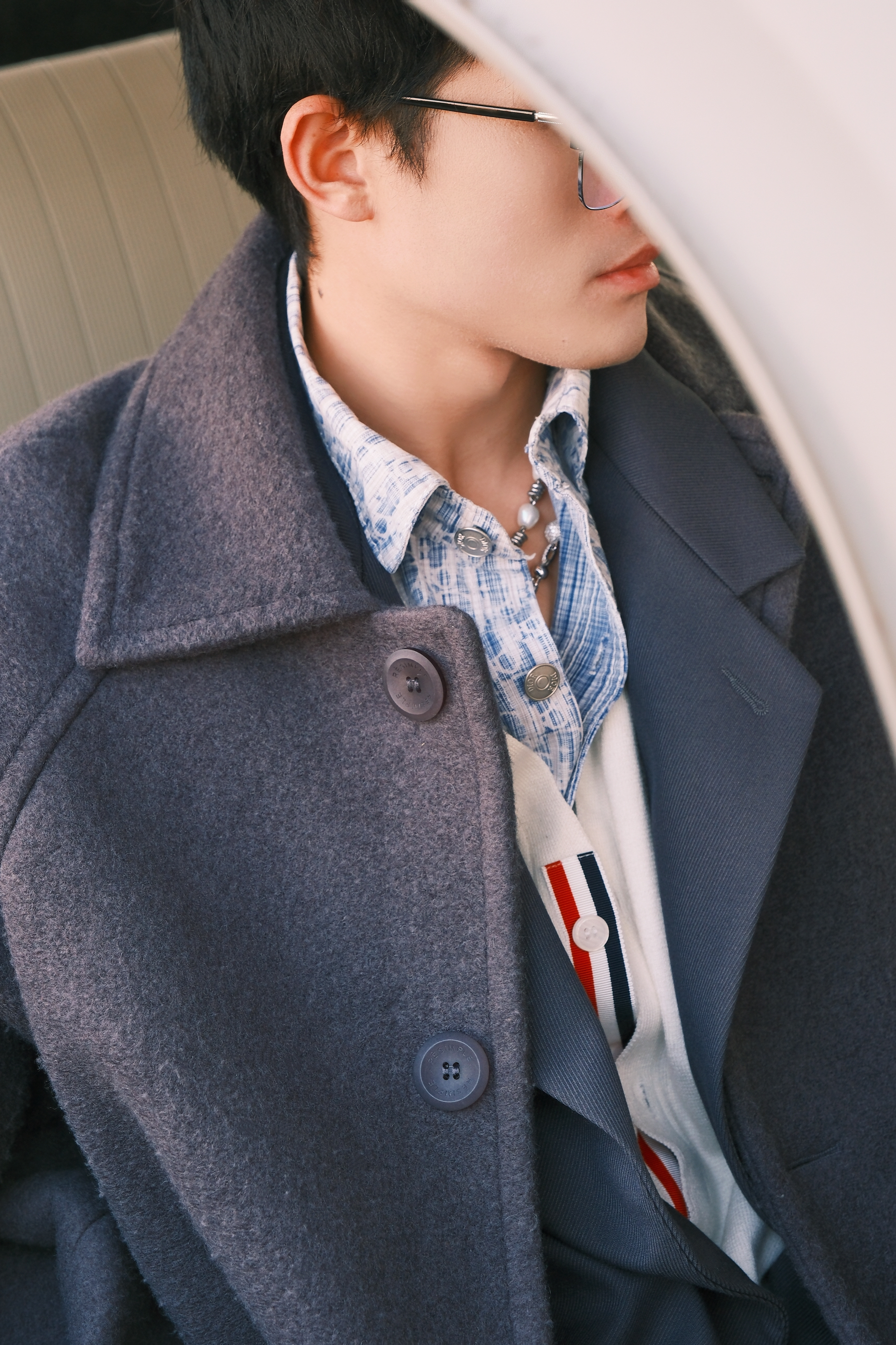 早八人的穿搭指南可以看这里 - 叠穿是本人对上班穿搭最后的尊重 可以选这种饱和度比较低的配色叠穿 衬衫+V领毛衣+西装外套 搭个保暖毛呢大衣看起来就比较有层次 整个人的线条感也会被拉长 - 出门玩可以叠戴这种拼接项链增加时尚氛围 再带上我的超能装大包 出门拍照去喽~