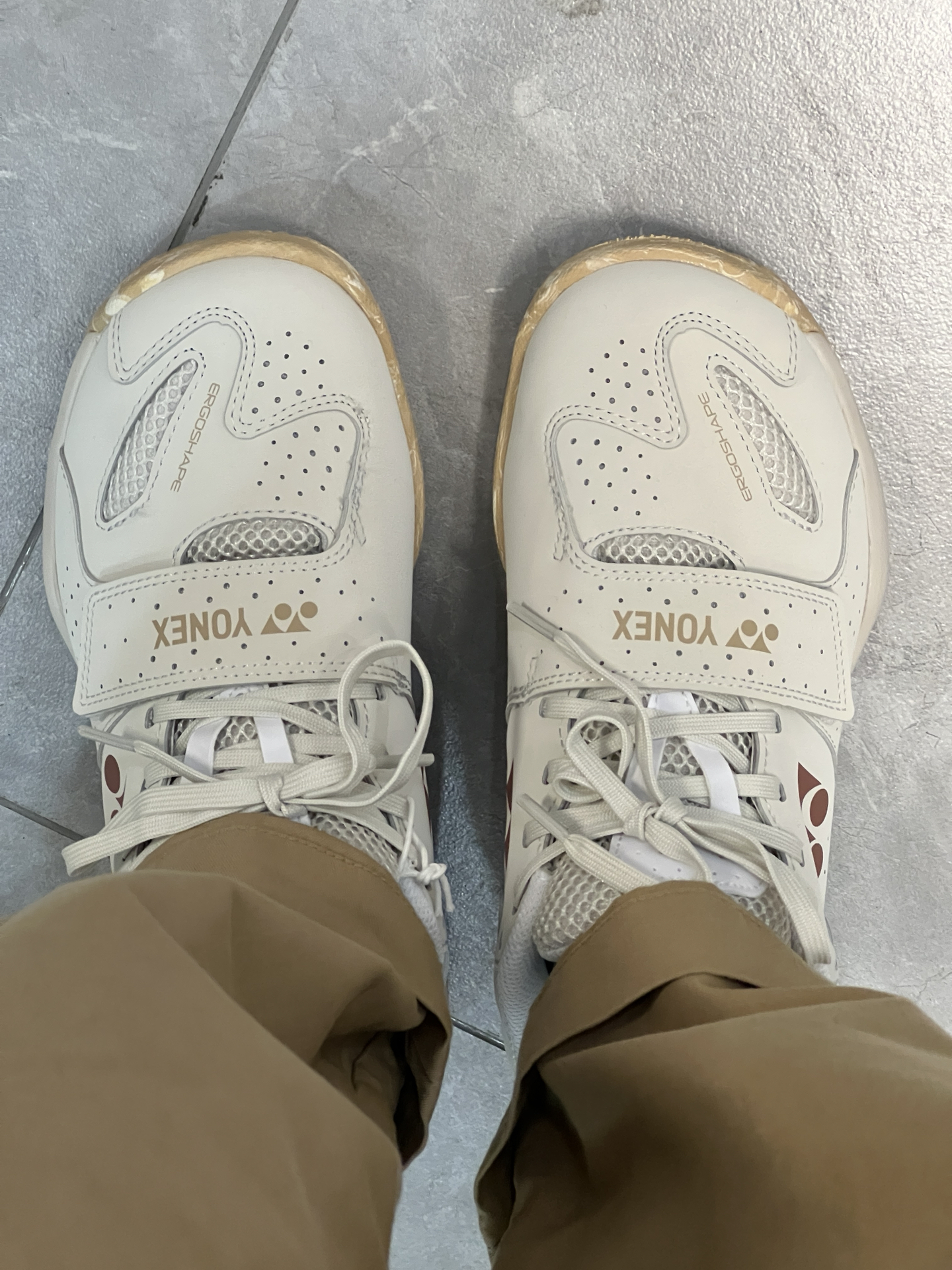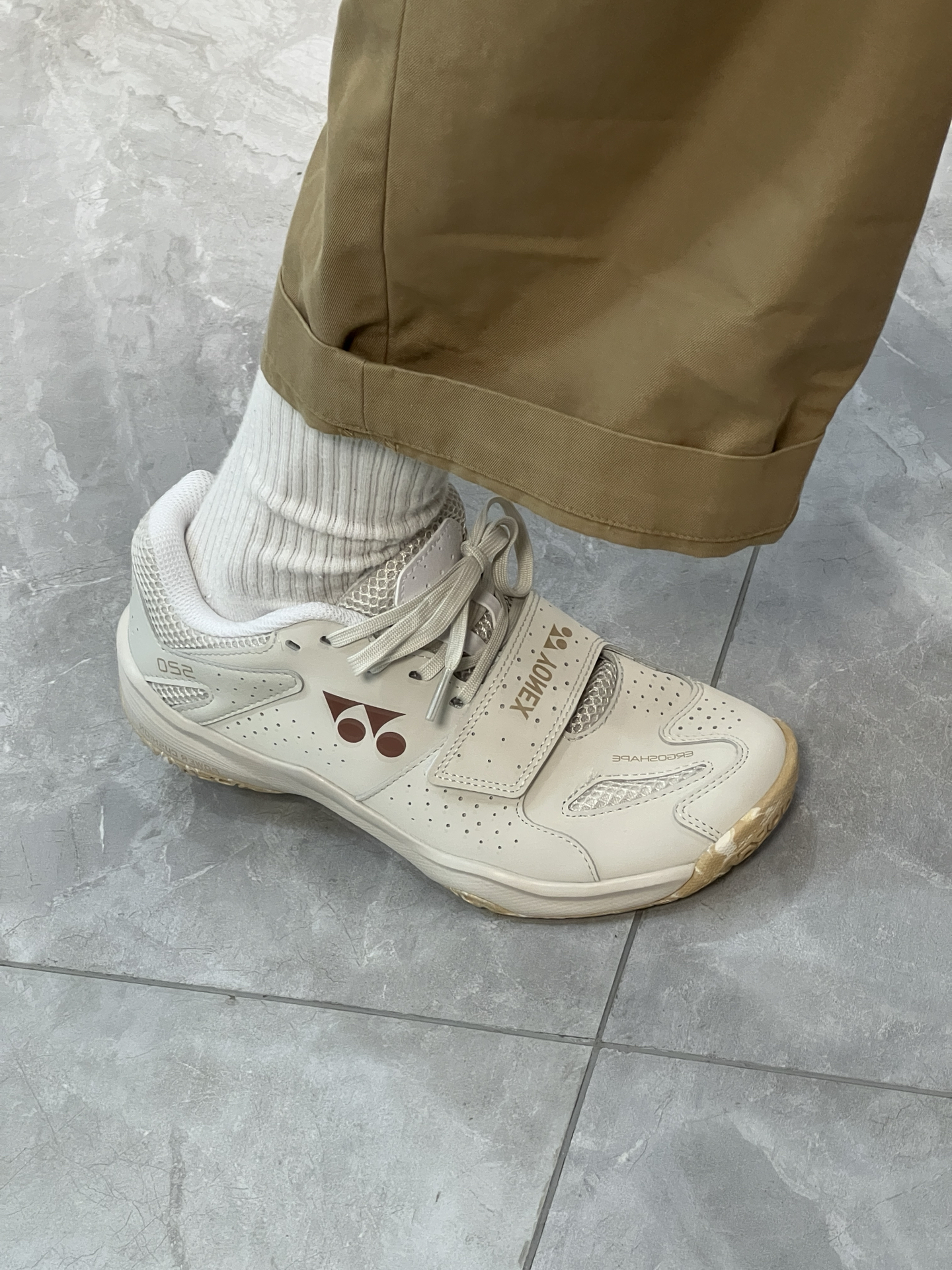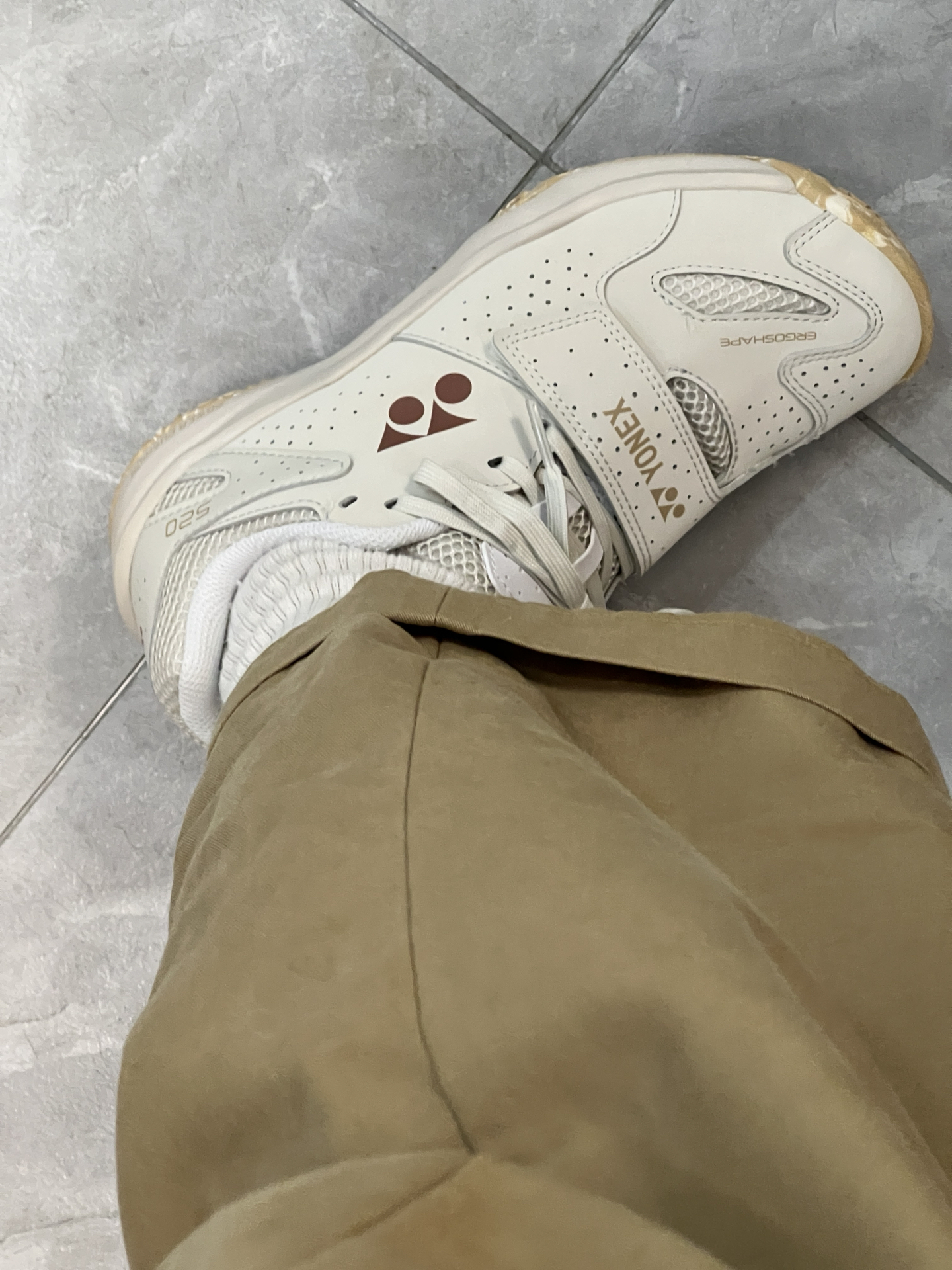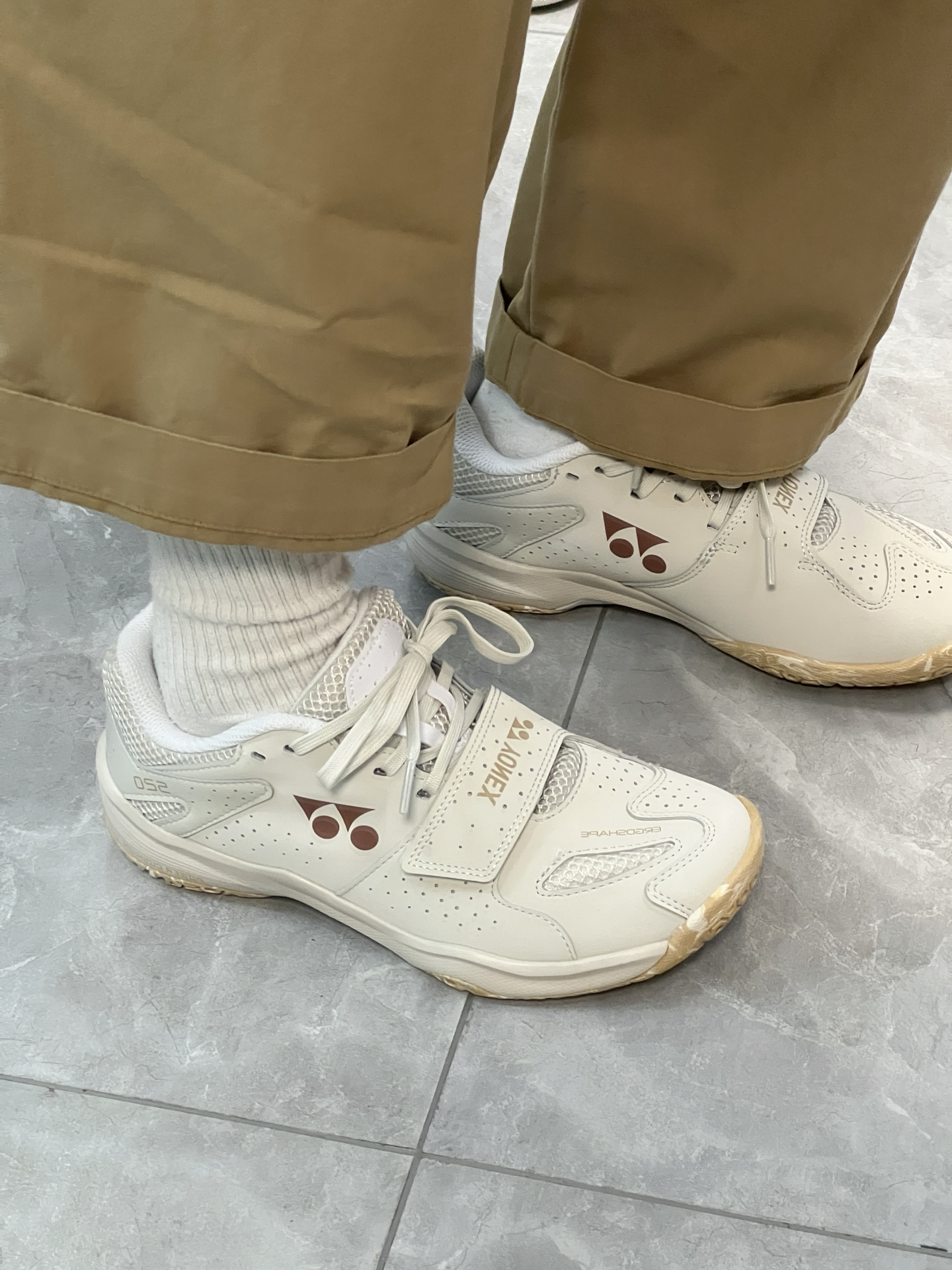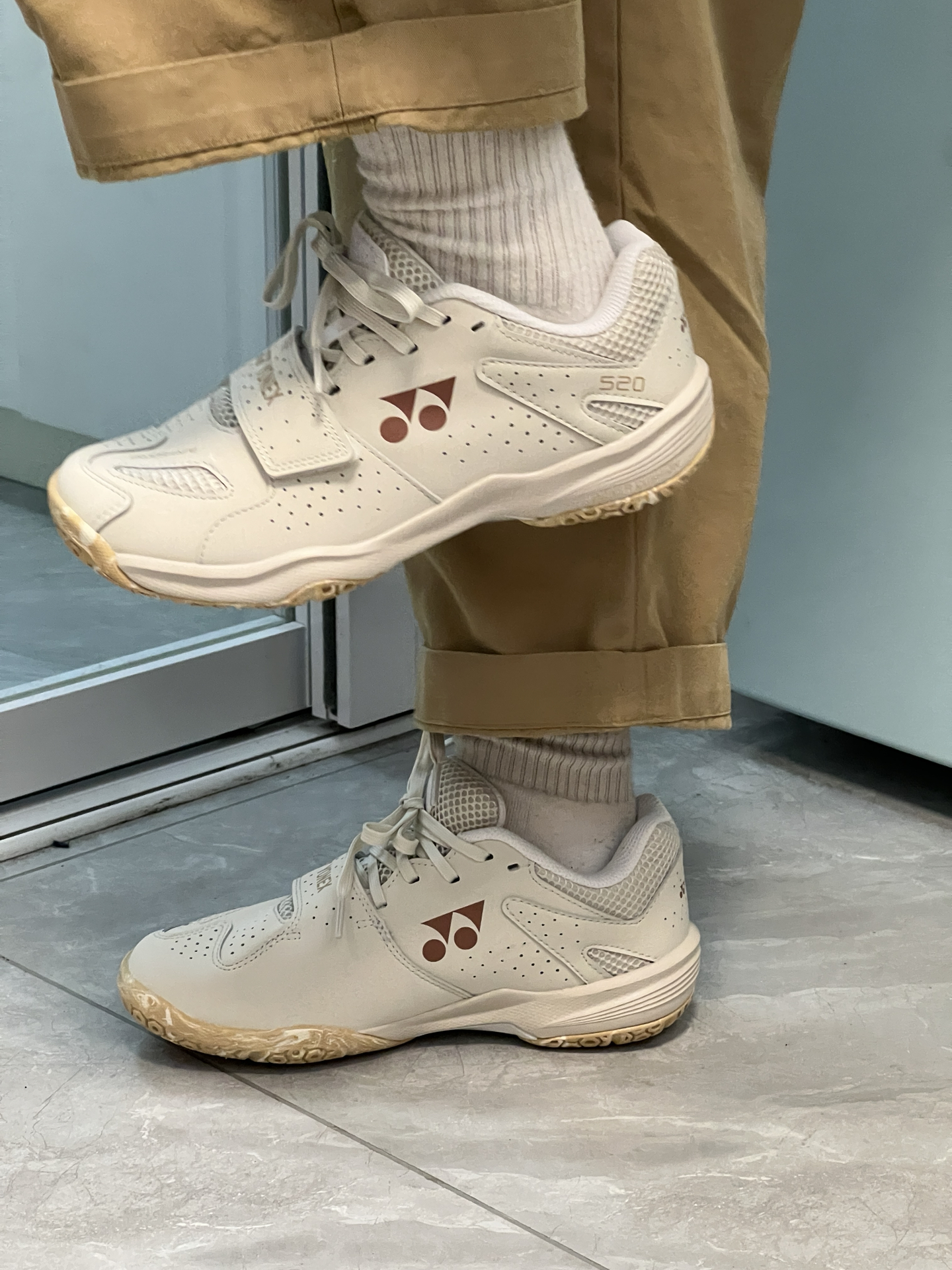 真的帅啊哈!很复古的一双鞋鞋! 配色巴适!很好穿! 主要是鞋子的质感也不错呀! 简约大气的配色就很绝 除了打球穿平时搭配也可以穿到 鞋子的包裹性强 脚底相对于试过的其他羽毛球鞋软但比一般运动鞋底稍硬 穿久了适应了也还好 比较贴合脚部 包裹性很好!选正码就行
