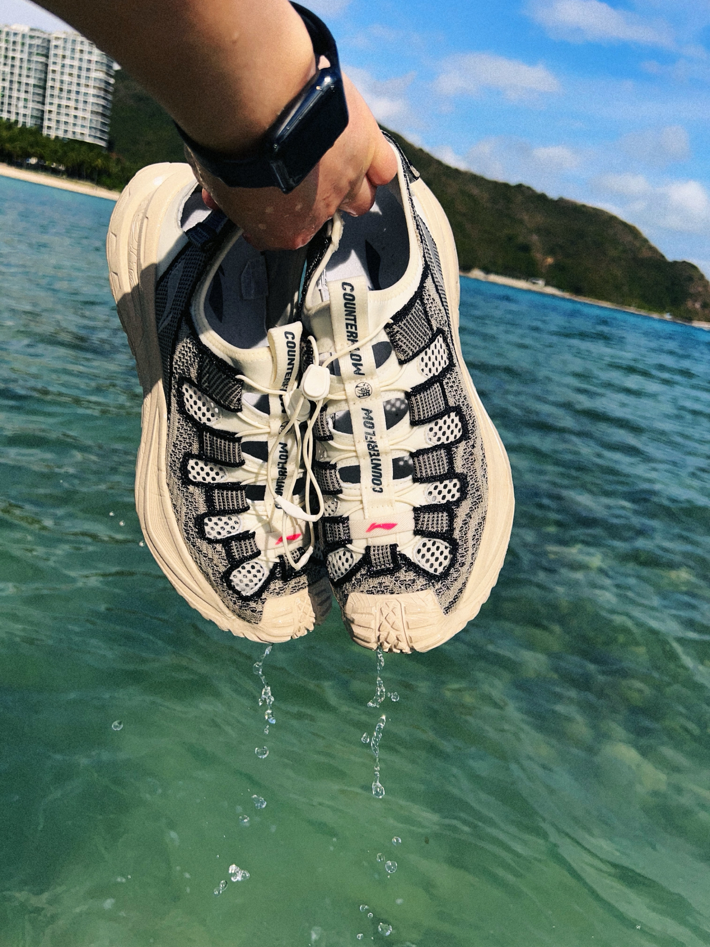 来海边这双鞋太适合啦 飞织鞋面——外速干 SBR潜水服内里——内拒水 加上透气结构和网纱 夏天搭配好看不? 话说你会赤脚穿还是搭配好看的袜子穿呢? 图源网络,侵删!