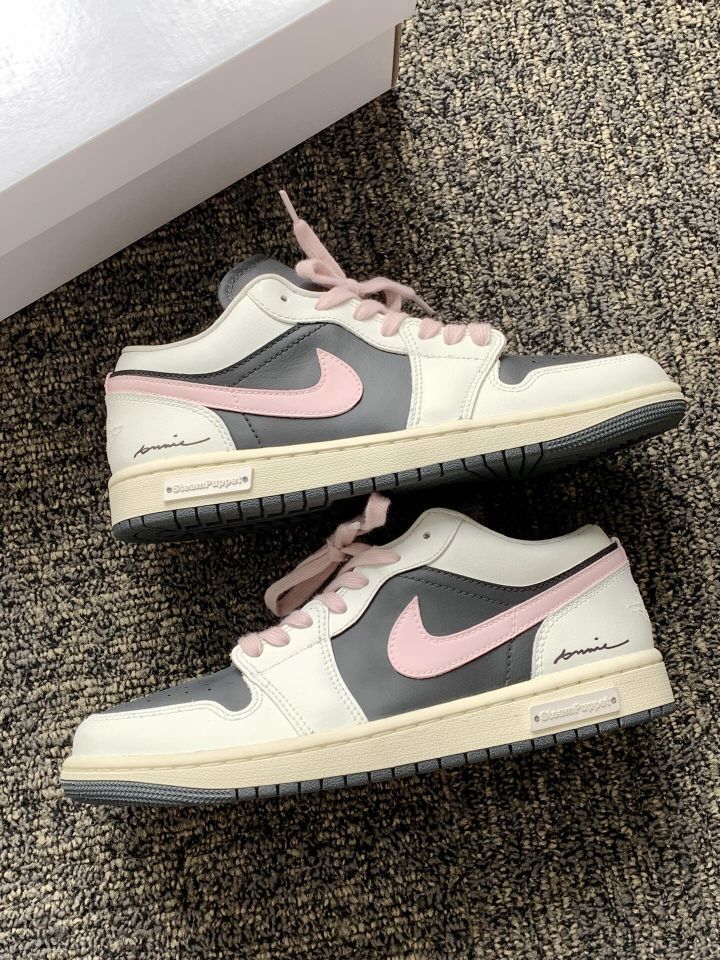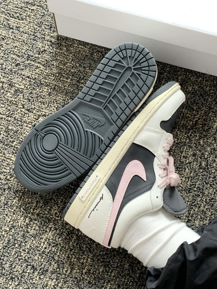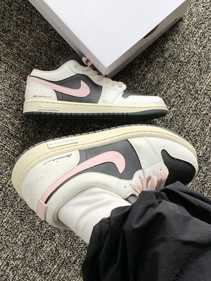 家人们谁懂啊!发现一双夏日甜酷神鞋 灰粉白配色绝了!又甜又拽的氛围直接拉满 AJ经典版型+粉鞋带设计,上脚秒变甜酷女孩 无论是搭短裙还是阔腿裤,都超有范儿~ 这个夏天,就要做街头最靓的甜酷崽!冲就完事儿~