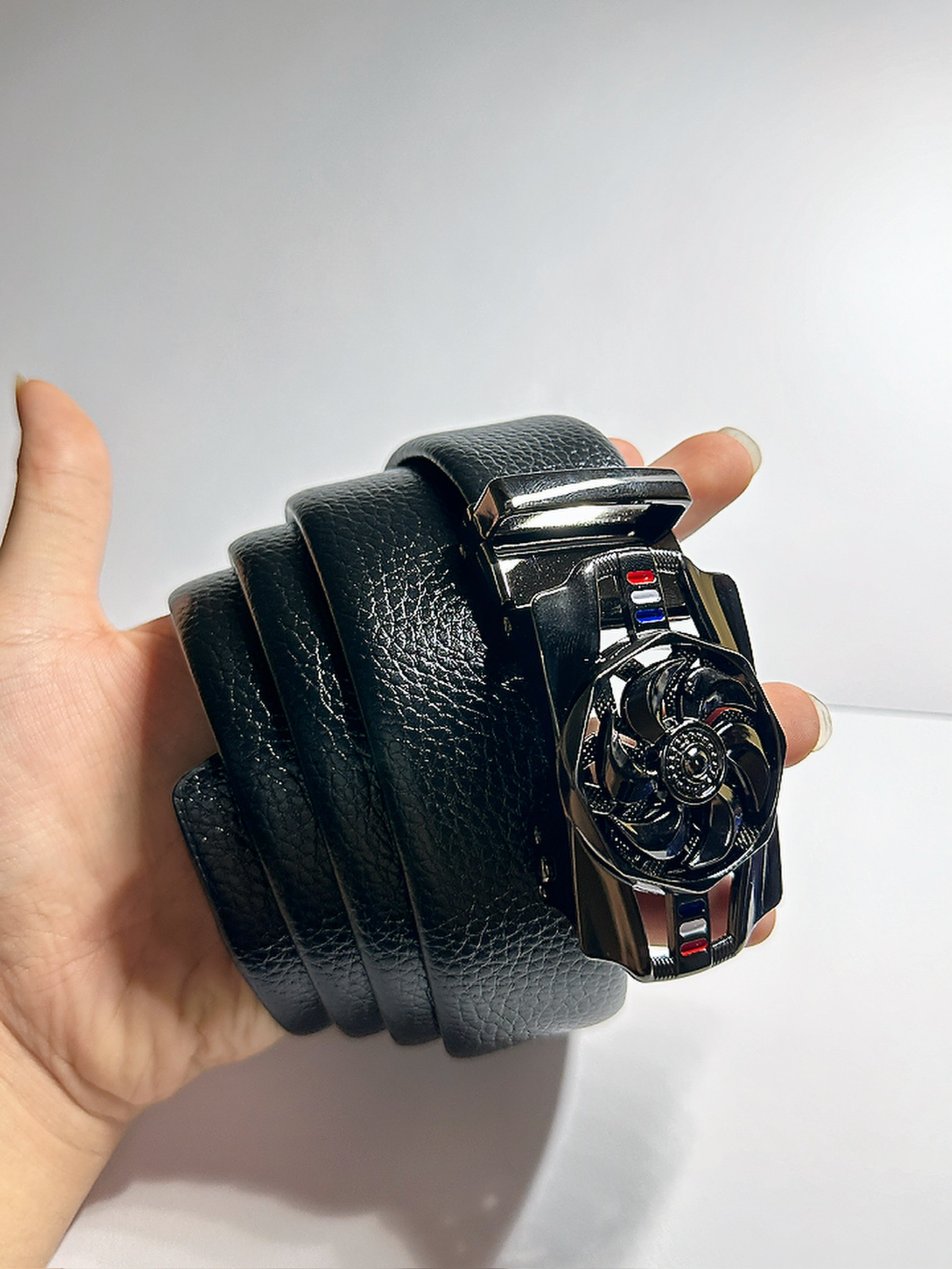 ✨最近入手一款皮带,真的可帅了,我还以为是静止的谁知道这个皮带还可以旋转啊 ✨还是荔枝皮的,质量没得说,很显高级感! ✨皮带是自动扣的还可以调整皮带长度,根据自己的腰围来调节 ✨我是打算买来送爸爸的礼物🎁,爸爸很喜欢,觉得这个皮带可酷了,哈哈哈哈