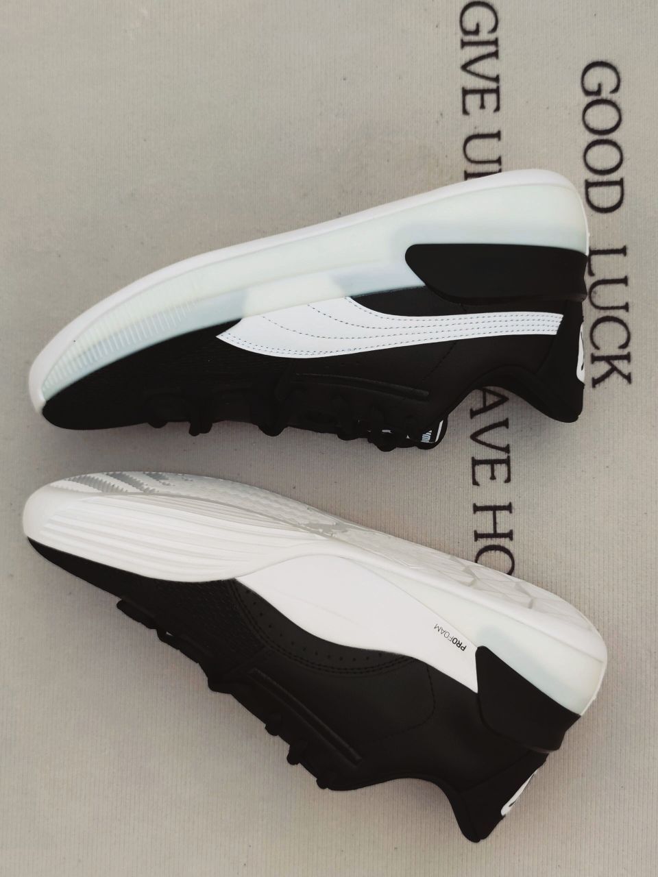 这双PUMA Clyde Hardwood Team篮球鞋简直是球场与街头的双重美学暴击!纯黑鞋身自带高级质感,侧边白色泼墨式品牌标识像划破夜空的闪电,搭配冰裂纹理的透明白色大底,上脚瞬间气场全开。我最爱它鞋面那些暗纹彩蛋——"NEVER GIVE UP"的碎片化设计,每次系紧鞋带时都能感受到藏在细节里的热血态度。 鞋身用了一体式缓震网布,上脚像踩进云朵般包裹贴合,剧烈跑动时脚踝依然稳稳当当。...