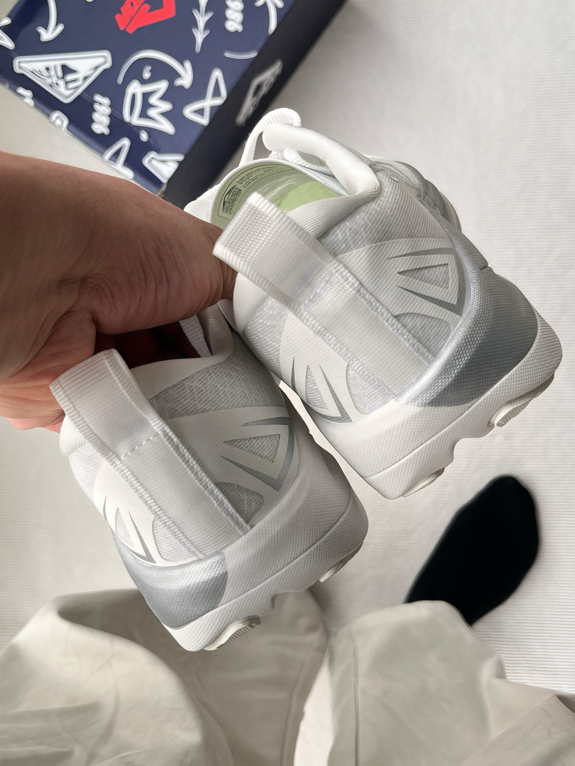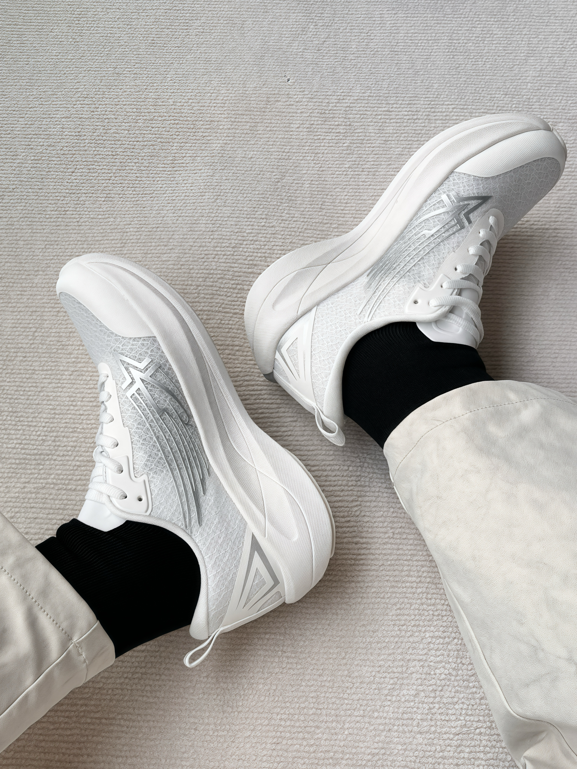 本人173,穿41码贴合脚型。 网面设计超透气, 长时间穿也不闷汗,夏天刚需! 鞋底软弹,走路带缓震感, 跑步时抓地力稳,日常通勤、运动都适配。 银白配色简洁大方,搭运动裤清爽, 配休闲装也毫无违和感。 鞋身包裹性好,不挤脚,细节做工到位。 春天这个阳光明媚的季节出门穿它, 简直不要太舒服