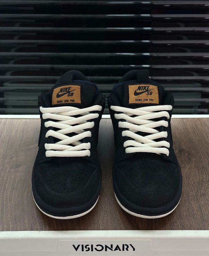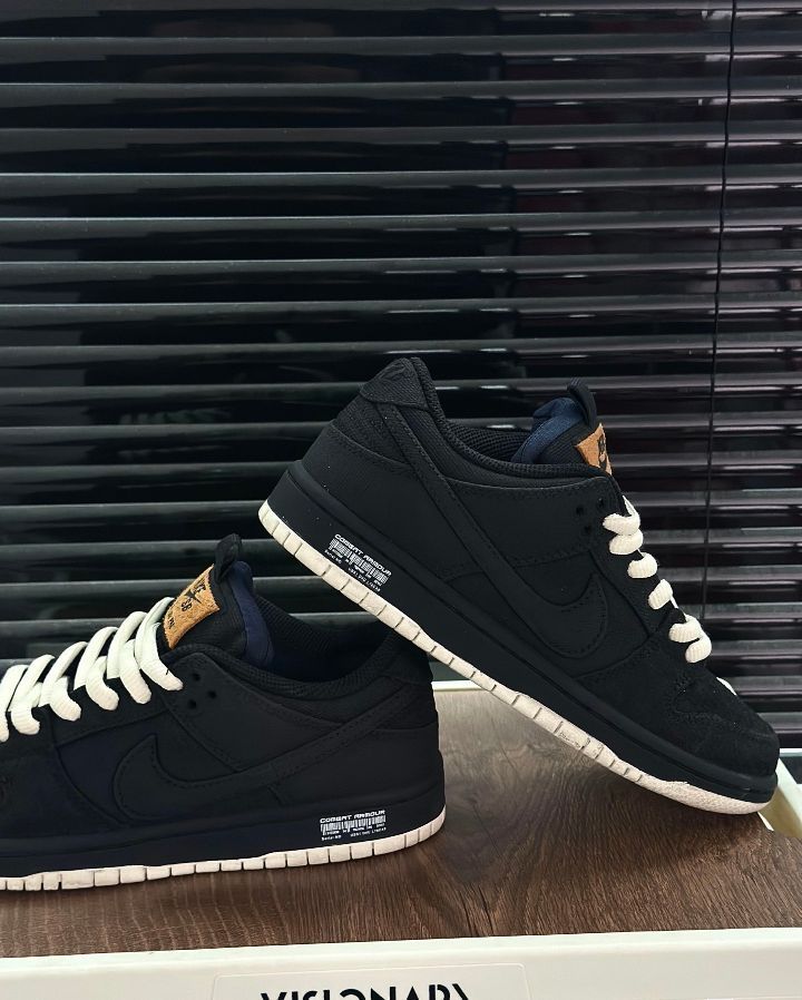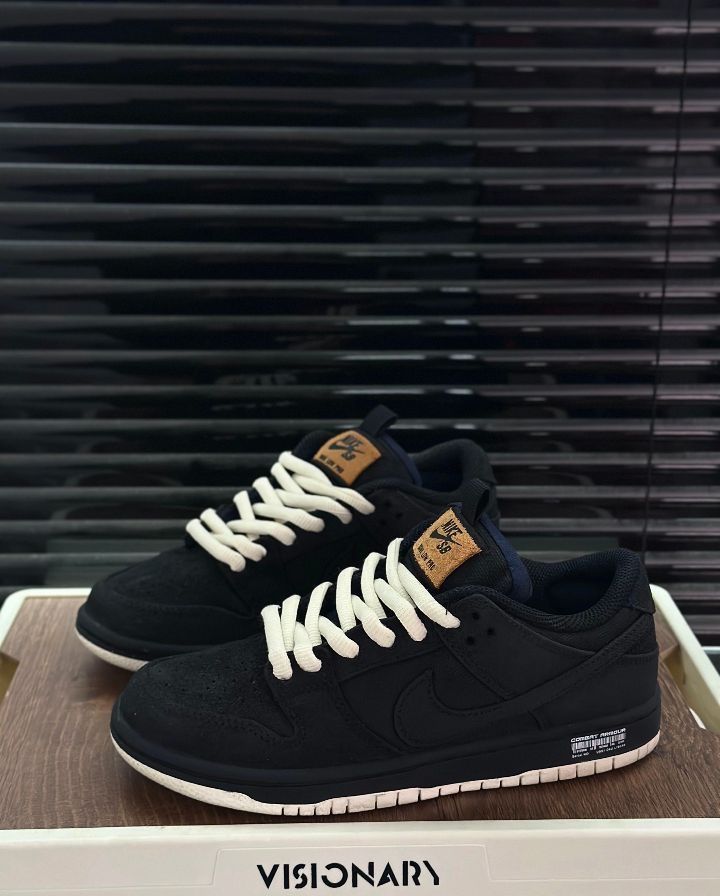 Nike SB Dunk Low ,经典再现!全黑鞋面酷感十足,搭配米白色鞋带,简约又不失时尚。麂皮材质质感上乘,鞋舌处的品牌标识彰显个性。滑板运动中能提供稳定支撑,日常穿搭更是百搭利器,轻松适配各种风格服饰,入手不亏!