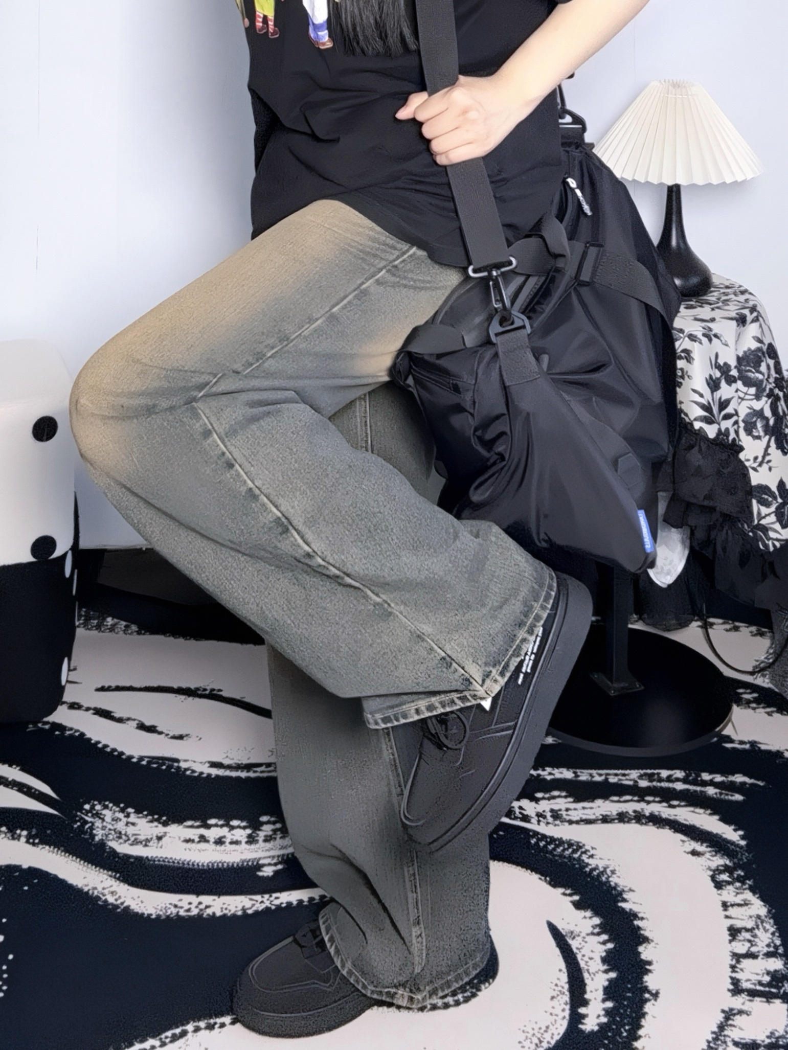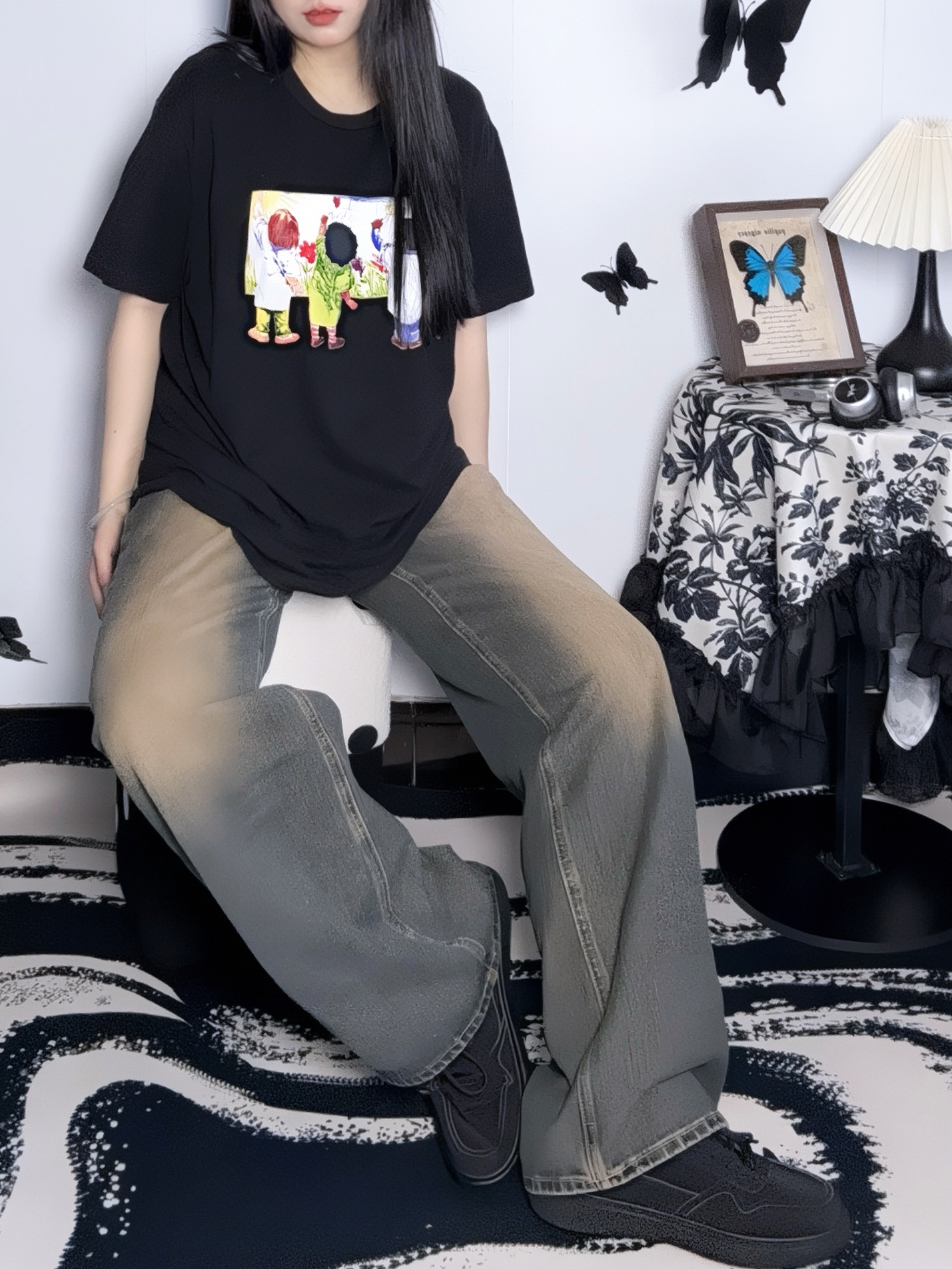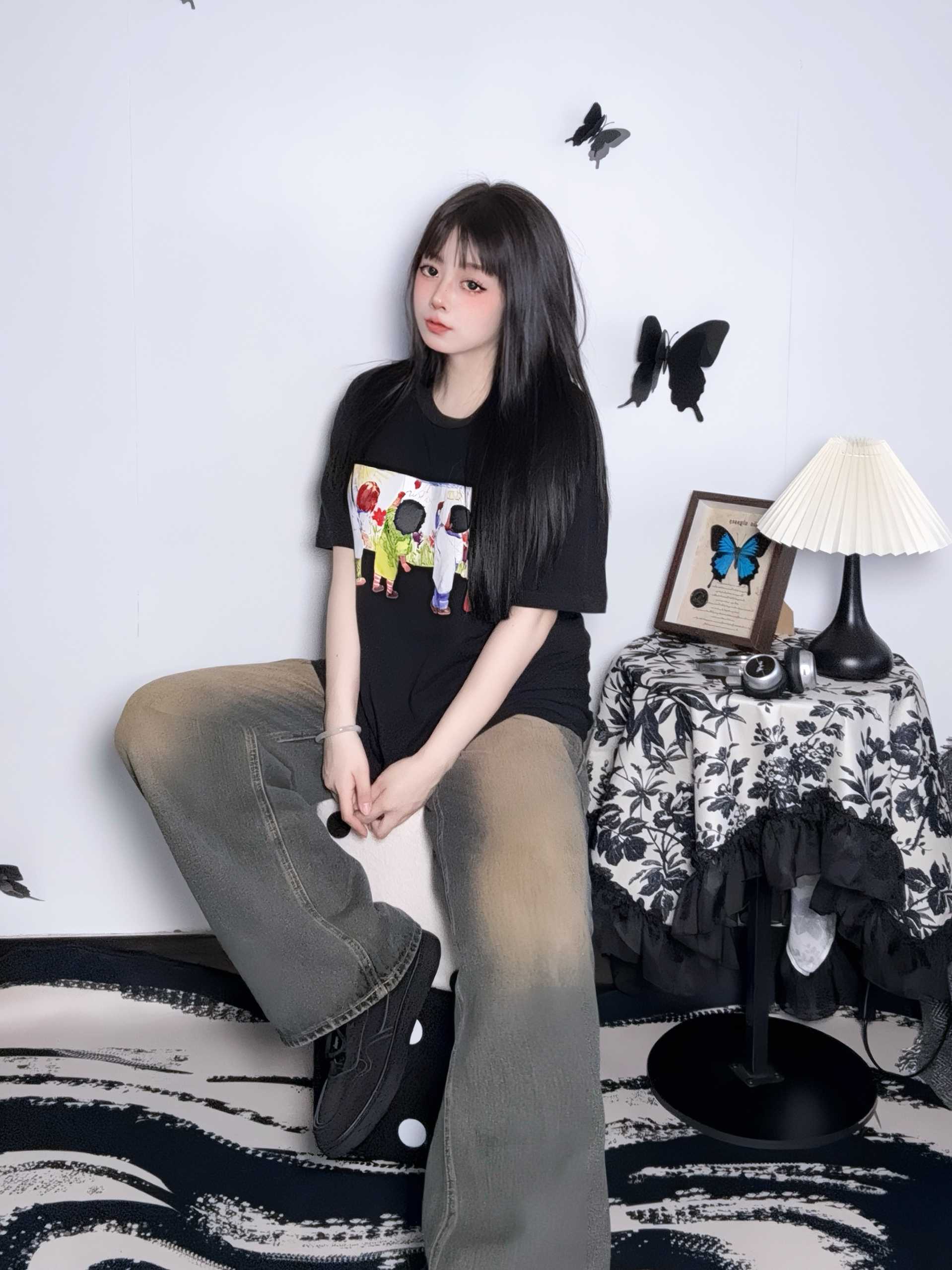 早几年流行的修孩T恤 搭复古做旧阔腿的牛仔裤 软底儿的板鞋走路一点不磨 就是没啥增高效果 不过很好配衣服 运动休闲风up~ 参考尺码:168cm60kg M码