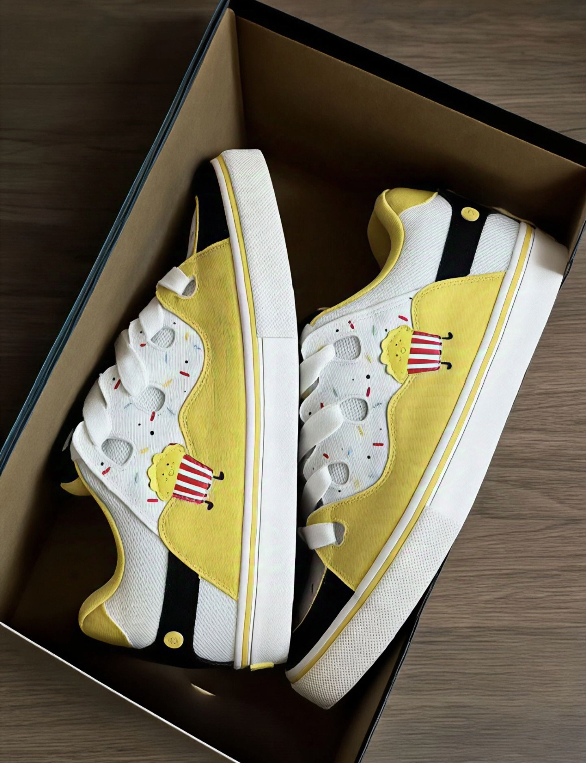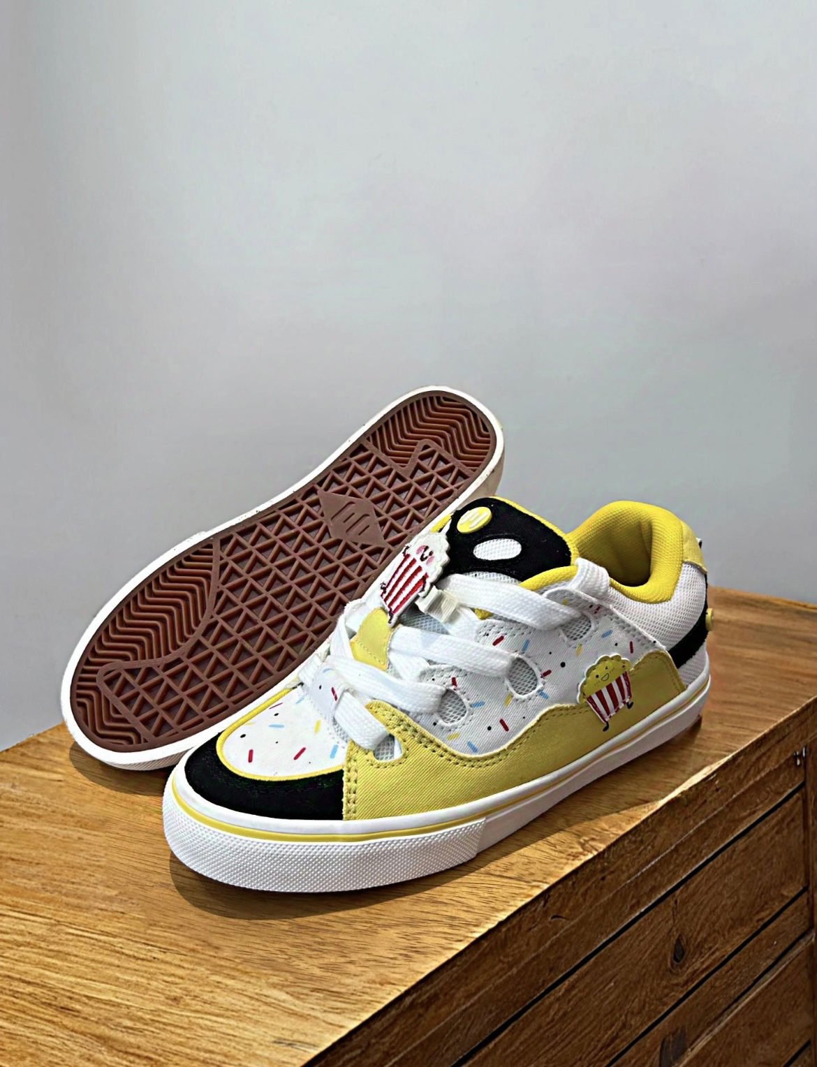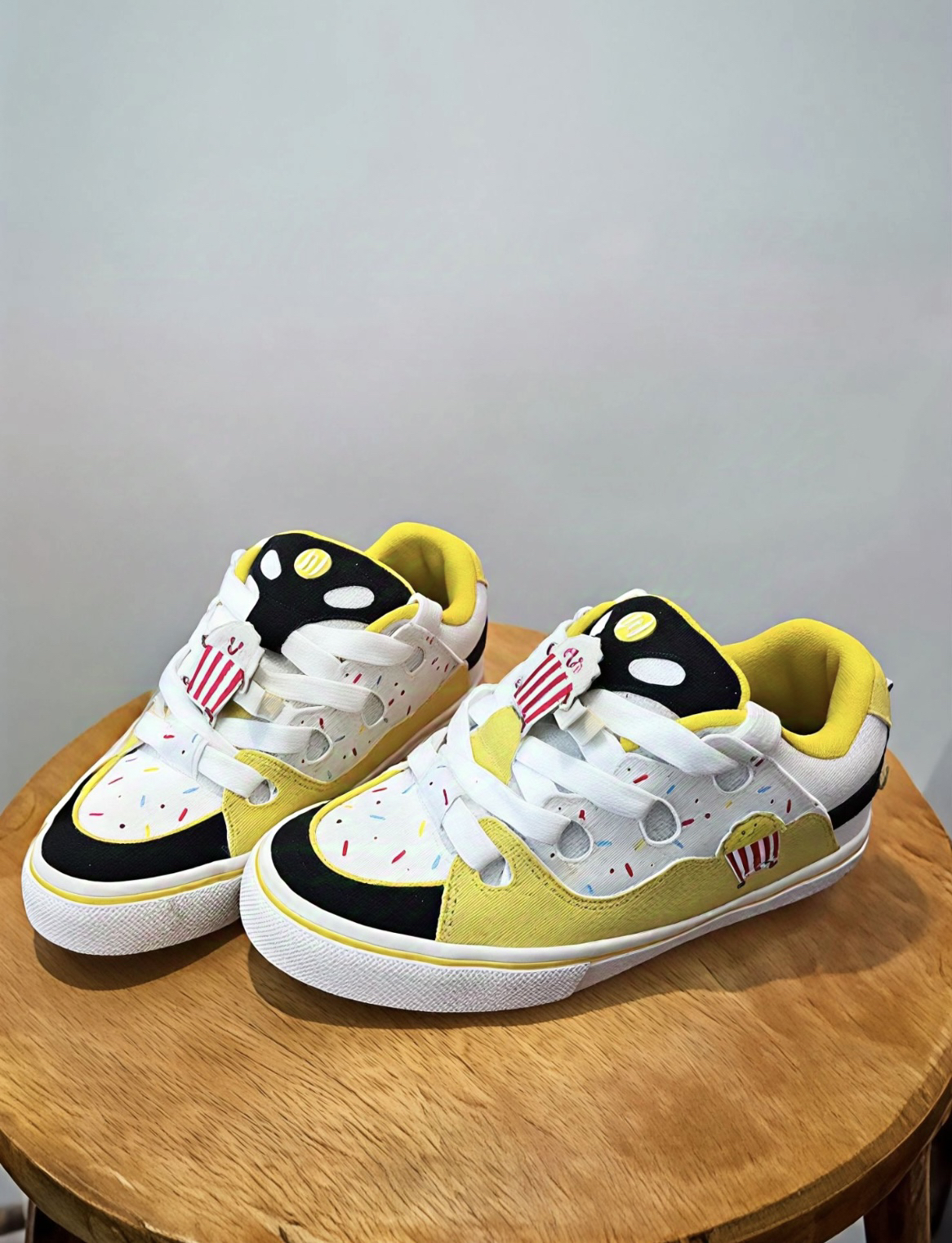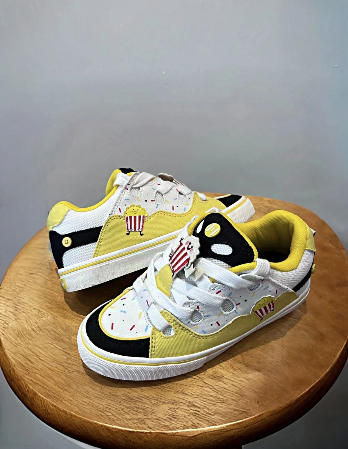 之前被博主种草了顽刻的这双焦糖爆米花面包鞋黑黄配色加上糖霜的点缀撞色设计十分吸睛 果断入手!