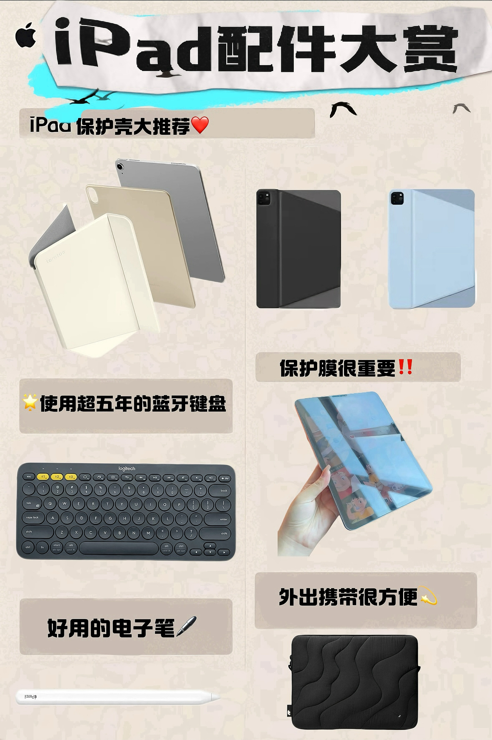 用了3年iPad Pro,踩过无数坑后终于总结出这份「不花冤枉钱」的配件清单!从保护壳到生产力工具,每一件都是实测真香!👇 #学生党必看⁉️ --- 📱 iPad保护壳:防弯+多功能是刚需 1️⃣ tomtoc横竖支撑保护套 亮点:横竖屏自由切换+手绘低角度模式,硬质背板防弯一流,自带Apple Pencil收纳槽,磁吸闭合智能唤醒。 适用人群:常需多角度办公/绘画的Pro用户。 缺点...
