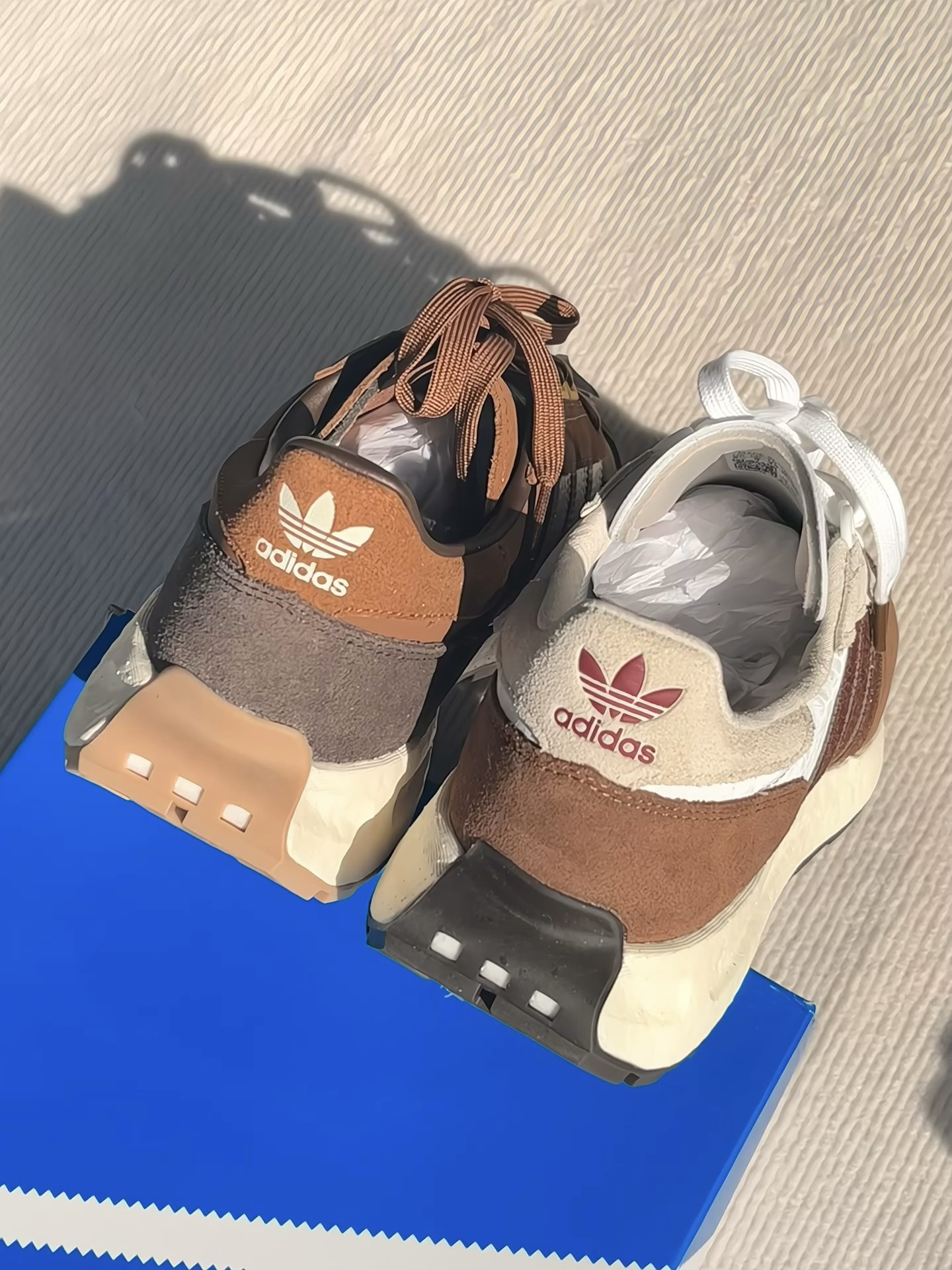 adidas originals Retropy E5 Boost~ 上脚才知道啥叫舒服到飞起! Boost鞋底软弹软弹的,走路跑步都超稳 棕色系配色太戳我, 春秋搭牛仔裤、休闲裤都超有氛围感, 颜值完全长在审美点上
