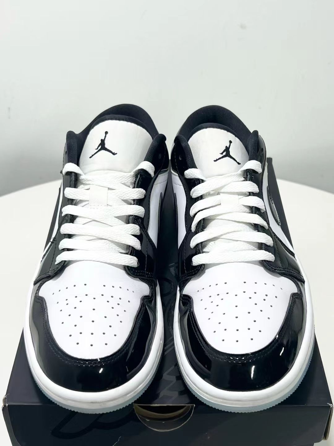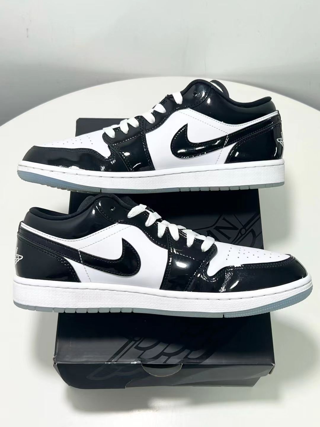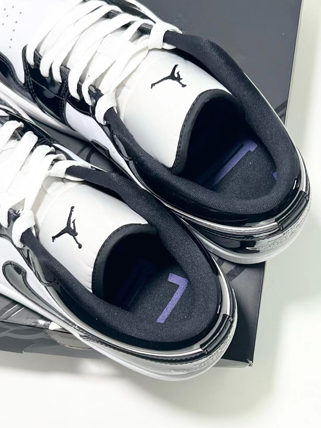 ✨看似简单的黑白配色,实则细节满满 这双AJ1鞋身由黑白漆皮拼接而成,鞋底则使用淡蓝色水晶底,整体非常有质感并且耐看百搭,不同风格穿搭都能轻松驾驭熊猫配色,内侧鞋垫紫色字体,淡蓝水晶底都致敬了Aj11康扣,加上后跟的刺绣,也让这双鞋更为经典 ✨价格8方面:目前8开的价格是非常有性价比的,百搭的鞋款上脚率一定不会低,也适合学生党,有GS版本,小脚女生也可以选择