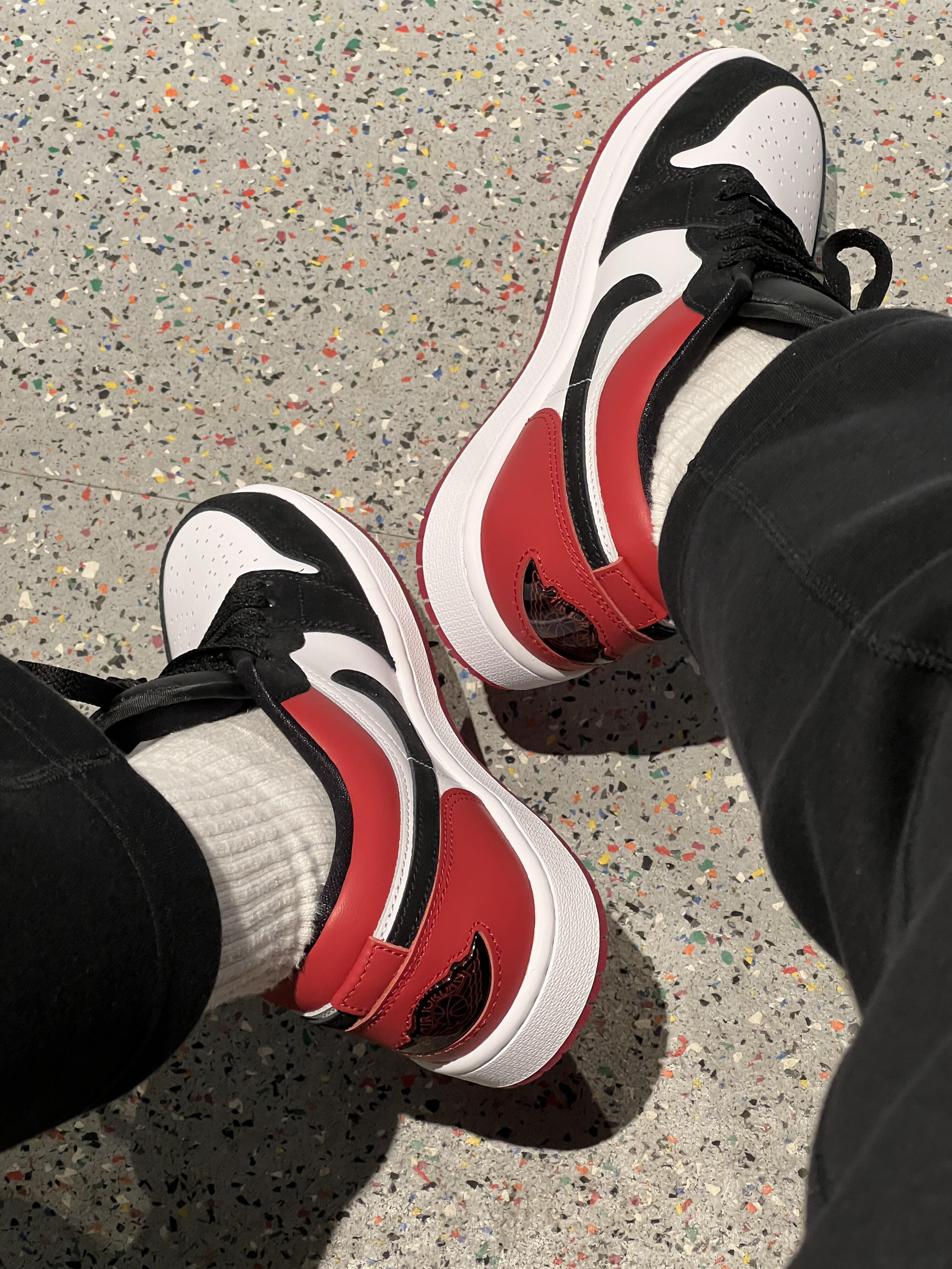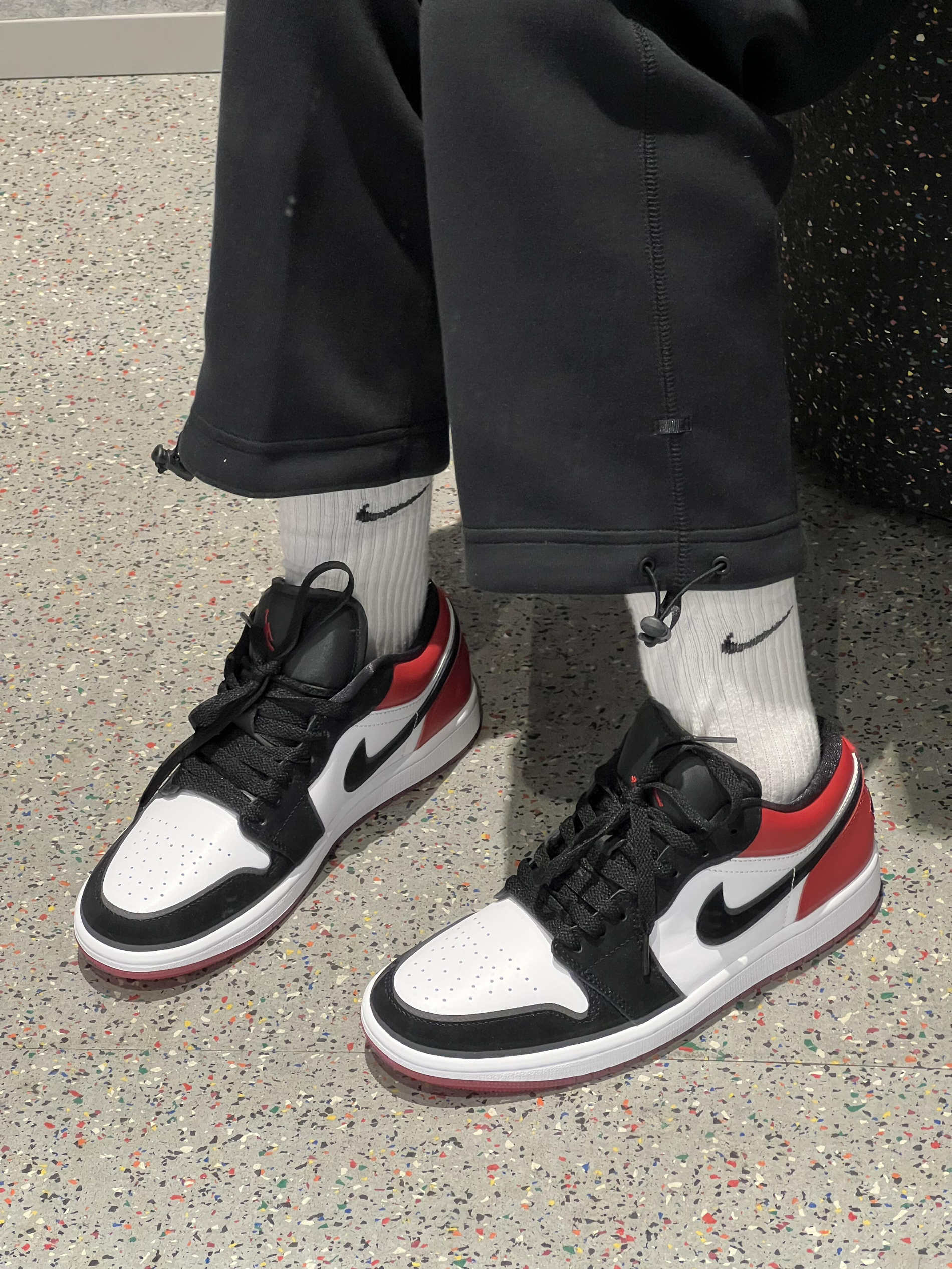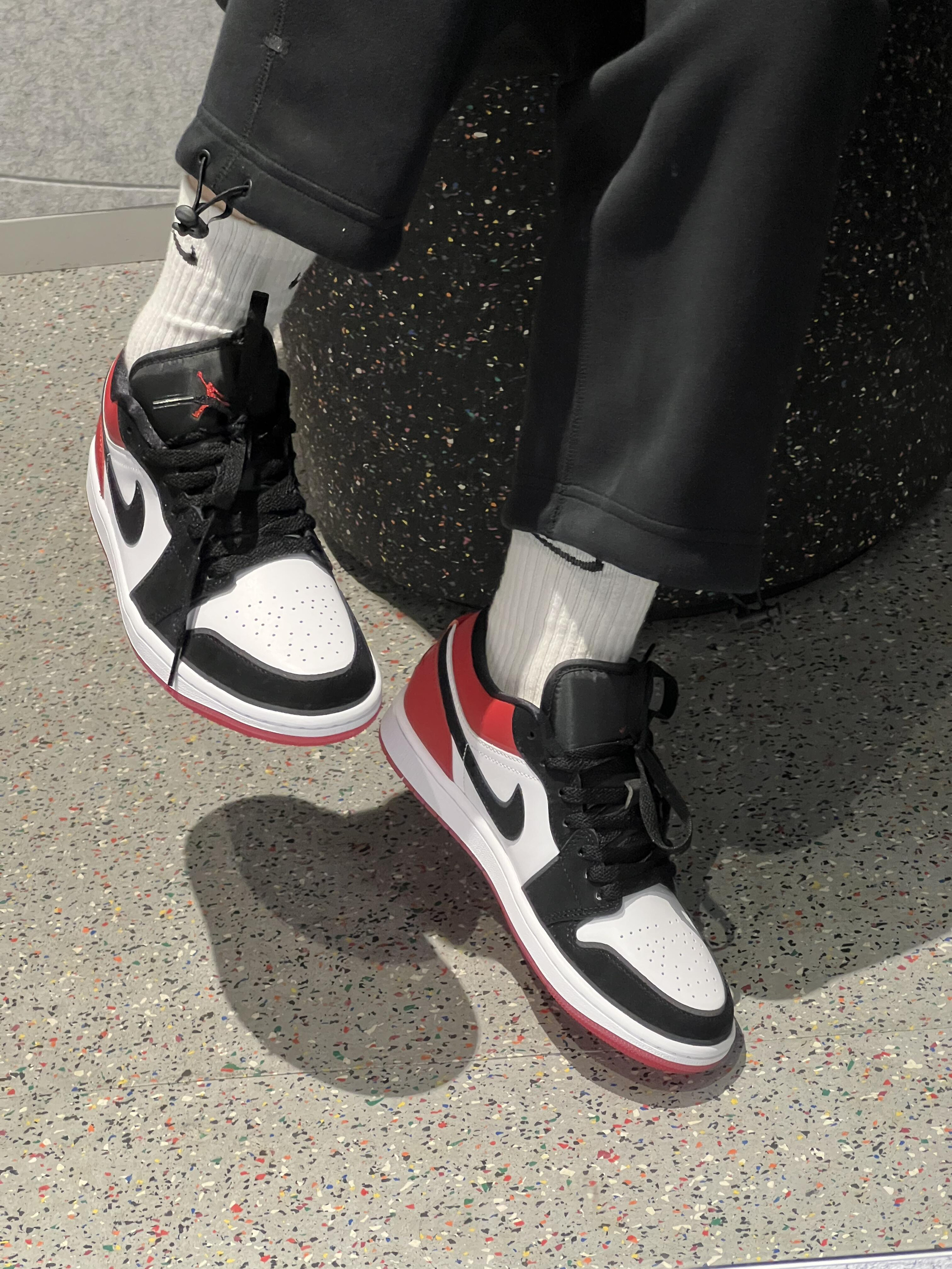 AJ1配色有很多,我最钟意的还是黑红呀🔴⚫️ 黑色鞋面有注入天鹅绒材质,低调中自带高级感,橡胶外底纹路升级,更加防滑耐磨哦 百搭经典不过时就选它吧