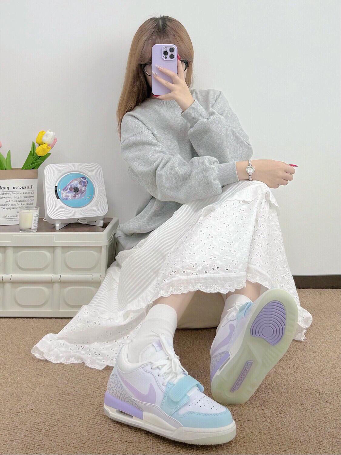 计精致穿搭离不开我的小银表!!! 今日份韩系校园感穿搭🌀 卫衣十长裙很适合现在的气温呀 鞋子是aj312好喜欢这个配色配饰搭配了米格的鱼美人系列 在阳光下bling bling的哦~ 贝母表盘很显白很温柔💕 带上这块小银表穿搭都精致起来啦#乖乖女穿搭[话题]# #韩系学院风